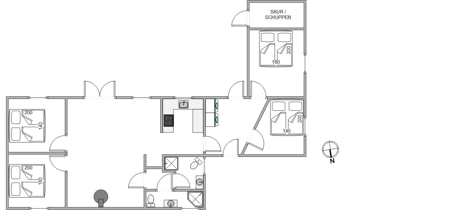 At the heart of this holiday home is the cosy living room, furnished with attention to detail. Here you can relax on the sofa, watch a DVD or enjoy a sociable games evening. Light the wood-burning stove and enjoy its warming comfort, or use the energy-efficient heat pump. The open-plan kitchen with breakfast bar is well-equipped and naturally includes a dishwasher.