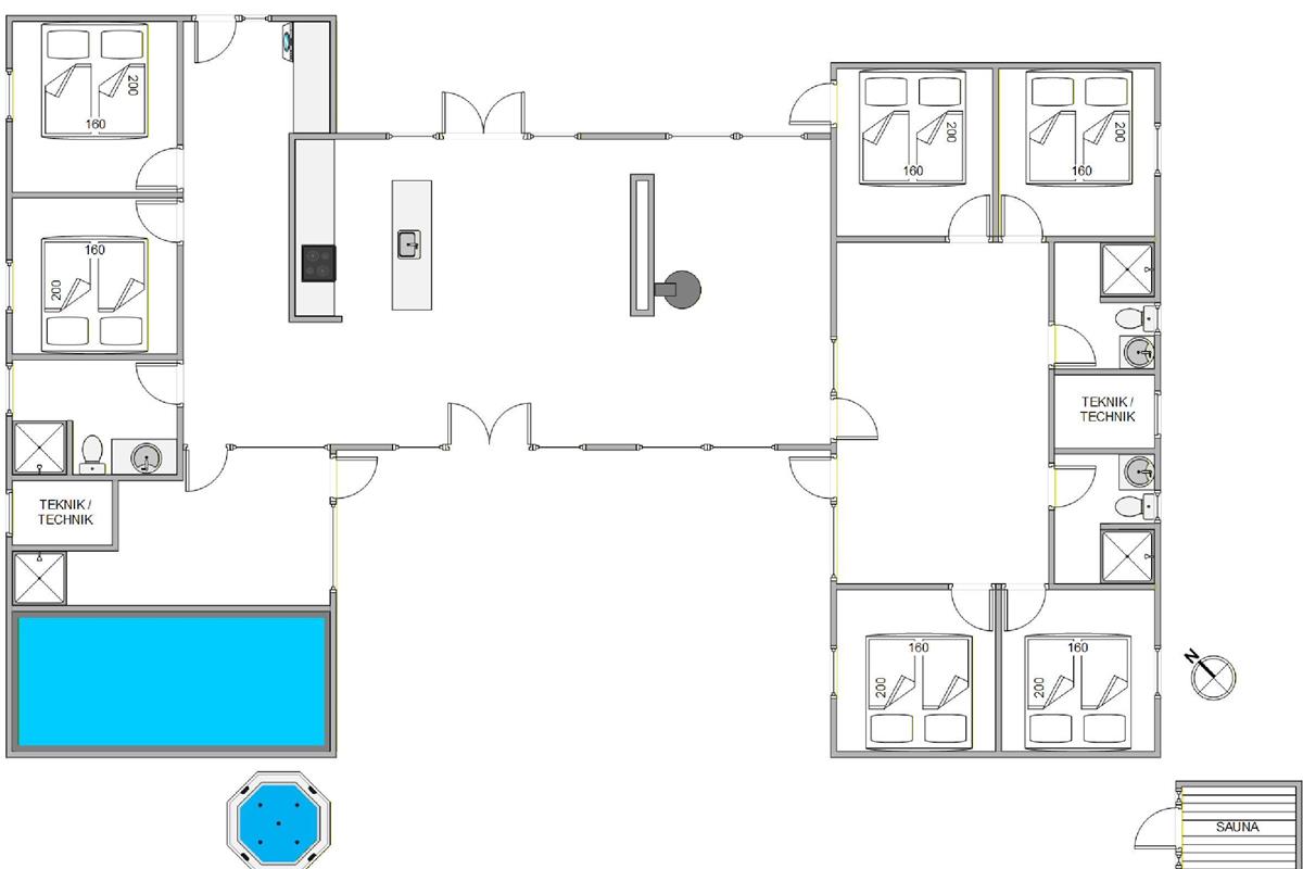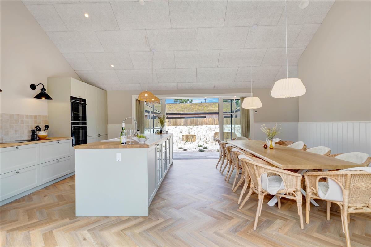 Located at Søren Gades Mark 16A, this fantastic luxury pool house accommodates up to 12 people and 2 dogs! Newly built in 2024, this stylishly furnished holiday home in Blåvand offers exceptional amenities including an indoor pool, outdoor hot tub, outdoor sauna, 3 bathrooms and a games area with pool table and table tennis. The holiday home also features a fireplace, efficient heat pump and an electric car charging point. Look forward to a truly tastefully decorated and luxurious holiday home on Denmark's west coast with 6 bedrooms!