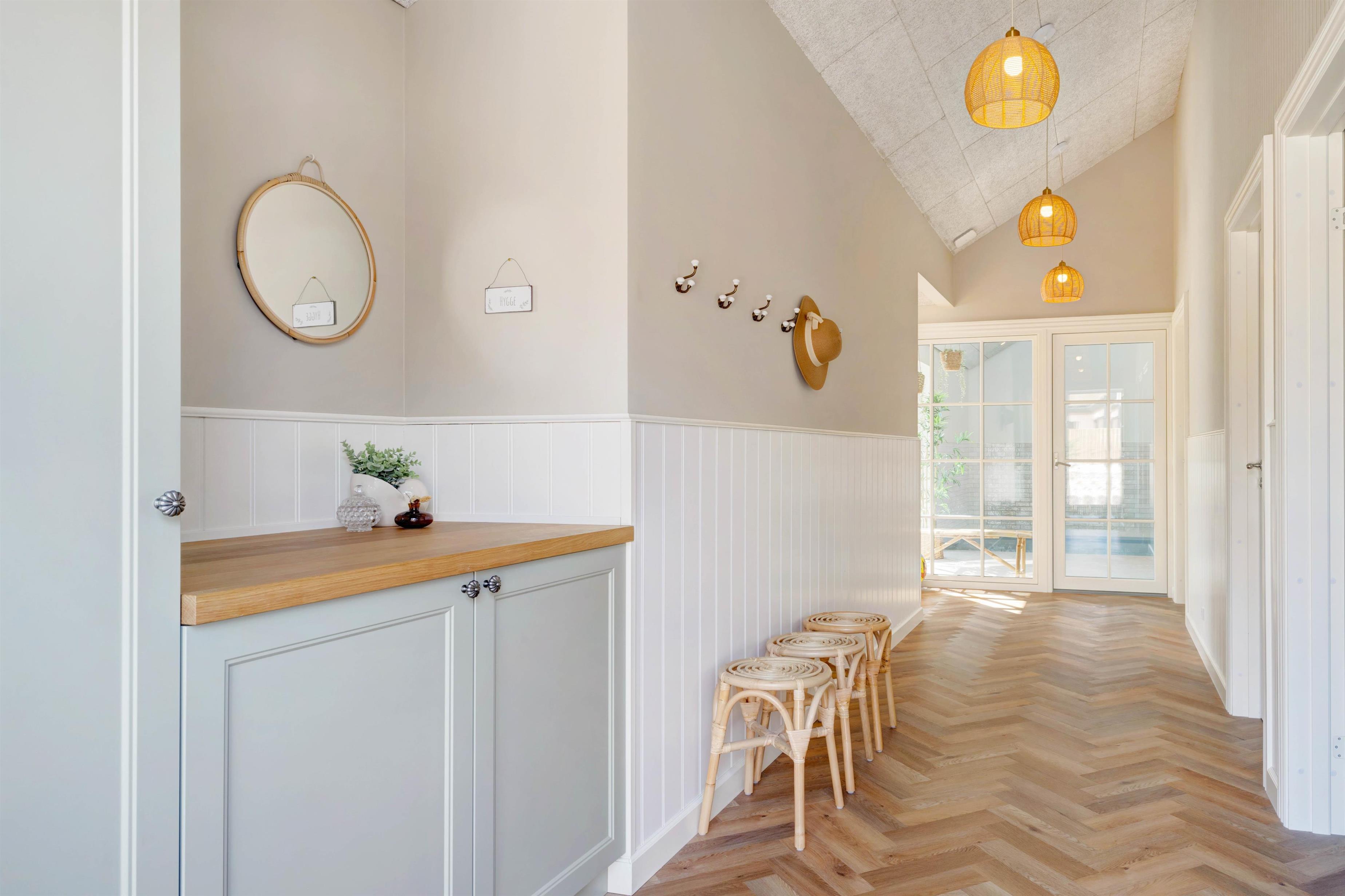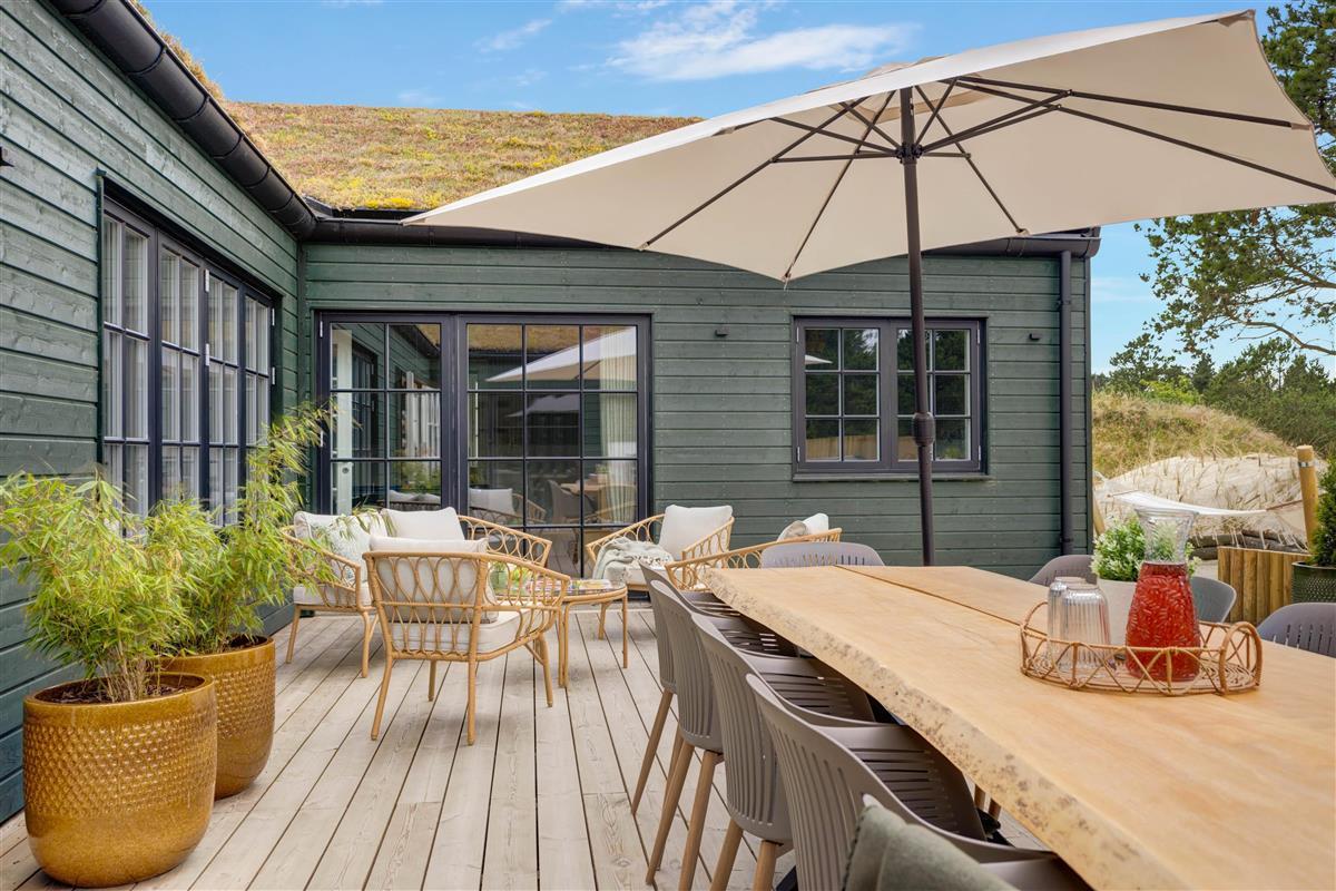 The holiday home offers 225 square metres of living space for up to 12 people. The holiday home welcomes up to 2 dogs, making it perfect for families with children, parents or best friends to spend wonderfully relaxing days with their four-legged friends at the popular Danish North Sea resort of Blåvand. The enclosed terrace is an added bonus - ideal for families with young children and dogs.