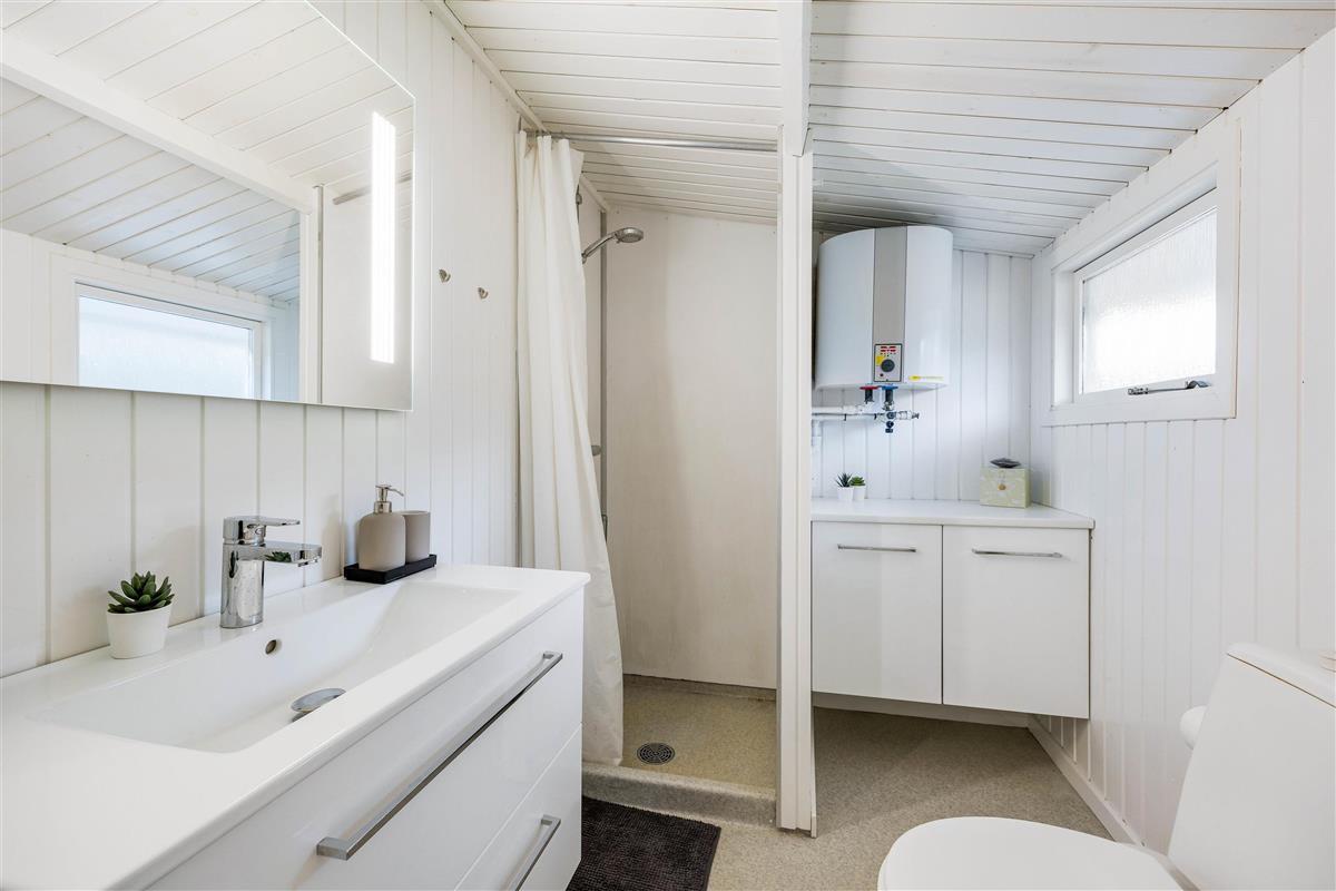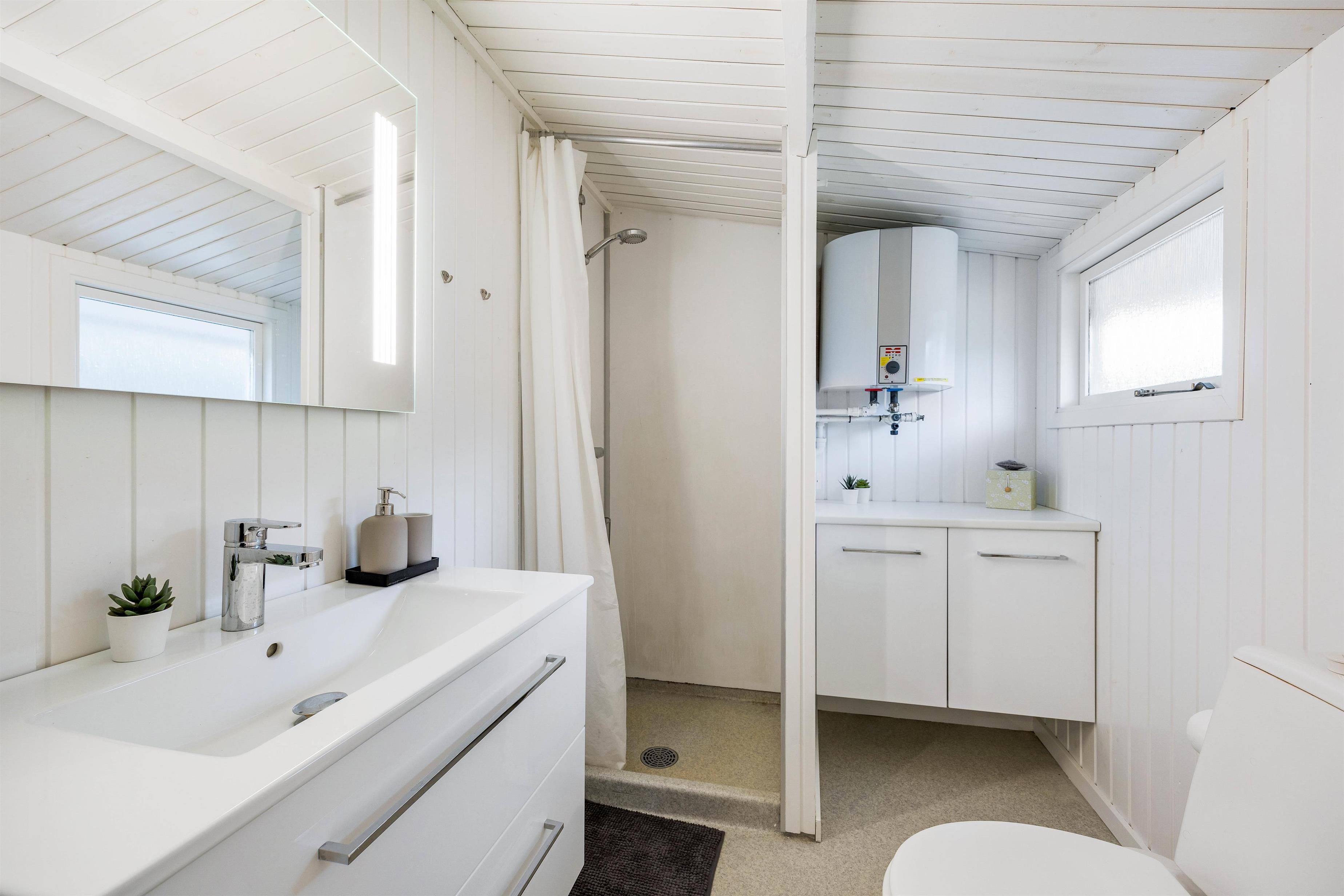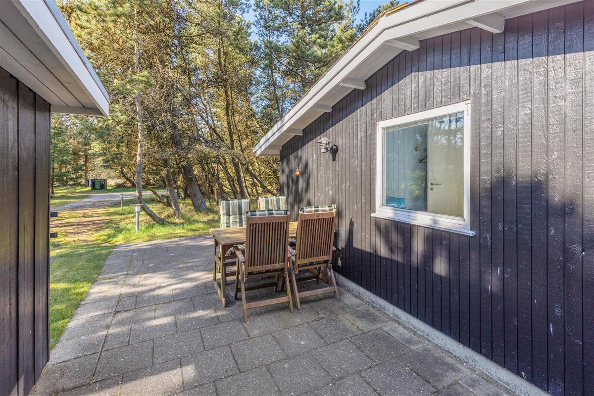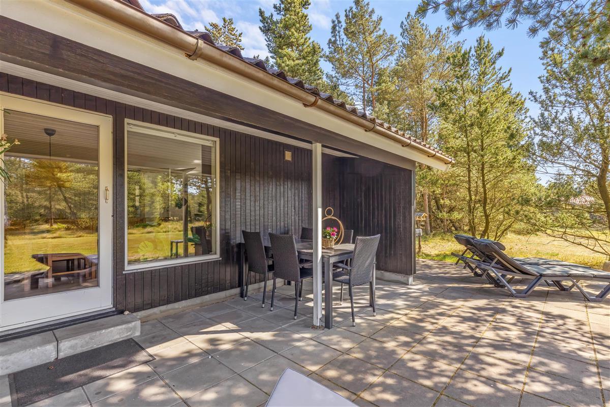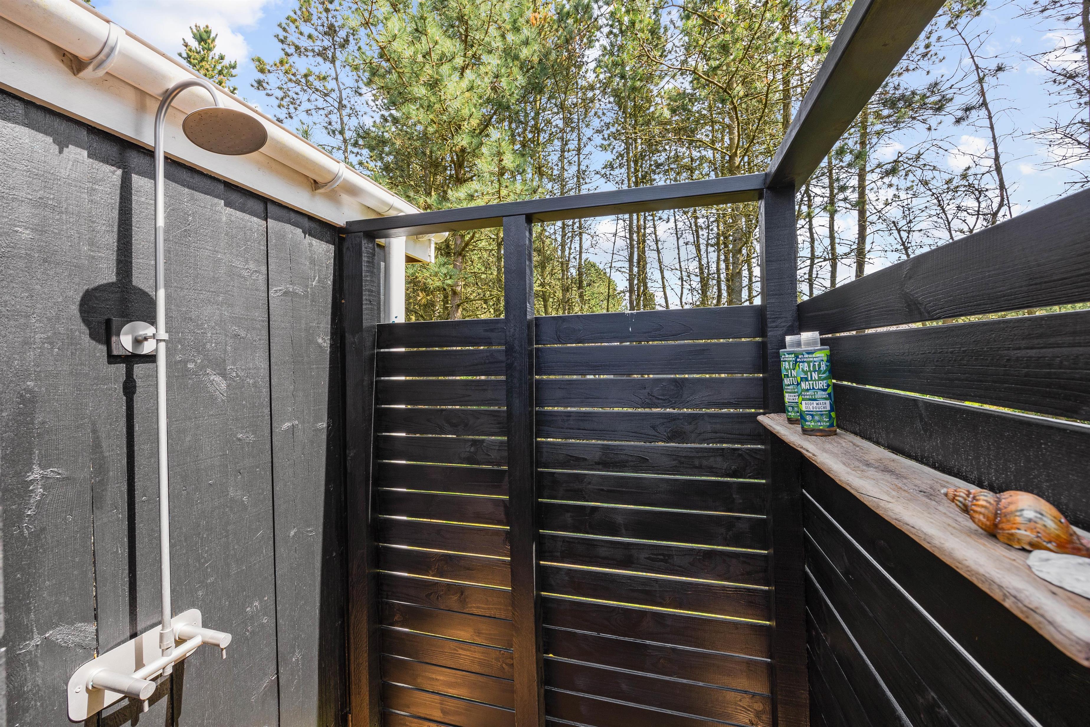 The holiday home is situated on a 2,800 square metre plot, and outside you will find a lovely, partially covered terrace and a garden where the whole family can spend the warm and sunny days of your holiday. If you need to warm up, the outdoor sauna is ready for you, and if you need to cool off quickly on hot days, the outdoor shower will do the trick – the outdoor shower can be used from 1 April to 31 October.