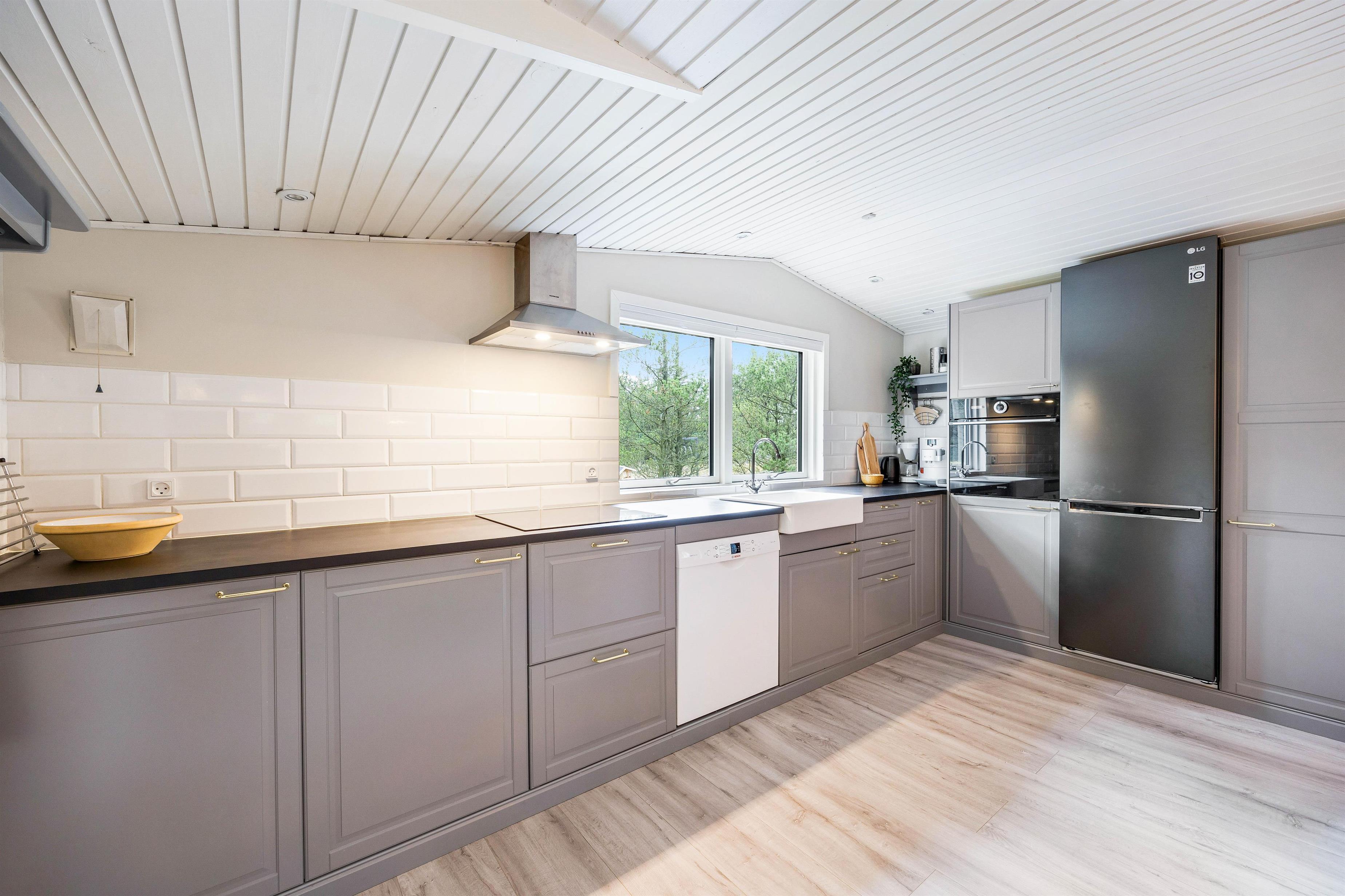 Surrounded by a generous terrace, pine trees and the tranquility of nature, this cosy holiday home offers typical Scandinavian style where you'll feel at home straight away. The 85-square-metre holiday home comfortably accommodates up to 6 people and your dog.