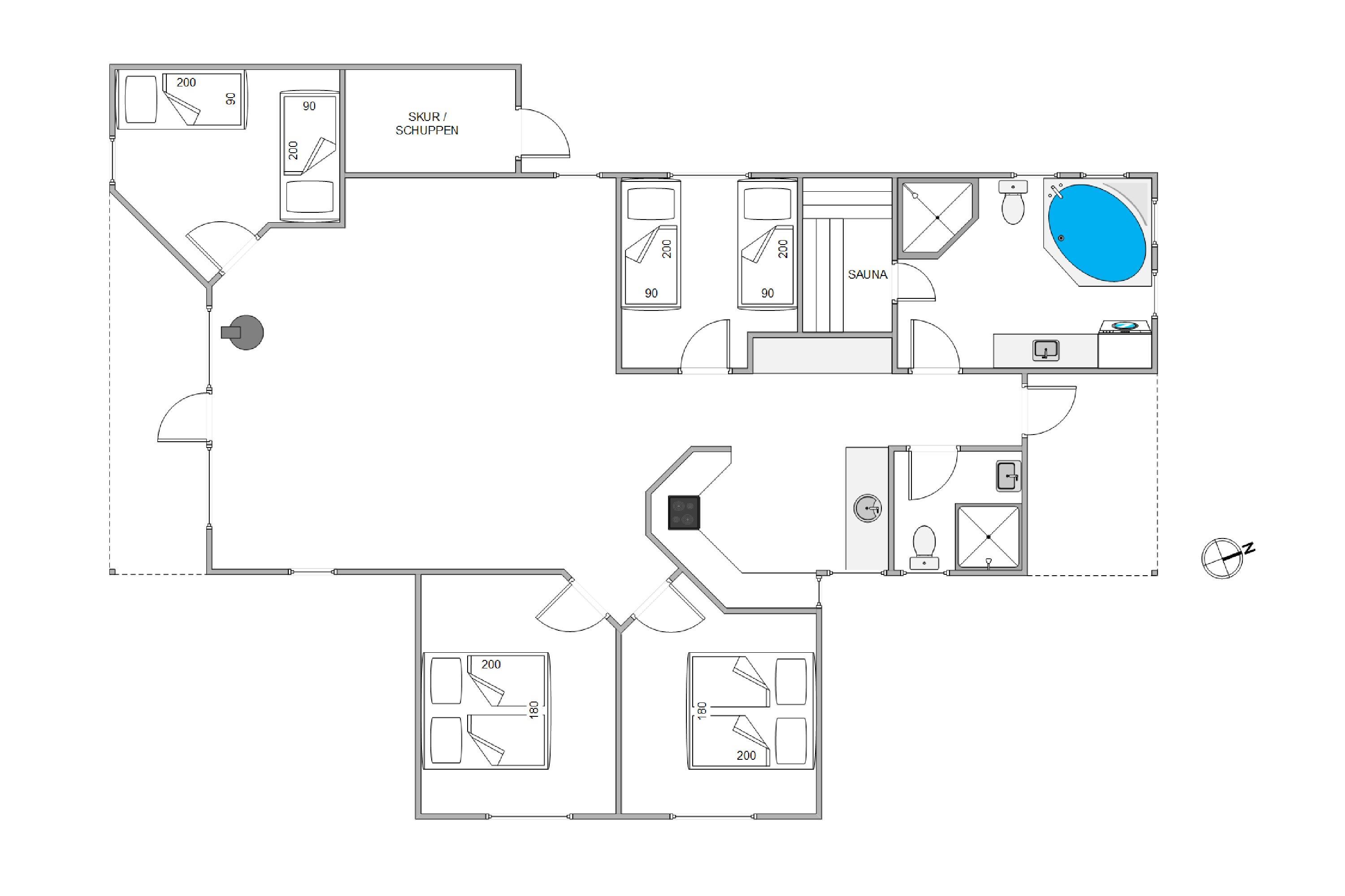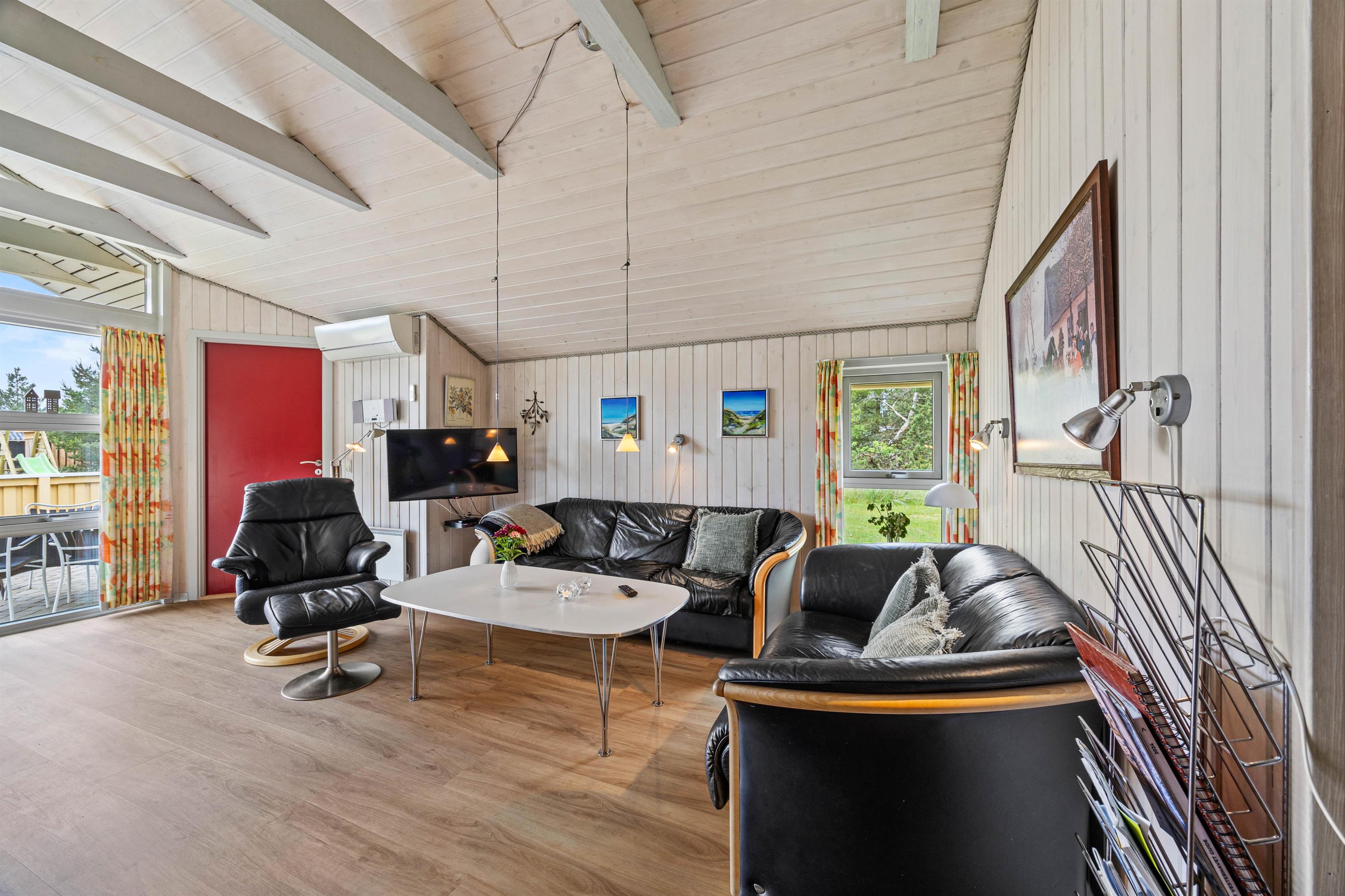 With 101 square metres of living space, this Blåvand holiday home accommodates up to six people, featuring a well-planned layout and comfortable furnishings. There are three cosy bedrooms: two with comfortable double beds and one with twin beds. Two bathrooms, one featuring a therapeutic infrared sauna and whirlpool, provide additional luxury. A wood-burning stove in the living room creates a homely atmosphere, perfect for relaxing after an eventful day.
