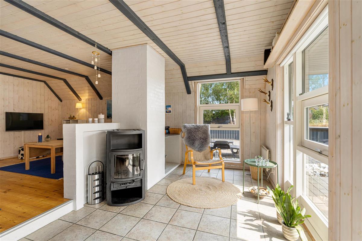 The holiday home enjoys an excellent location - just a 15-minute walk (1,000 metres) from the beach and 700 metres from the centre. The adjacent Kallesmærsk Heath is also easily accessible, offering wonderful walking opportunities and the chance to spot roe deer.