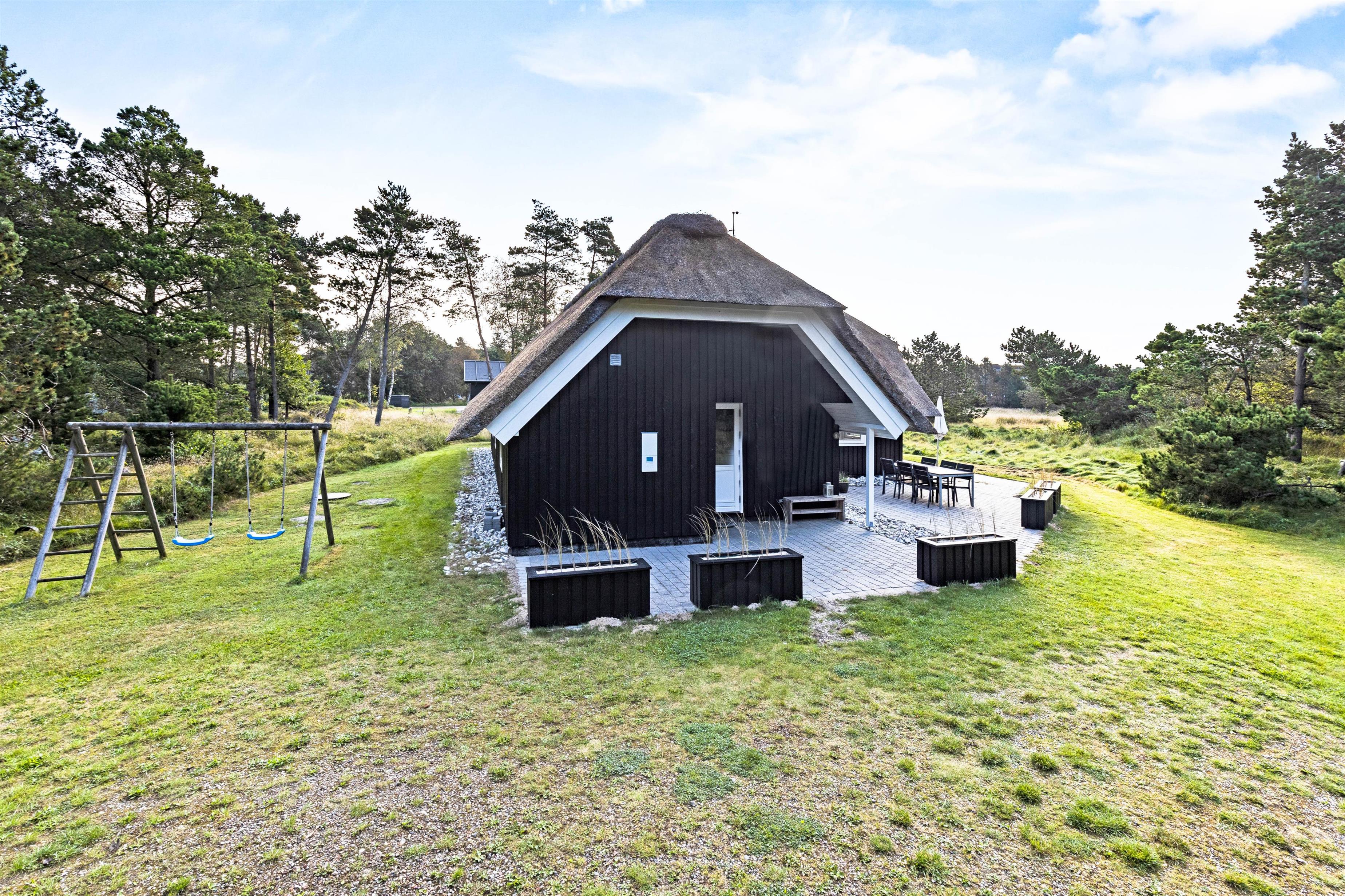 Trees and bushes surround the house, ensuring privacy and seclusion. Children have plenty of space to play and romp around, and can enjoy the swings in the beautiful garden.