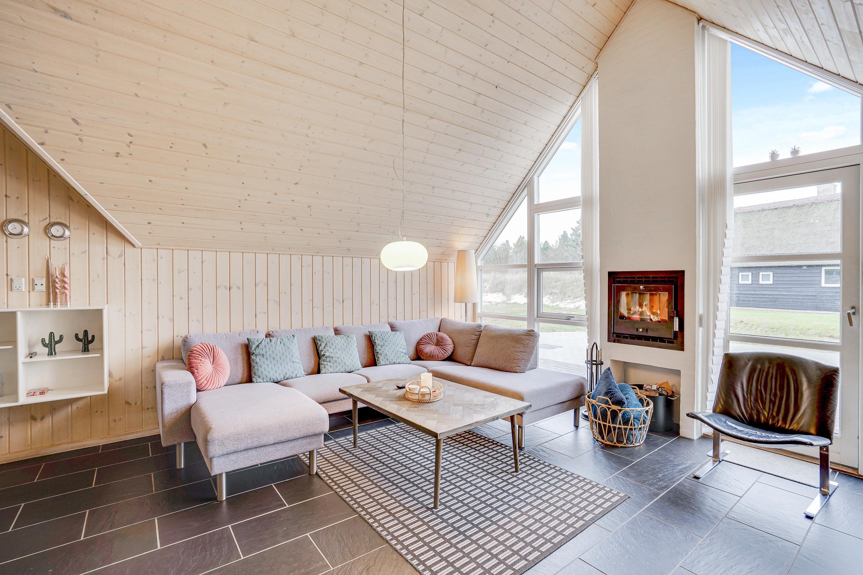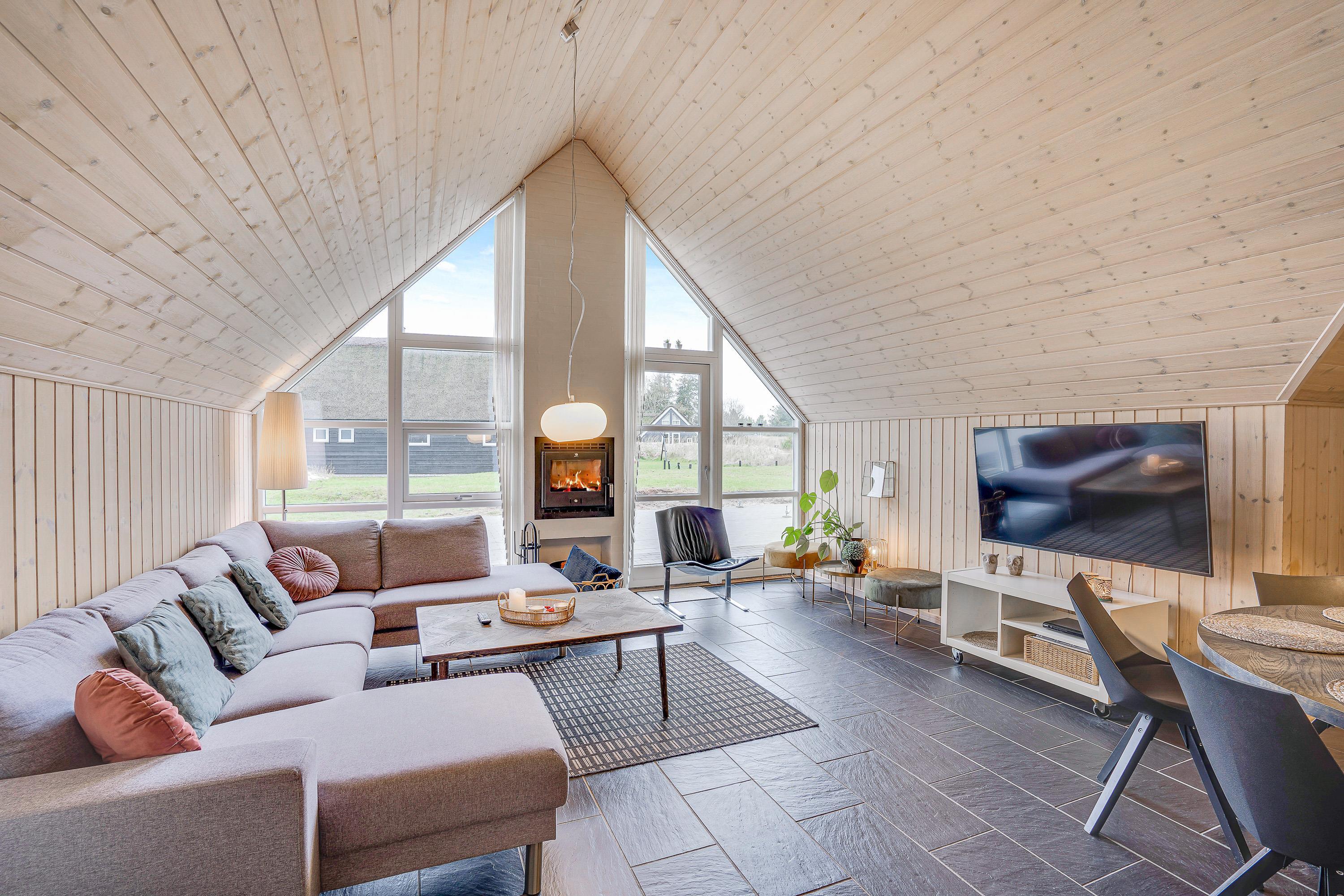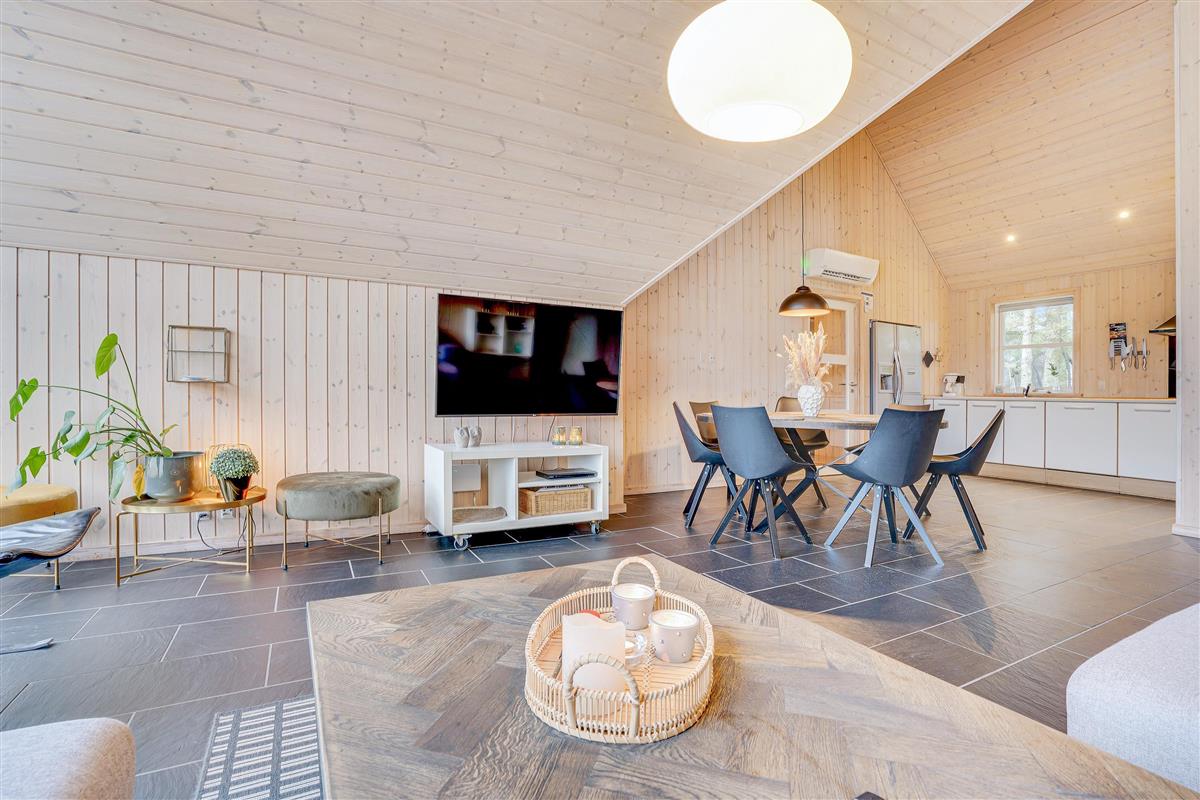 The holiday home welcomes you with beautiful, bright décor that will make you feel at home straight away. Large windows flood the holiday home with natural light, which, combined with vaulted ceilings, creates an absolutely dreamy holiday atmosphere.