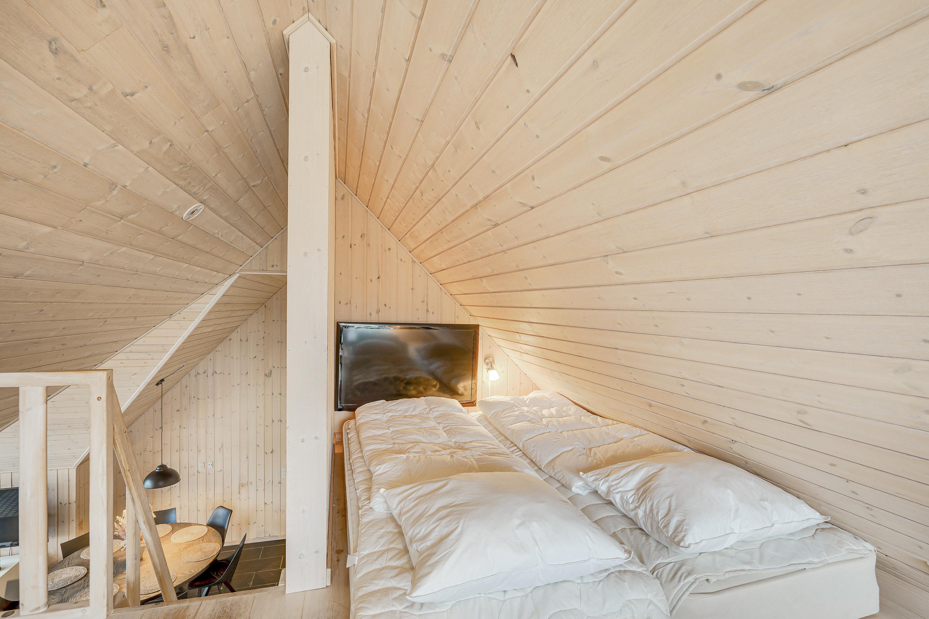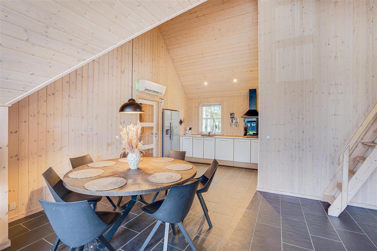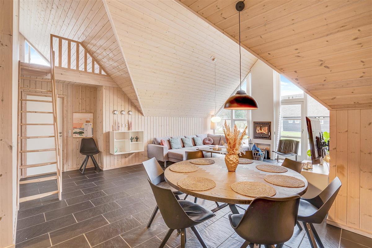 The holiday home welcomes you with beautiful, bright décor that will make you feel at home straight away. Large windows flood the holiday home with natural light, which, combined with vaulted ceilings, creates an absolutely dreamy holiday atmosphere.