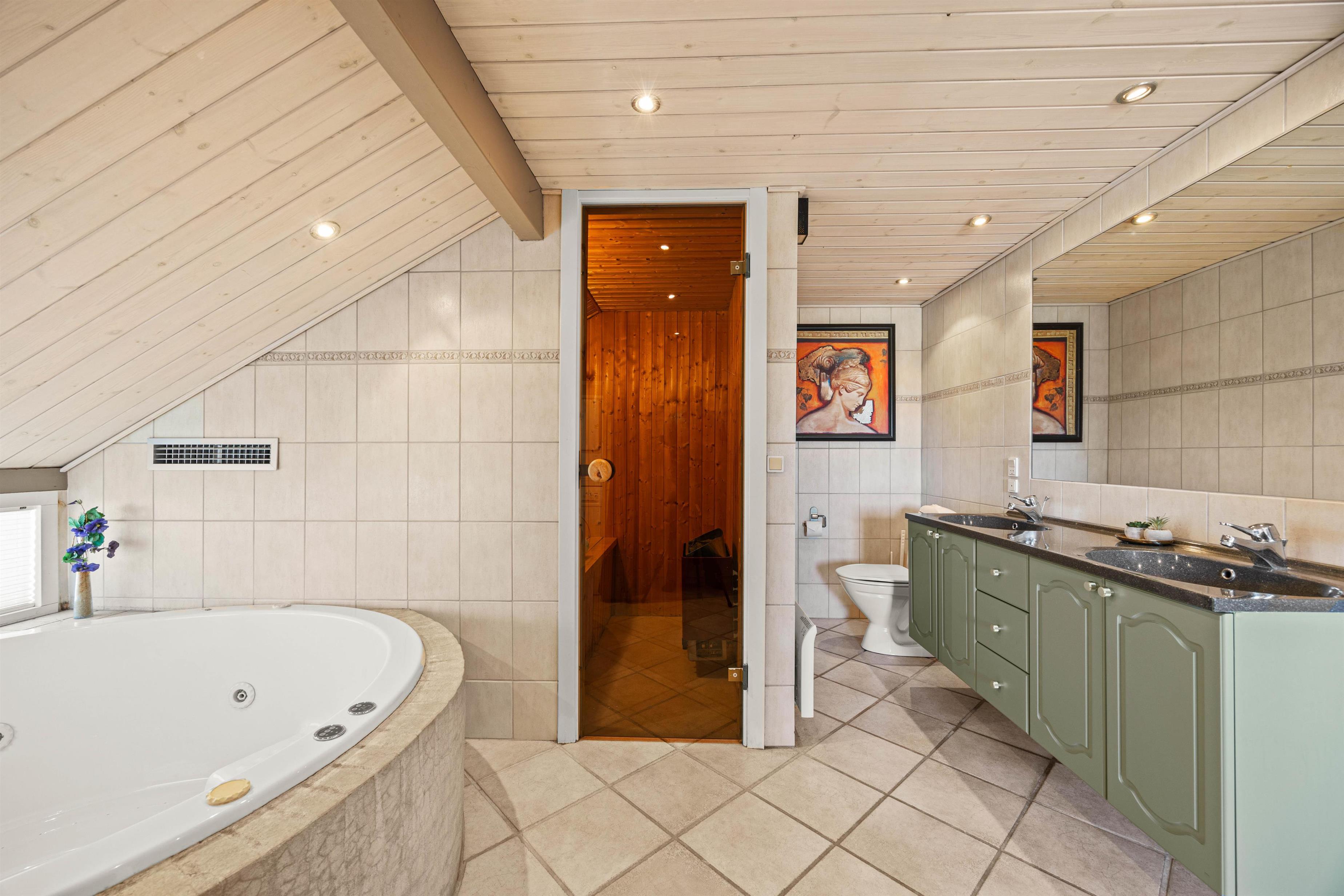 The holiday home features its own sauna and whirlpool, making it perfect for those seeking relaxation and soothing warmth.