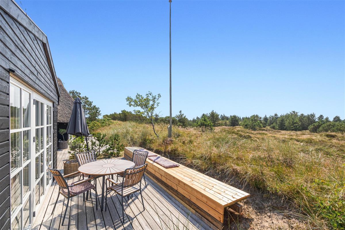 The beautiful natural plot borders a large dune and forest area, perfect for walks. The wooden terrace features lounge and garden furniture where you can relax and enjoy your holiday in the fresh air. Look forward to cosy summer BBQs and North Sea sunsets.