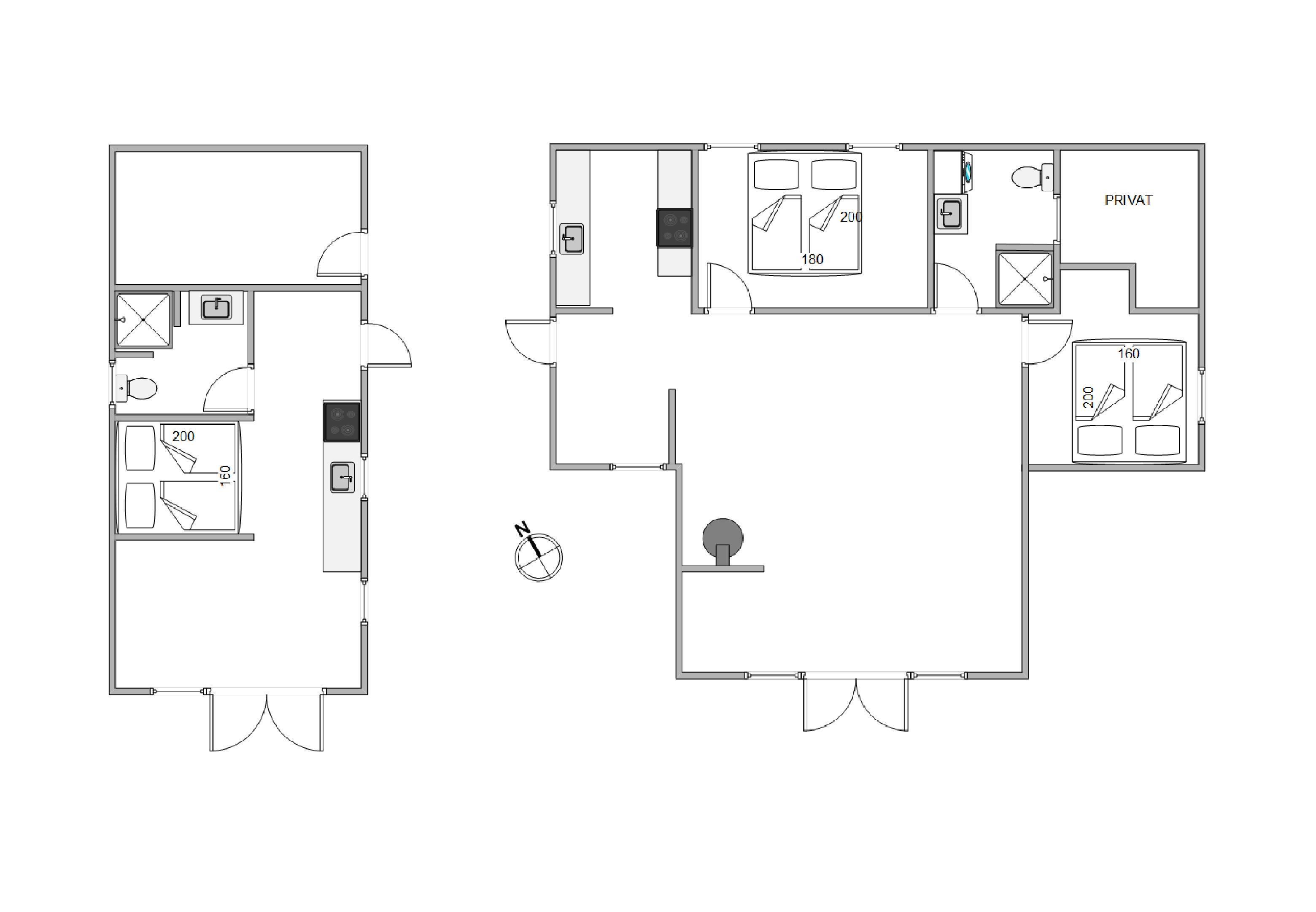 The holiday home has two bathrooms, each with underfloor heating and shower enclosure. After a day filled with wonderful experiences, you can retreat to the three bedrooms to recharge. Switch off the alarm and enjoy a proper lie-in. One of the bedrooms is located in the small annexe, which also features a kitchenette and a wing chair and sofa for relaxation.