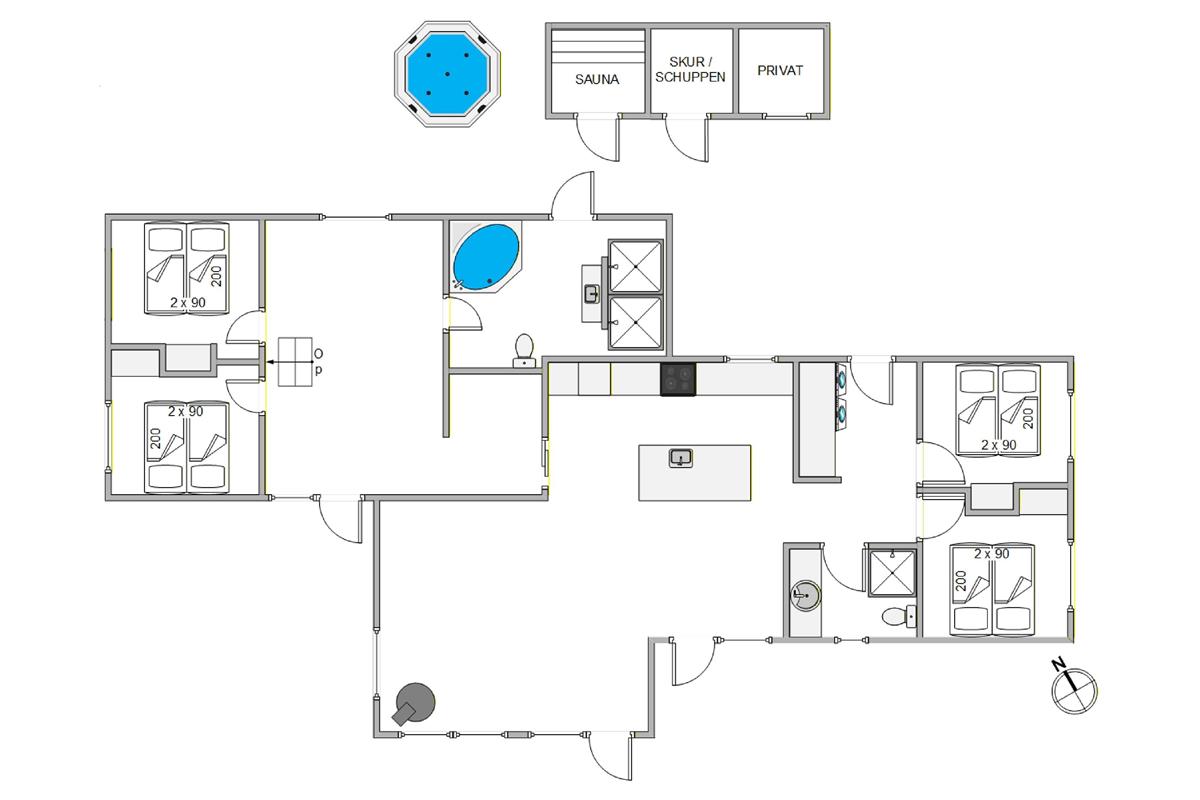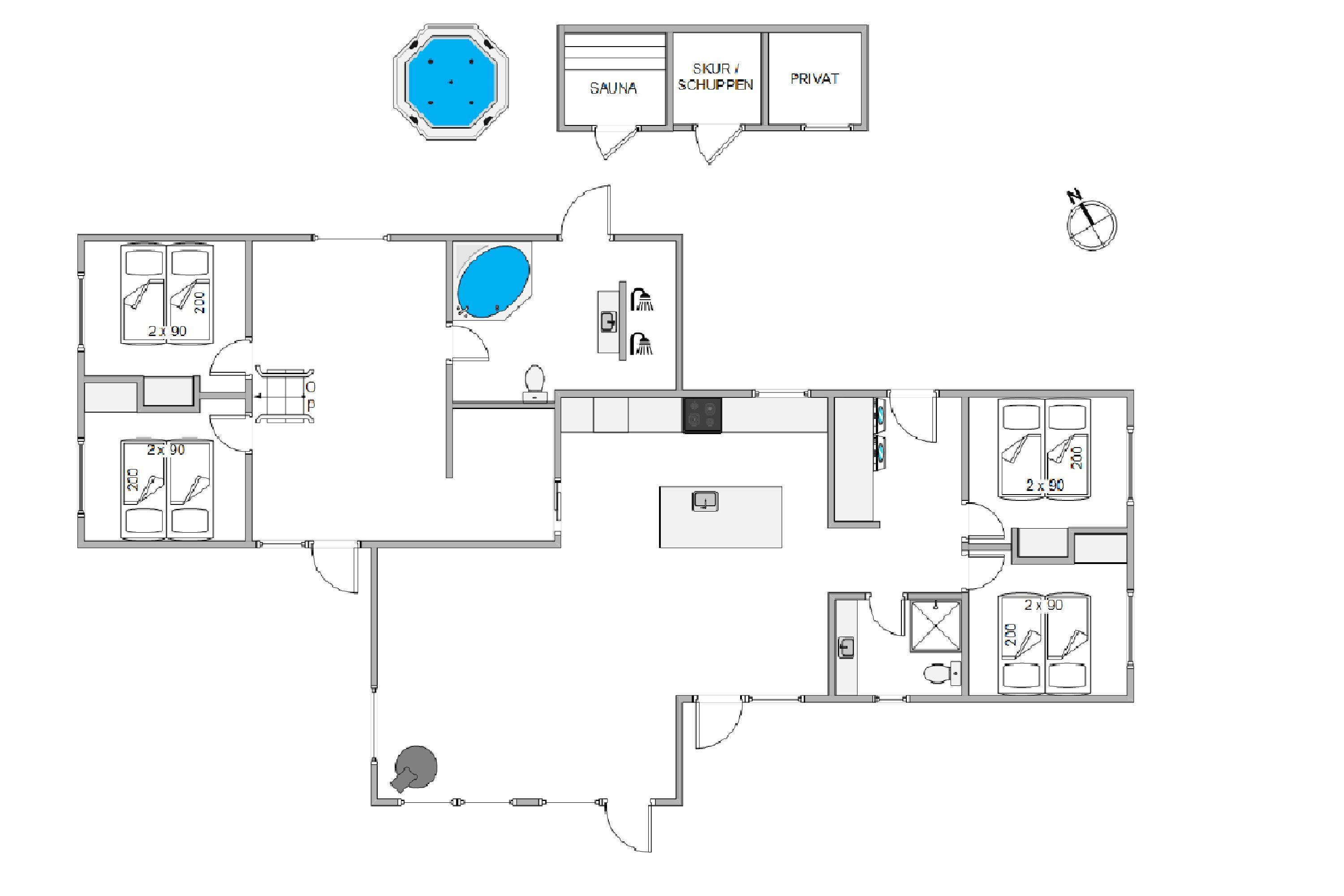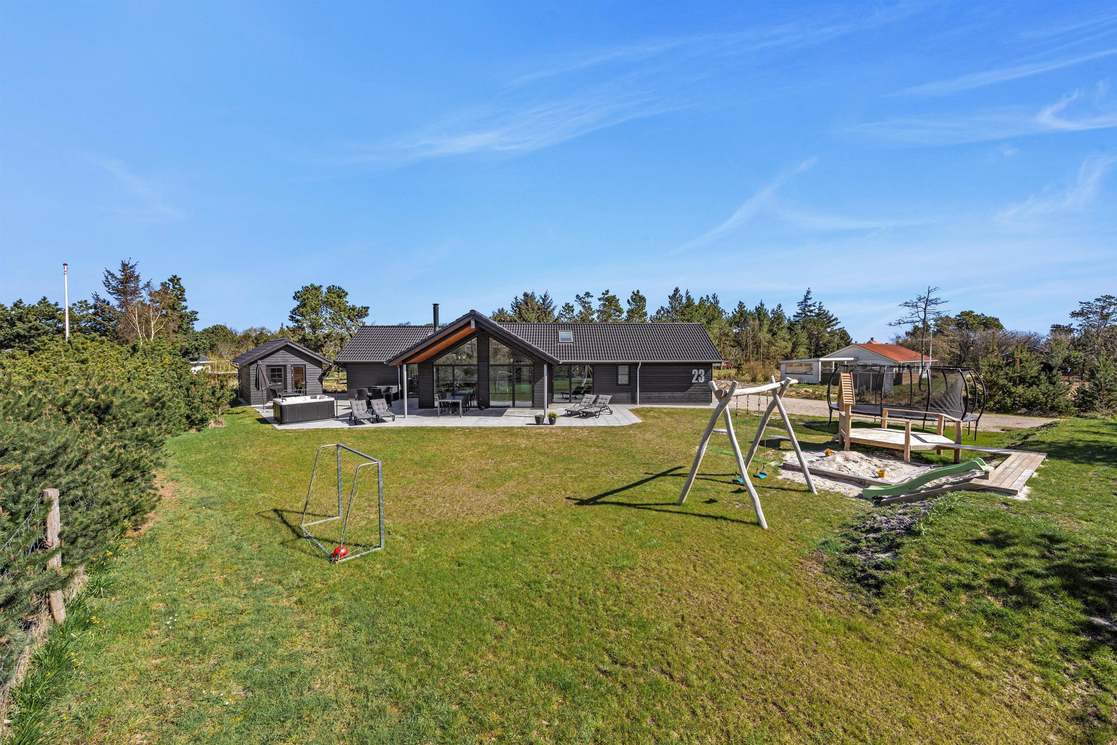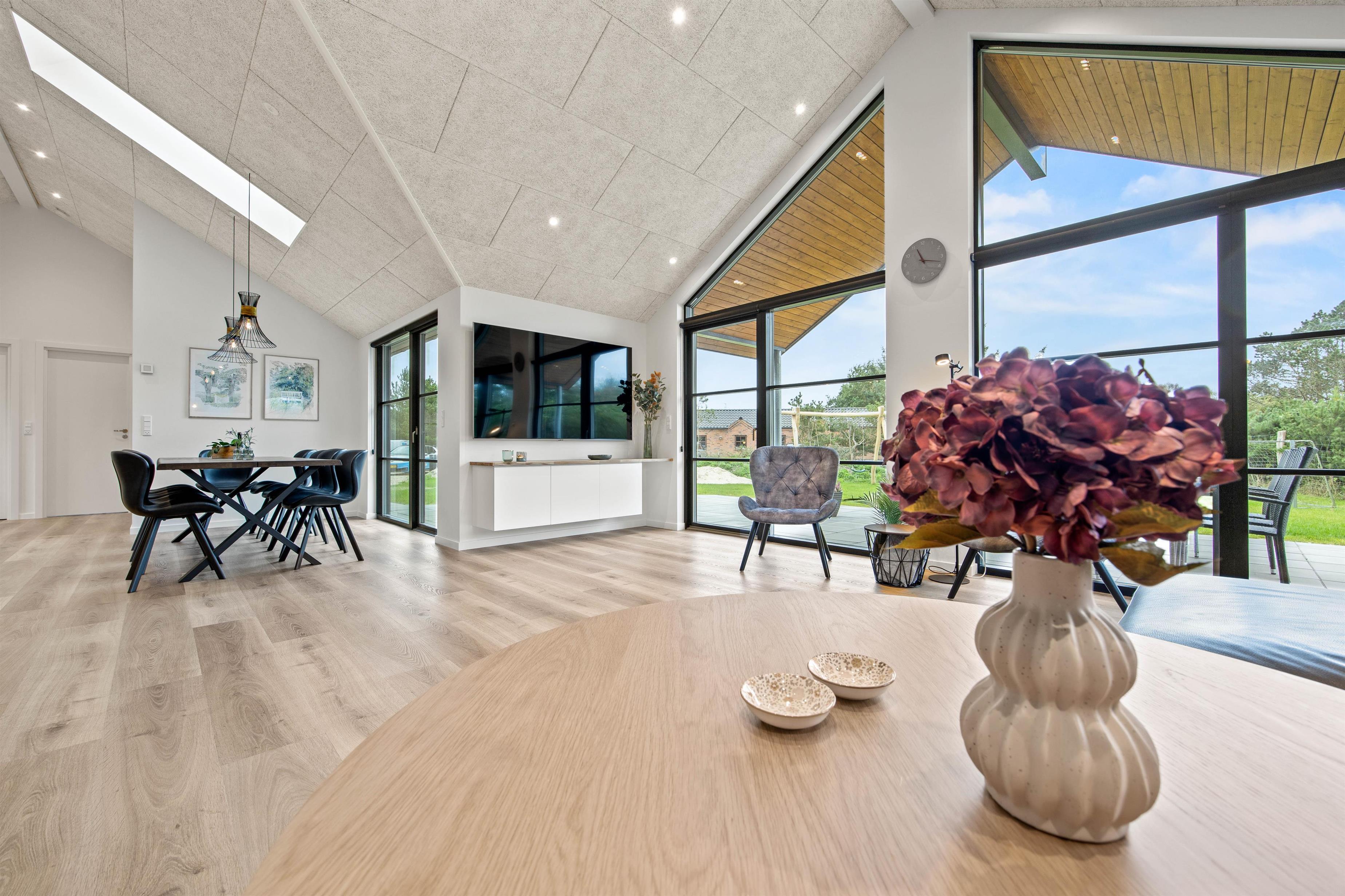 This holiday home is packed with impressive features. The typical Scandinavian ambiance and interior design will immediately put you in holiday mode. You'll feel at home straight away and can look forward to a wonderful stay. The 164 square metres of space comfortably accommodates up to 8 people, with 4 bedrooms (all with double beds) and 2 spacious bathrooms with underfloor heating. Completed in 2023, every room offers a bright, pleasant and beautiful atmosphere.