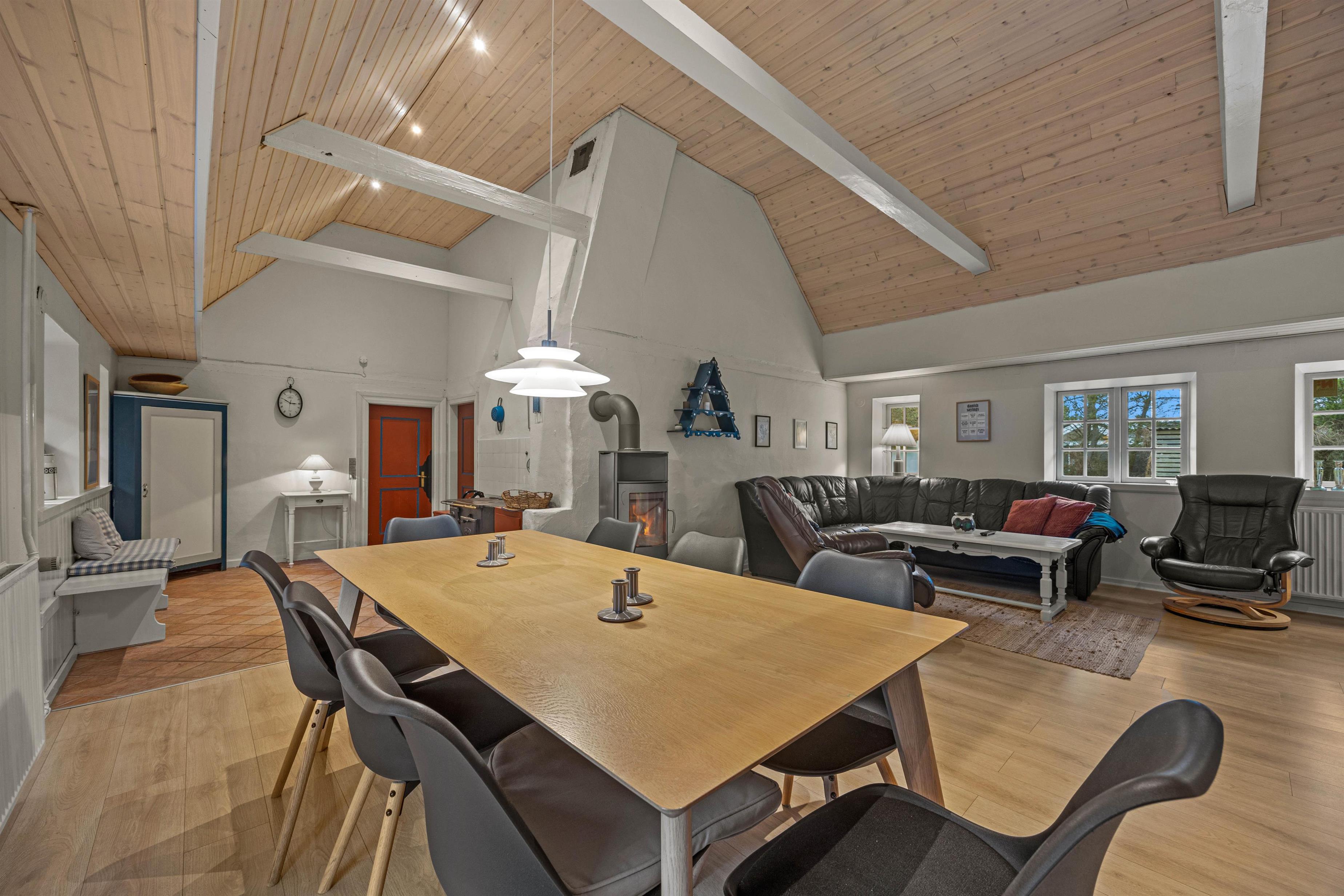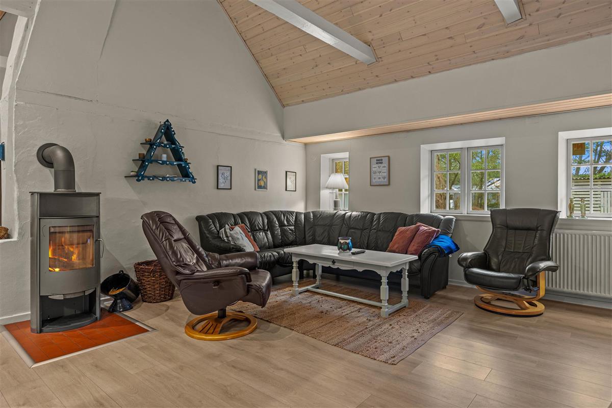 You will have 3 simply furnished bedrooms at your disposal, each equipped with double beds, and there is also a small bedroom with a bunk bed and a loft. In the living room, you can enjoy the wood-burning stove, which provides effective heating in the old house, especially on cooler evenings. Read a good book or enjoy each other's company in front of the crackling fire while the wind whistles outside.