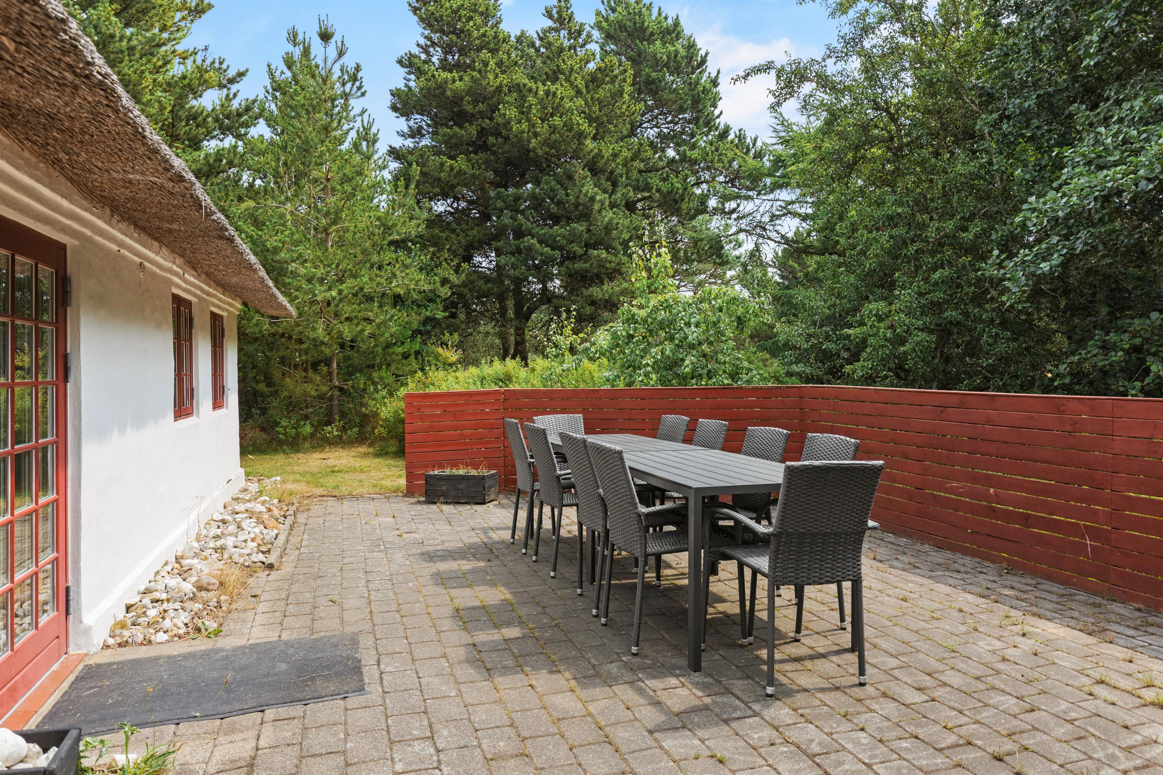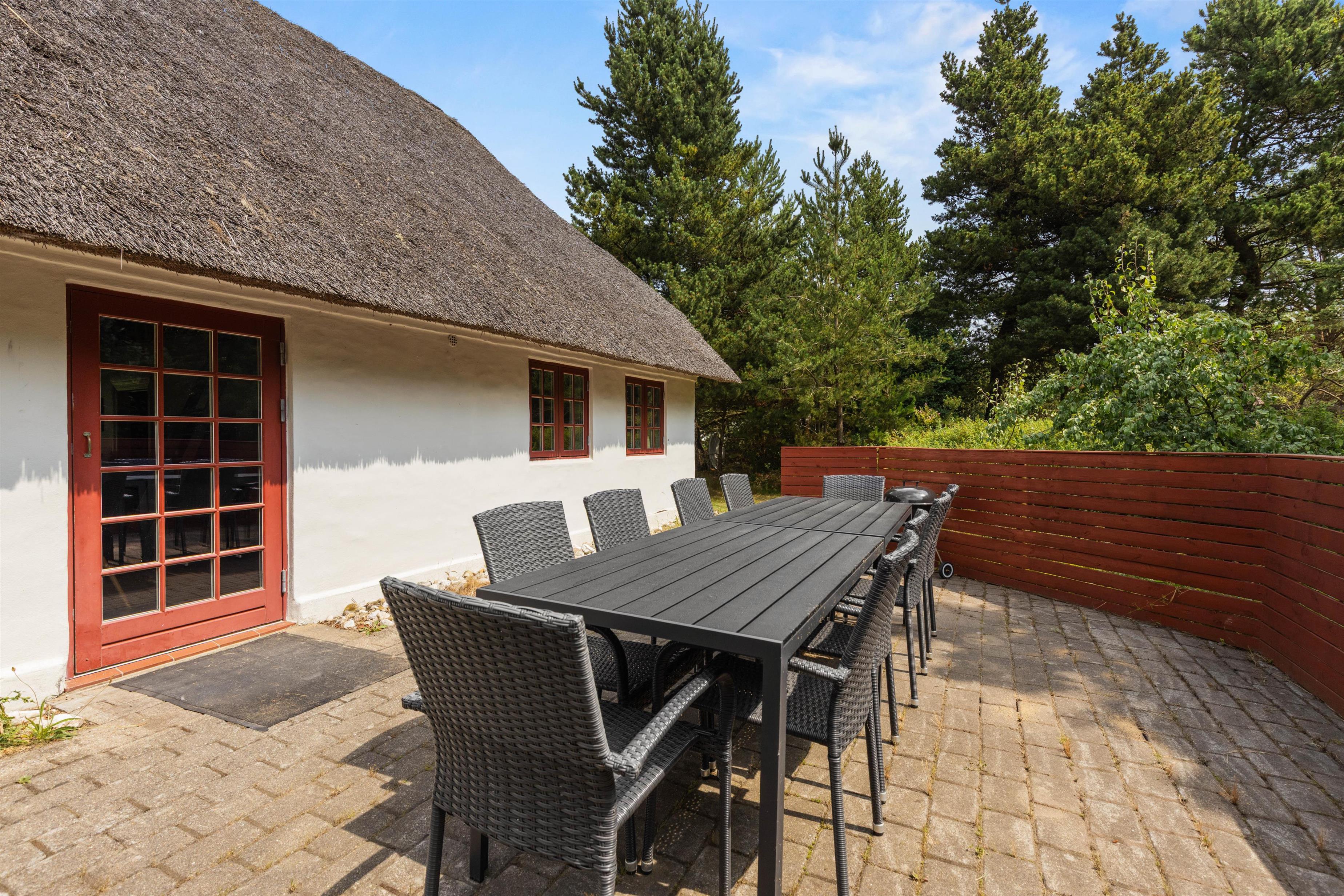 This old thatched cottage from 1875 in Blåvand, located at Blåvandvej 75, offers 157 m² of space for up to 6 people and 2 dogs to enjoy recreational days in both the town and the countryside in this holiday destination.