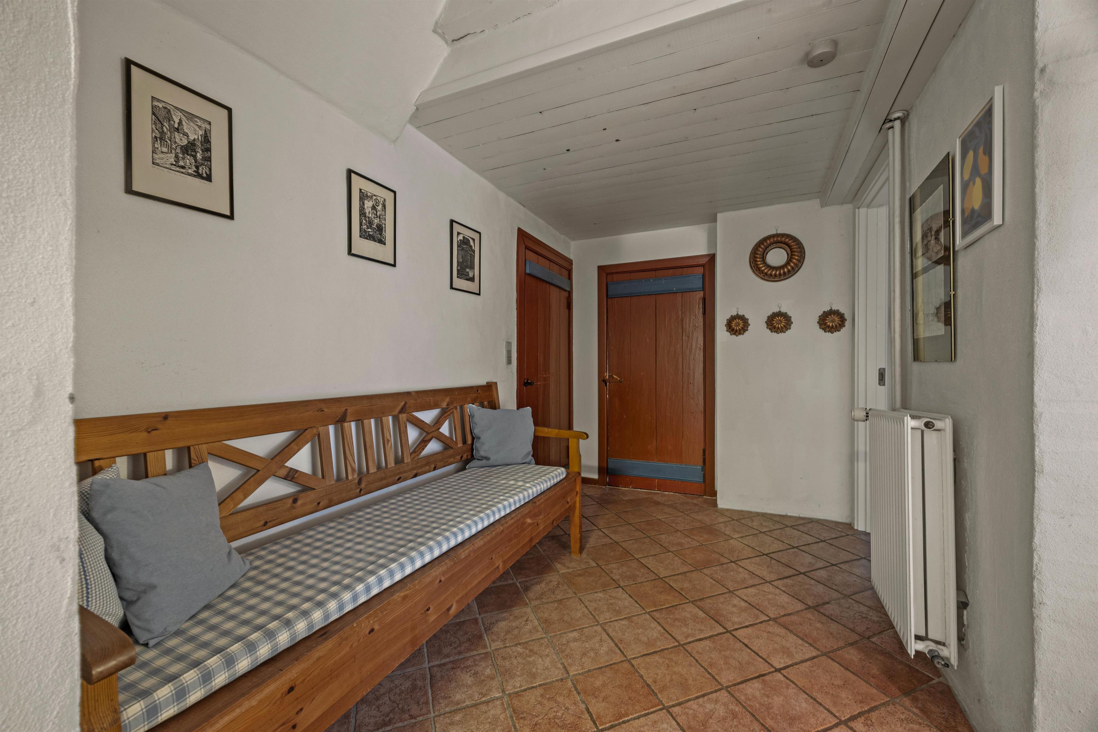 In the holiday home, you will find old, originally painted doors and nostalgic decorations as well as more present-day furniture and knick-knacks.