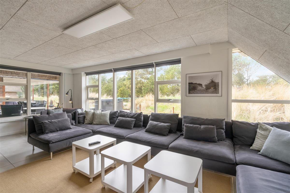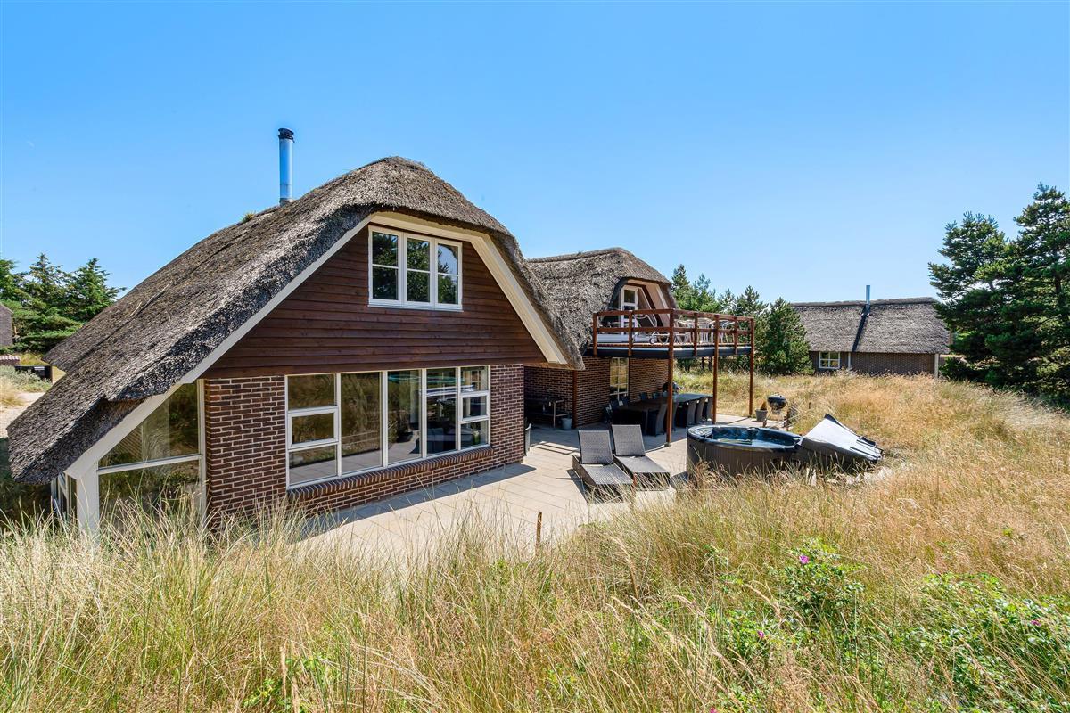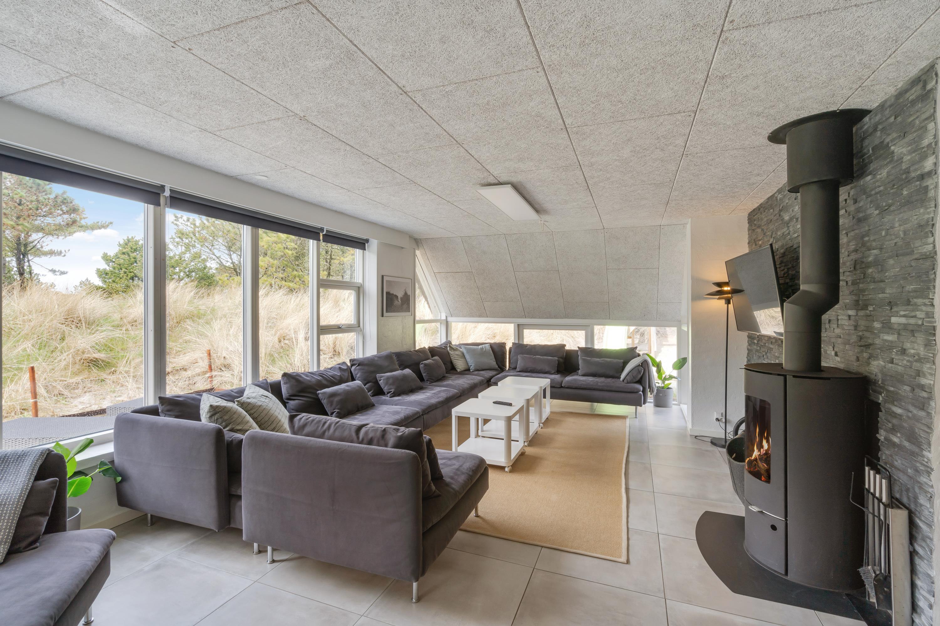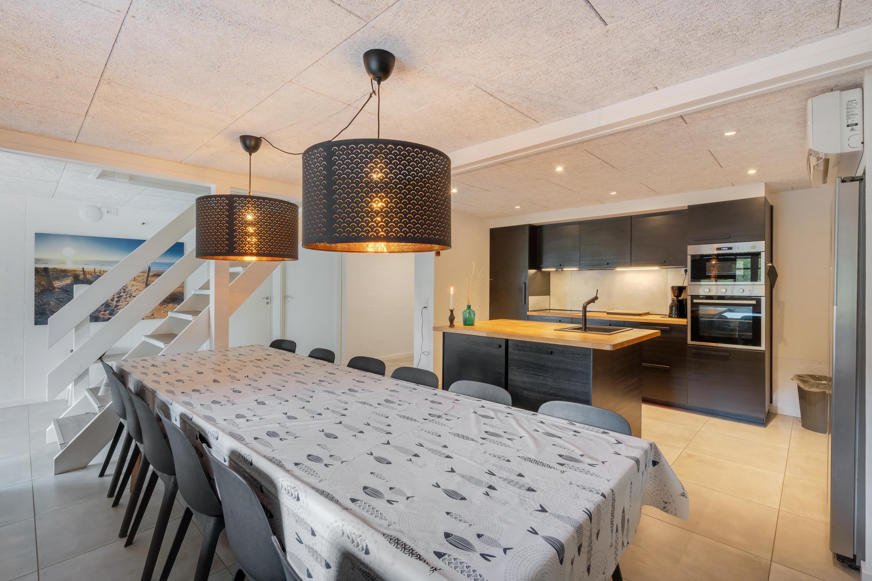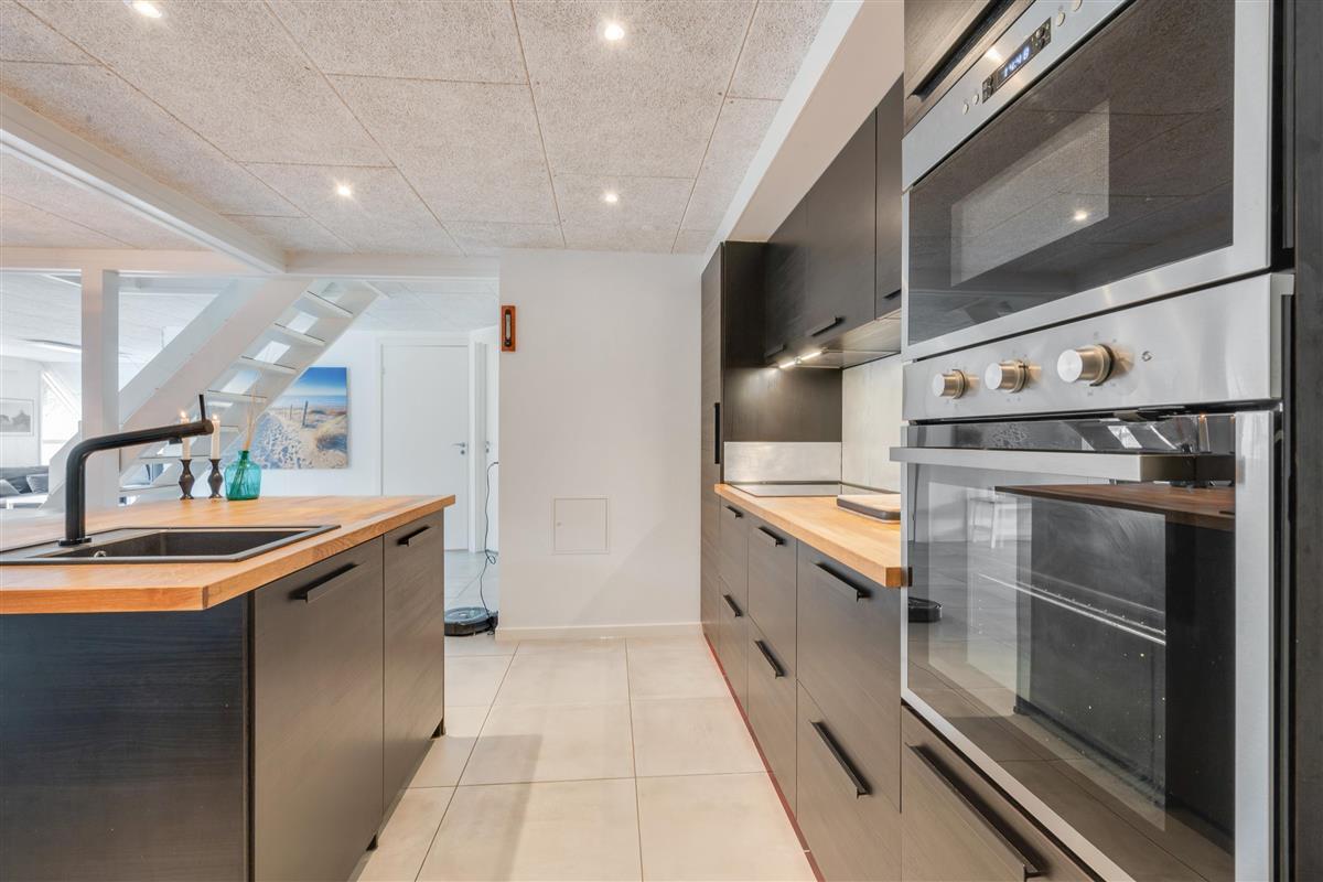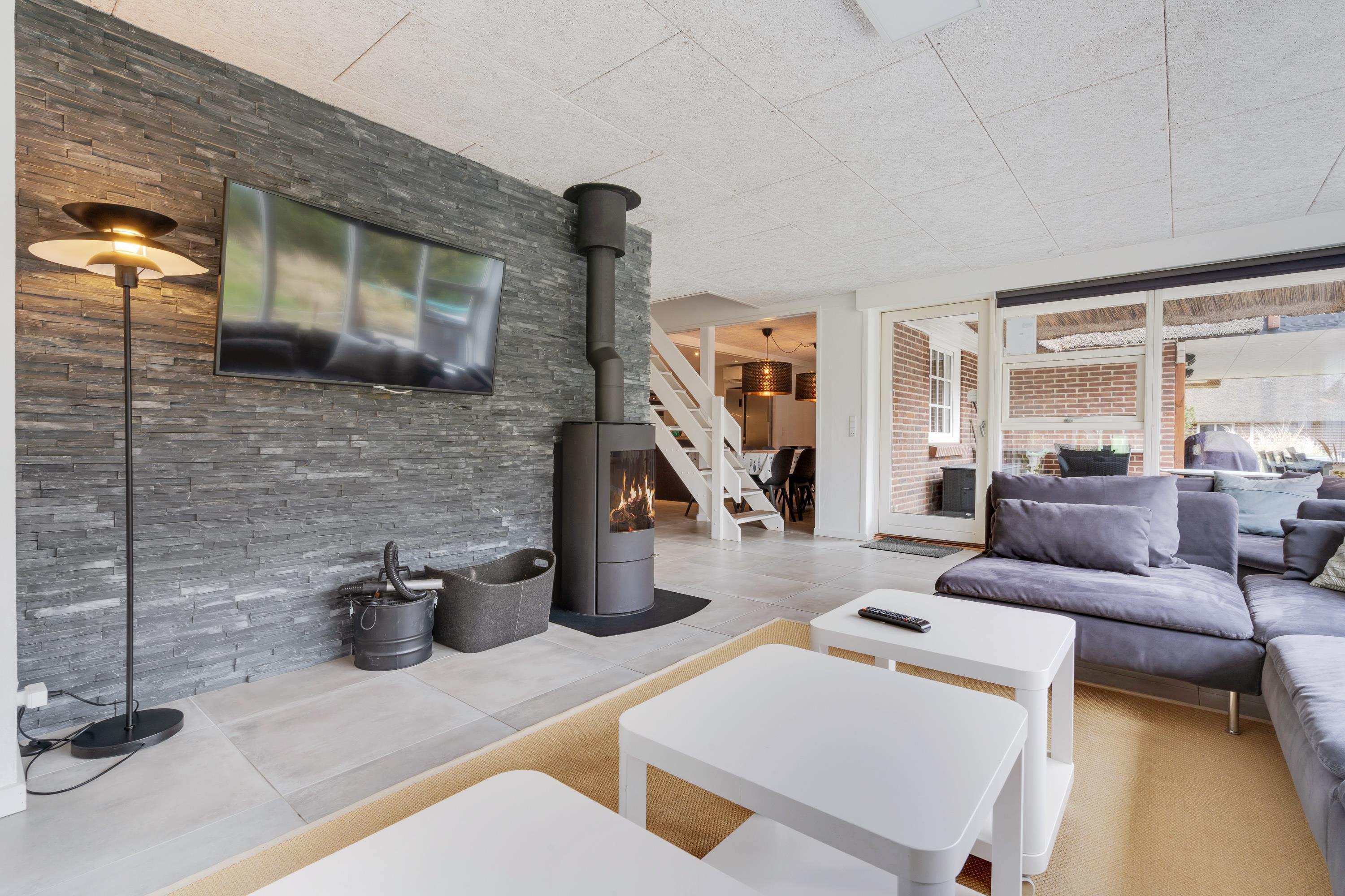 Modern, stylish comfort spans 270 square metres over two floors. There are 4 double beds and 4 single beds in total, plus two bathrooms with underfloor heating. In the spacious living area with its open-plan, ultra-modern kitchen, the enormous sofa immediately catches the eye - perfect for evening television viewing. The wood-burning stove enhances the cosy atmosphere, completed in quintessential Danish design.