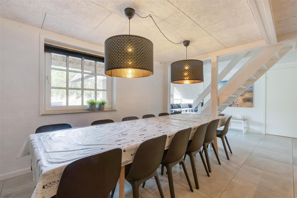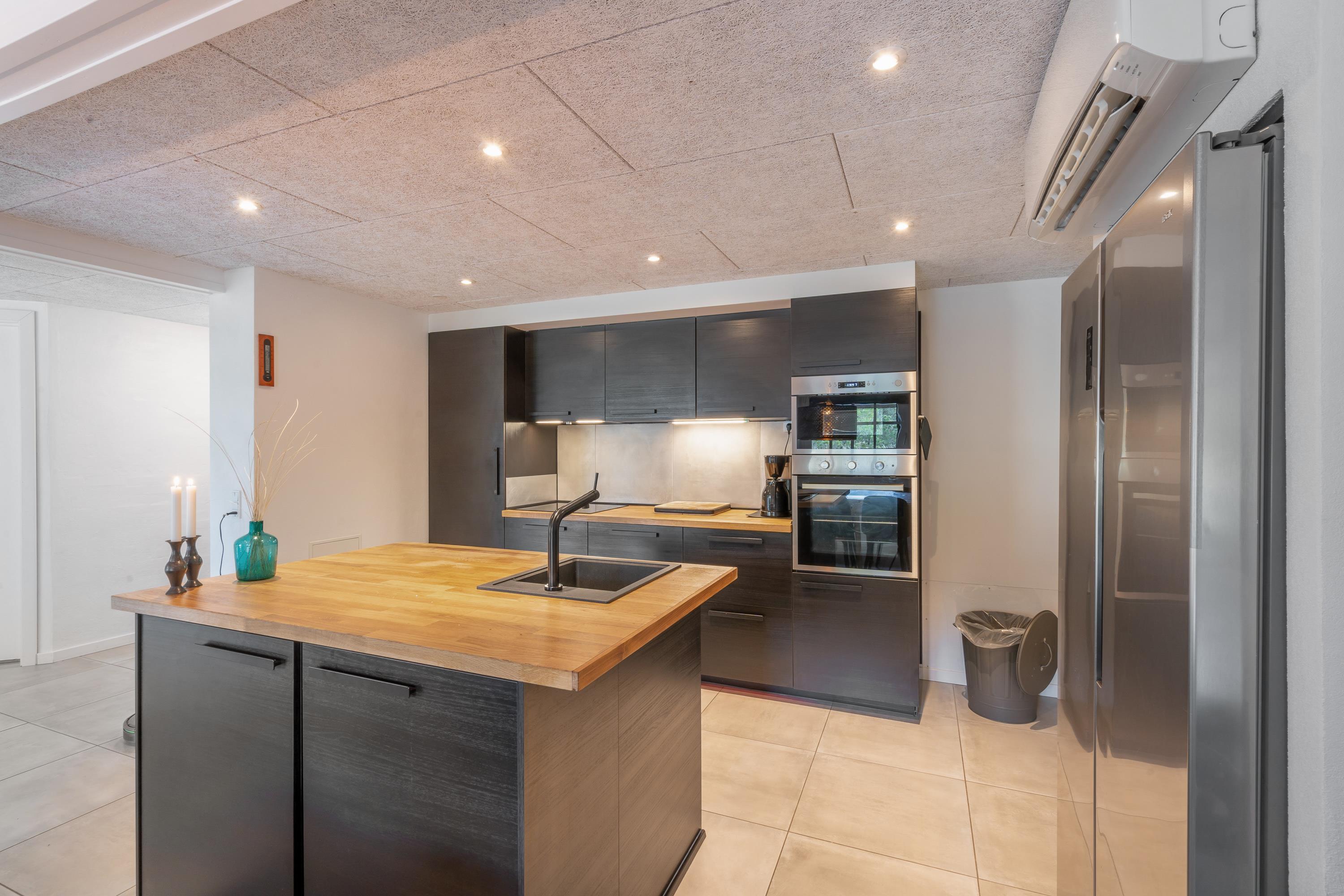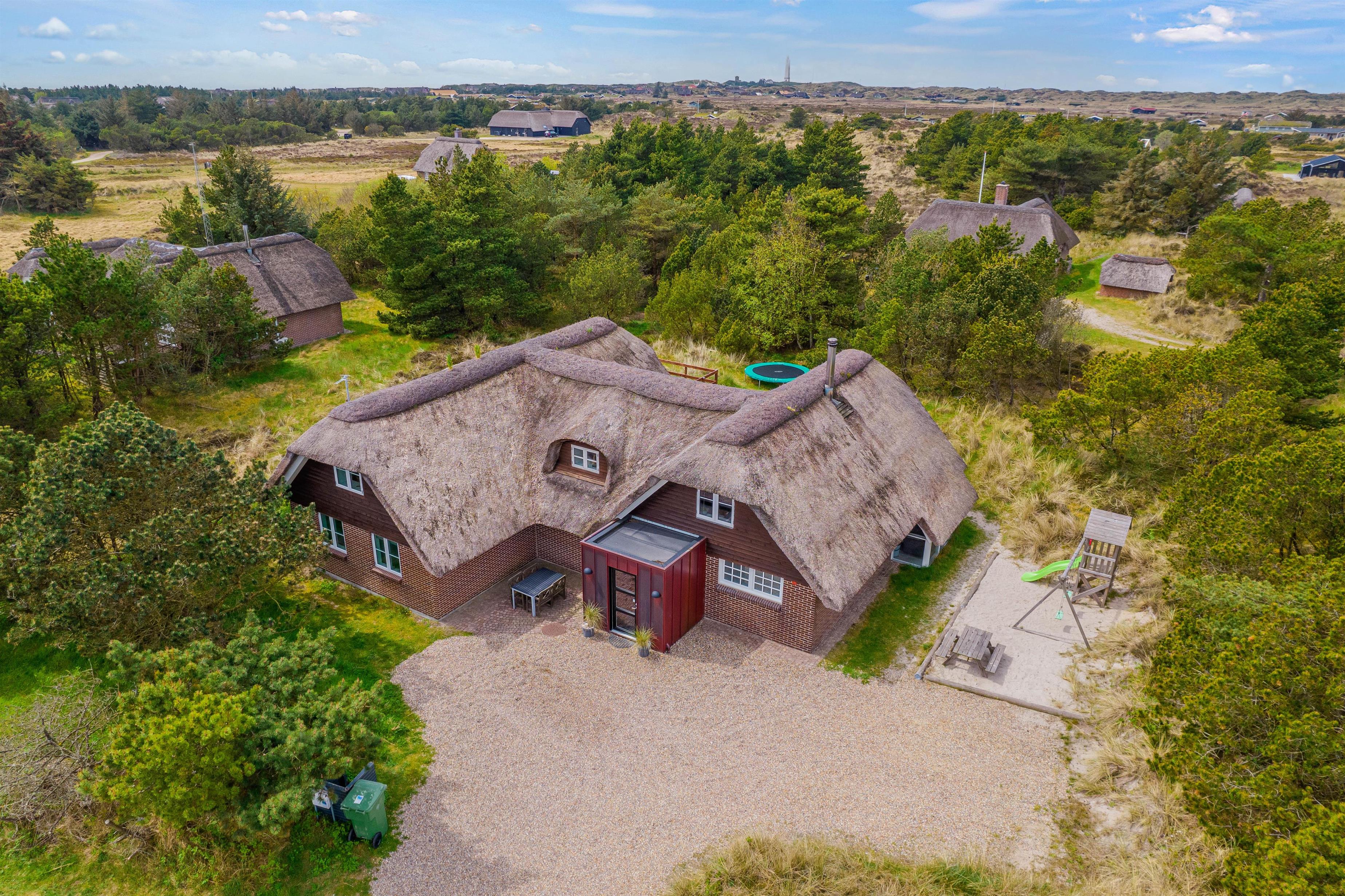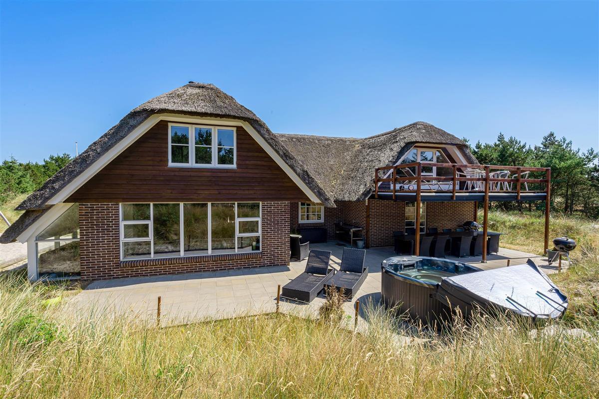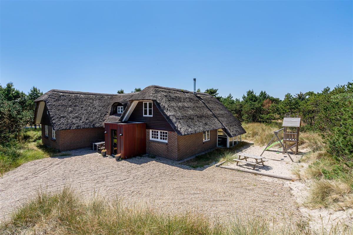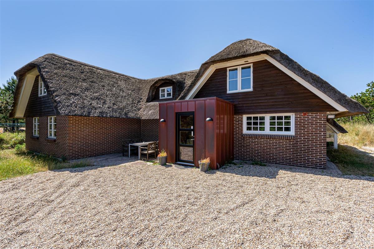 Modern, stylish comfort spans 270 square metres over two floors. There are 4 double beds and 4 single beds in total, plus two bathrooms with underfloor heating. In the spacious living area with its open-plan, ultra-modern kitchen, the enormous sofa immediately catches the eye - perfect for evening television viewing. The wood-burning stove enhances the cosy atmosphere, completed in quintessential Danish design.