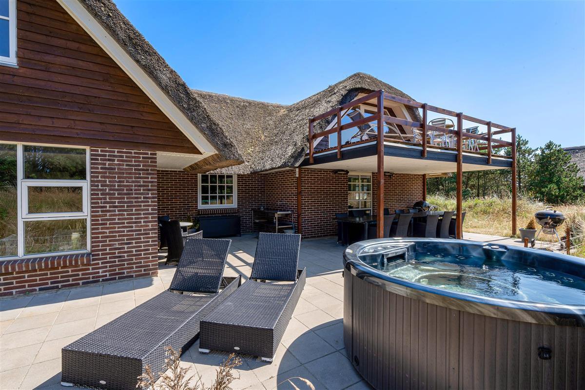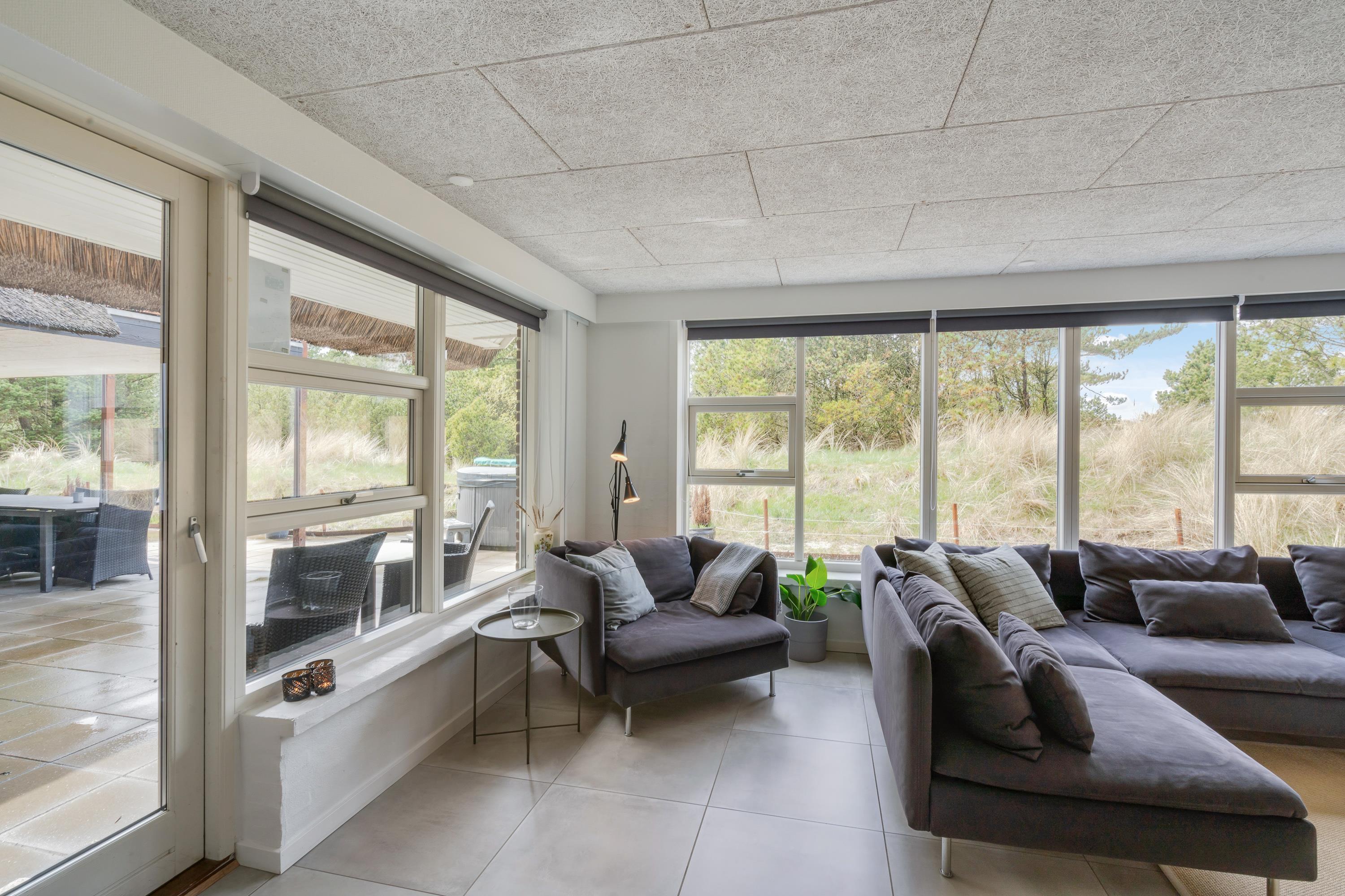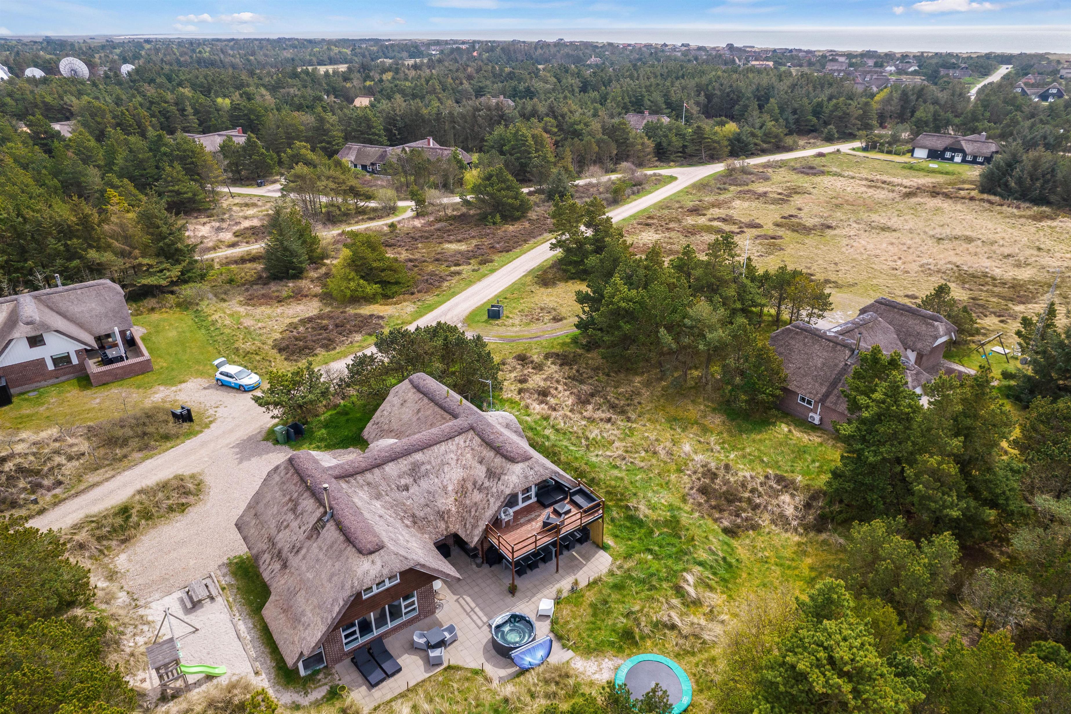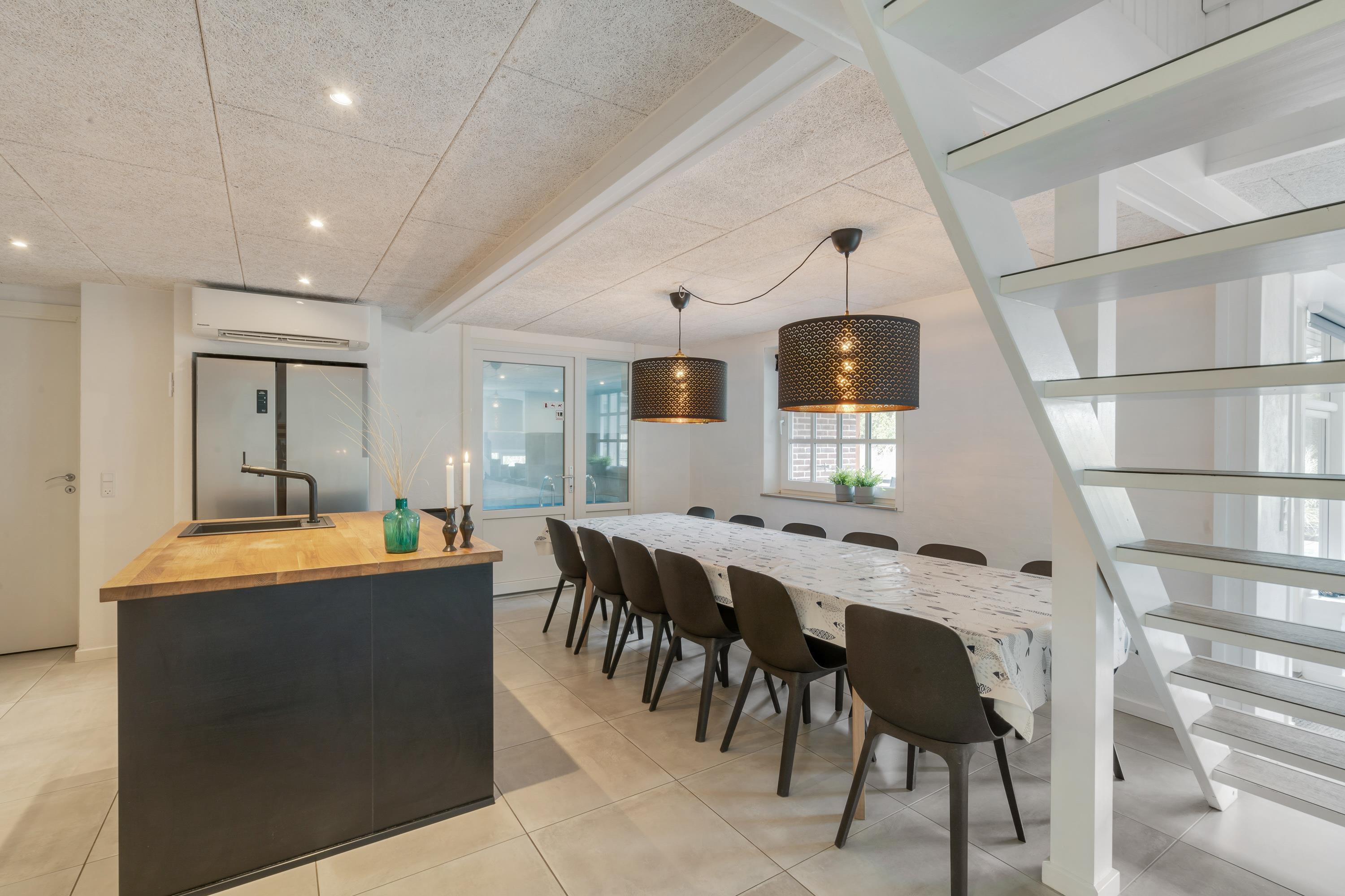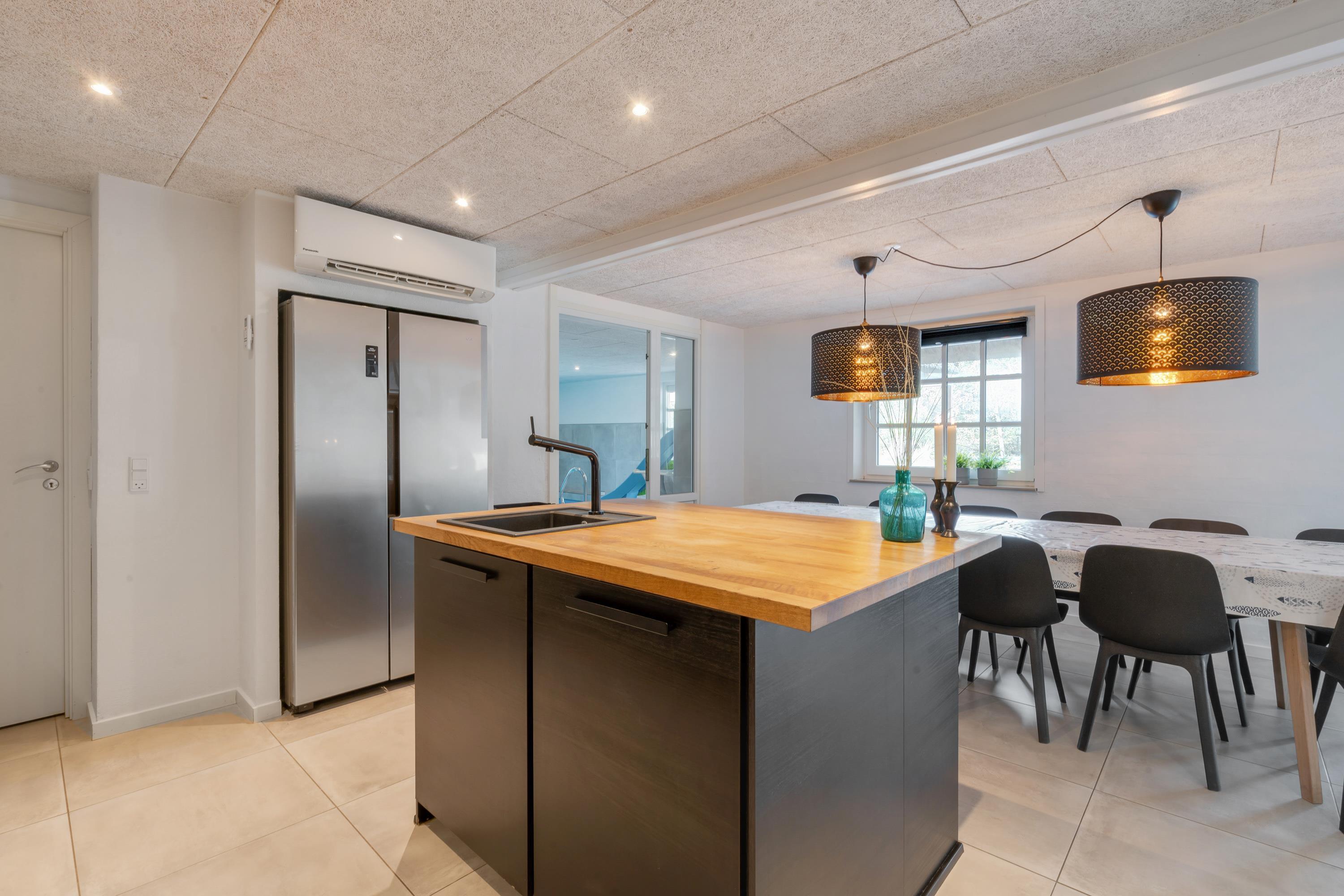 Modern, stylish comfort spans 270 square metres over two floors. There are 4 double beds and 4 single beds in total, plus two bathrooms with underfloor heating. In the spacious living area with its open-plan, ultra-modern kitchen, the enormous sofa immediately catches the eye - perfect for evening television viewing. The wood-burning stove enhances the cosy atmosphere, completed in quintessential Danish design.