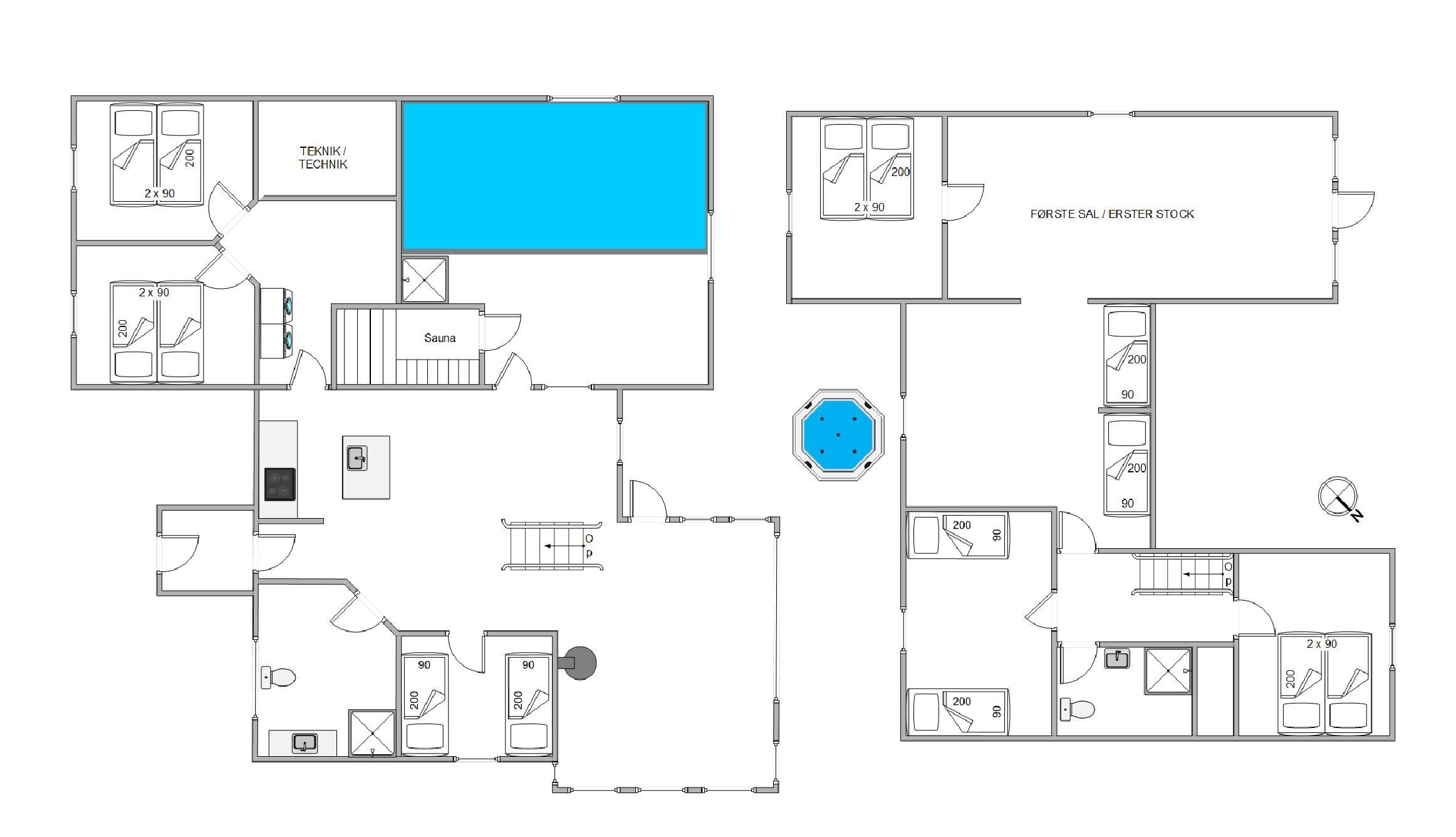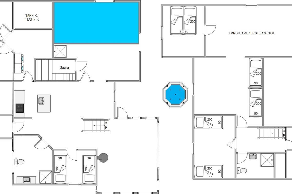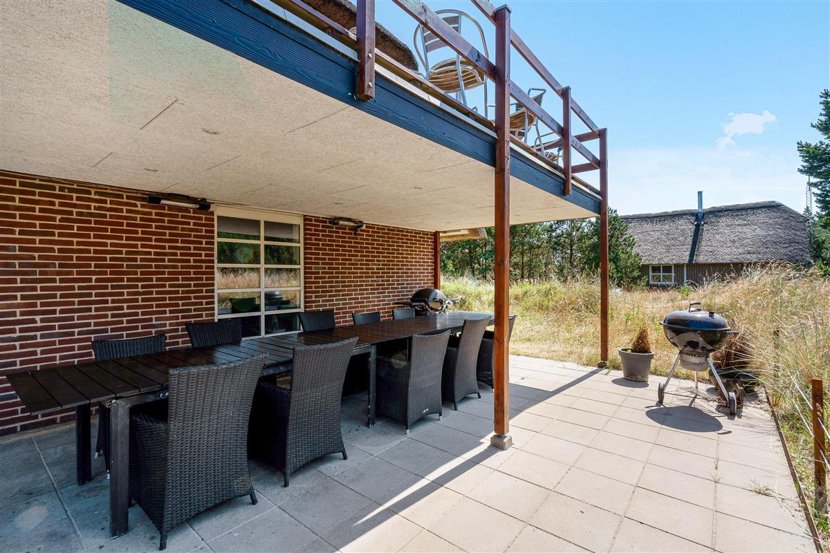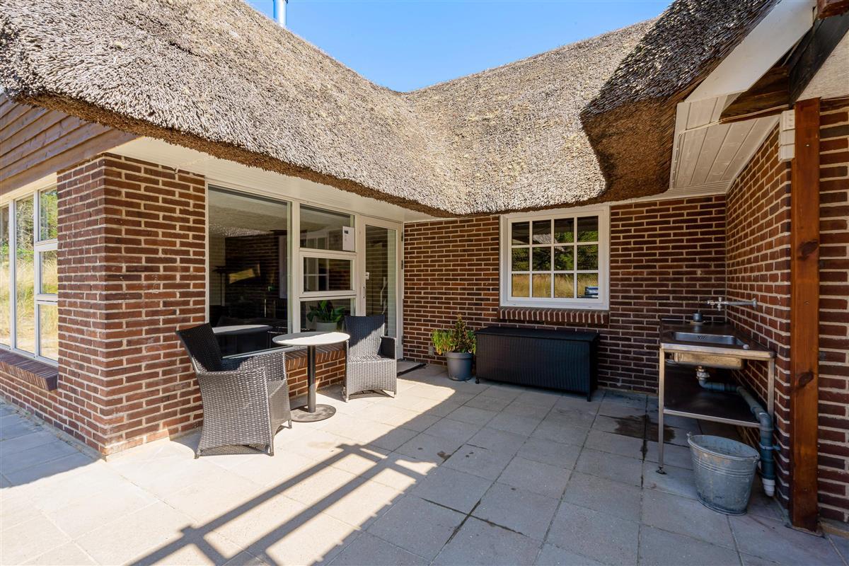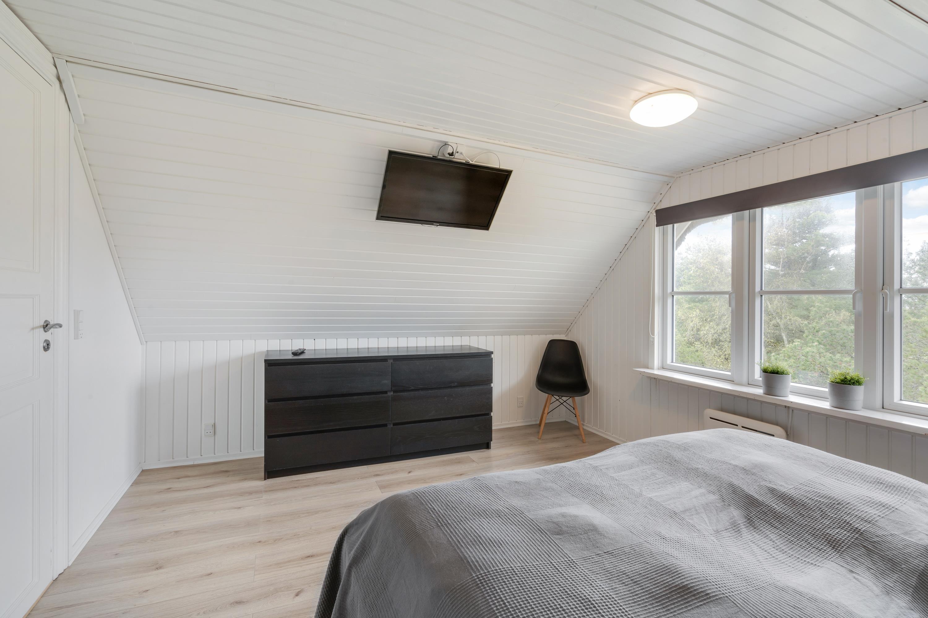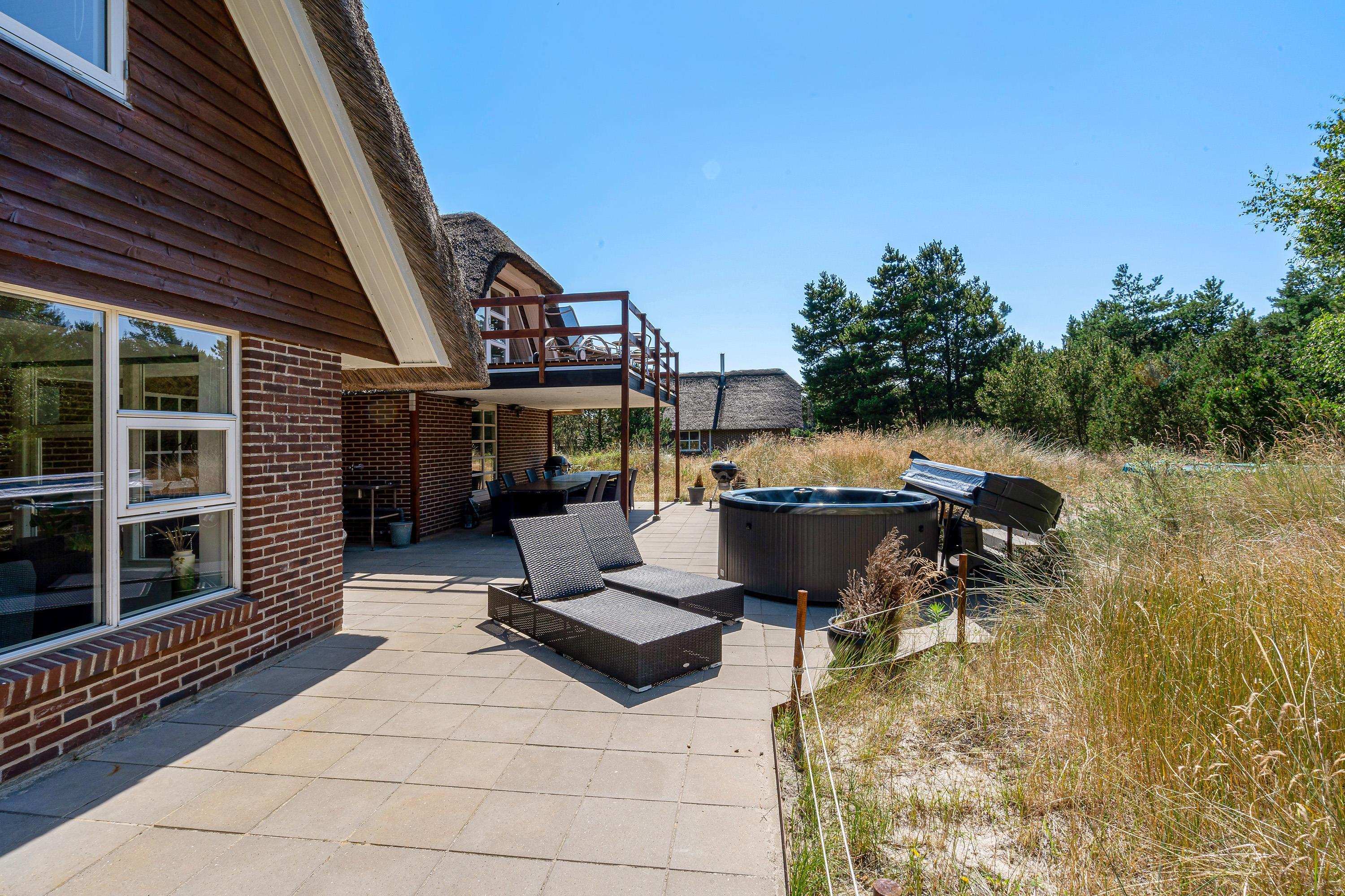 Modern, stylish comfort spans 270 square metres over two floors. There are 4 double beds and 4 single beds in total, plus two bathrooms with underfloor heating. In the spacious living area with its open-plan, ultra-modern kitchen, the enormous sofa immediately catches the eye - perfect for evening television viewing. The wood-burning stove enhances the cosy atmosphere, completed in quintessential Danish design.