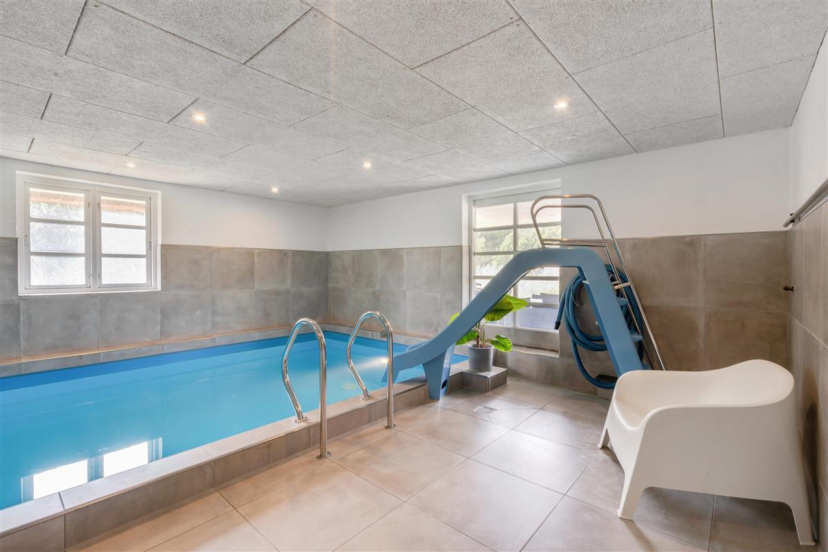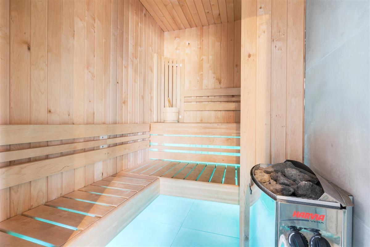 Pool room with swimming pool and sauna