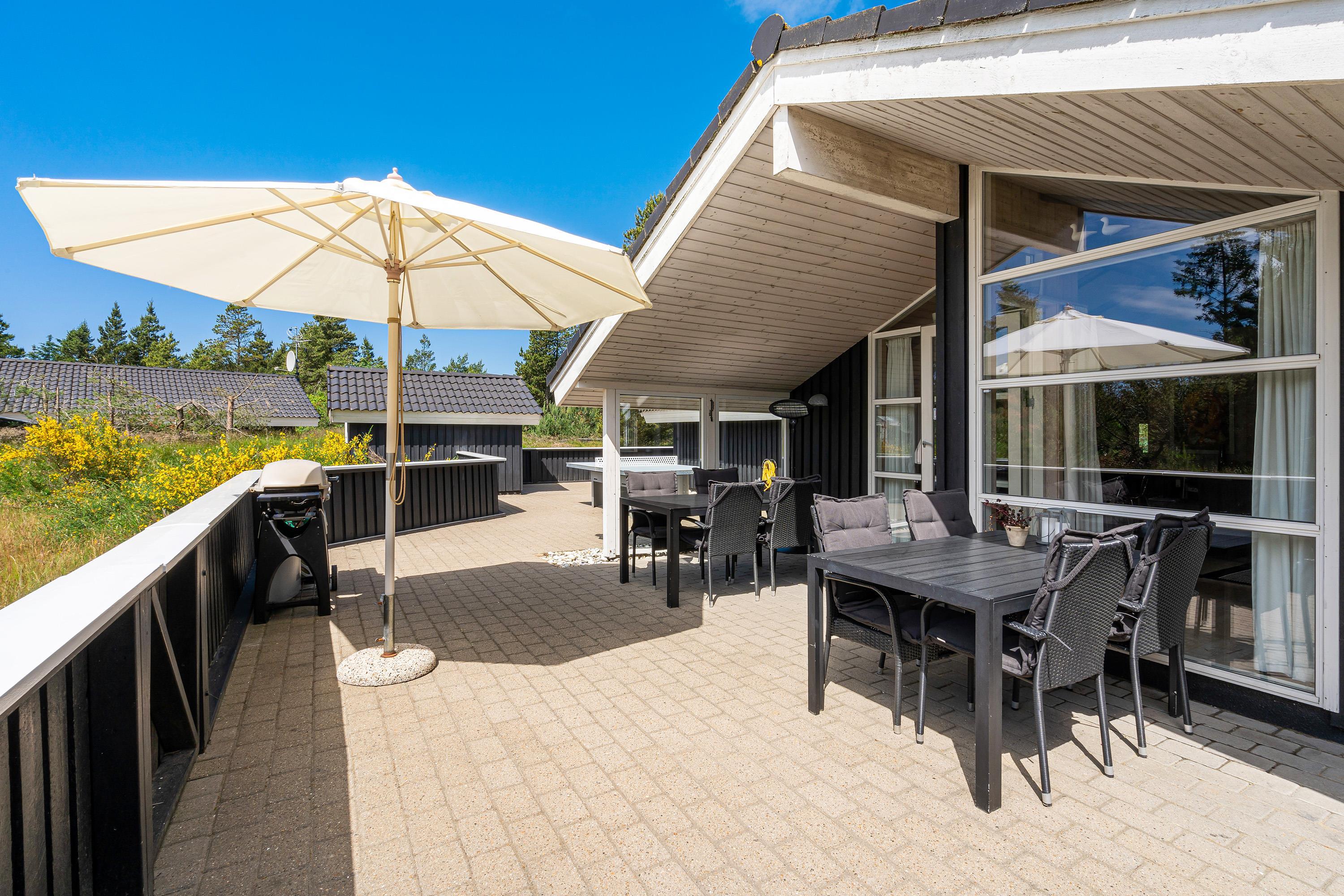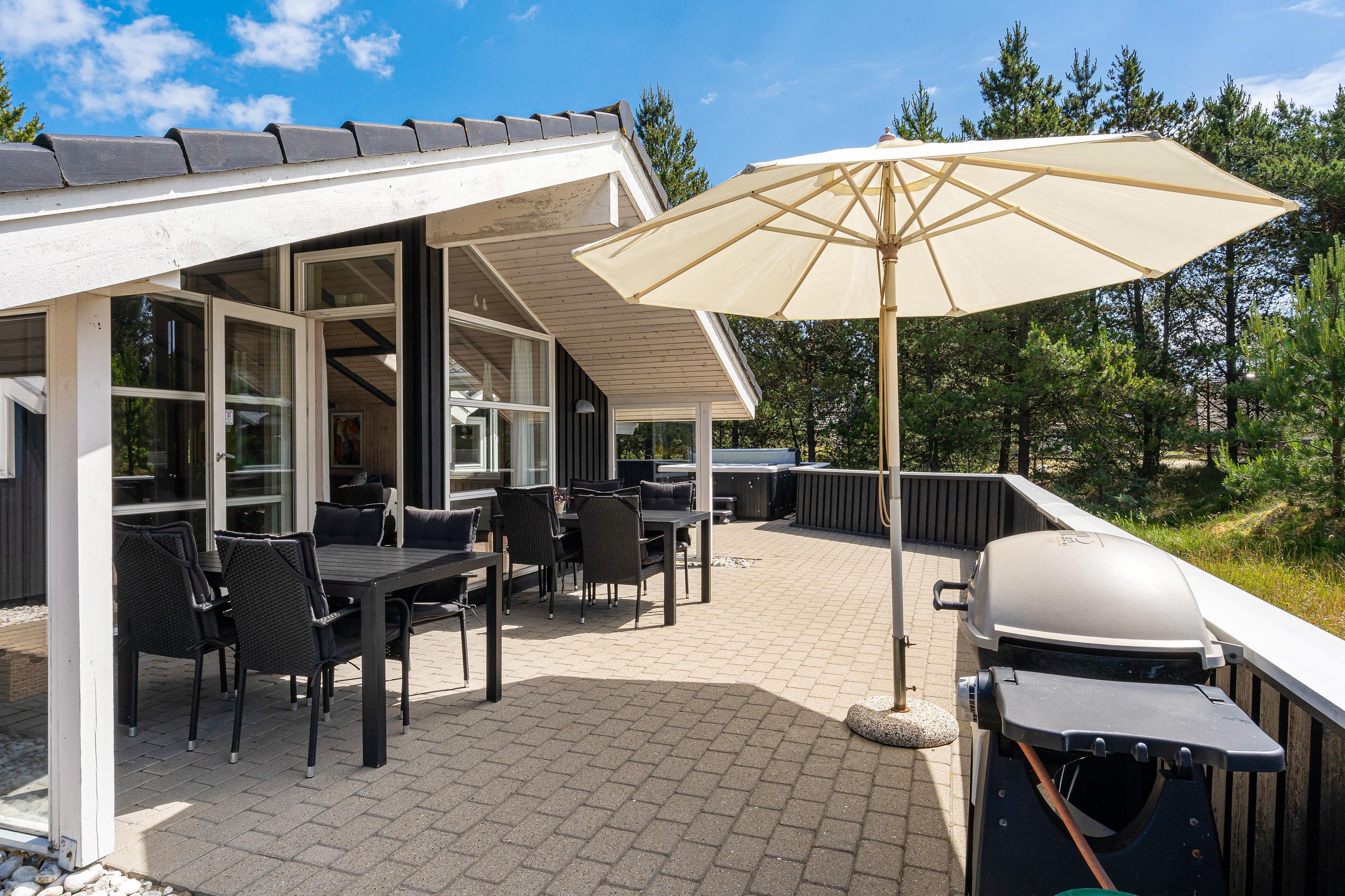 The splendid outdoor area at Søren Gades Mark 30B is equipped with various garden furniture including tables, chairs, sun loungers and a parasol. The terrace features a patio heater, allowing outdoor enjoyment even on cool evenings. Part of the terrace is covered, and there's a gas barbecue ready for preparing your steaks, sausages and other favourites. All that's left is to say: Bon appétit!