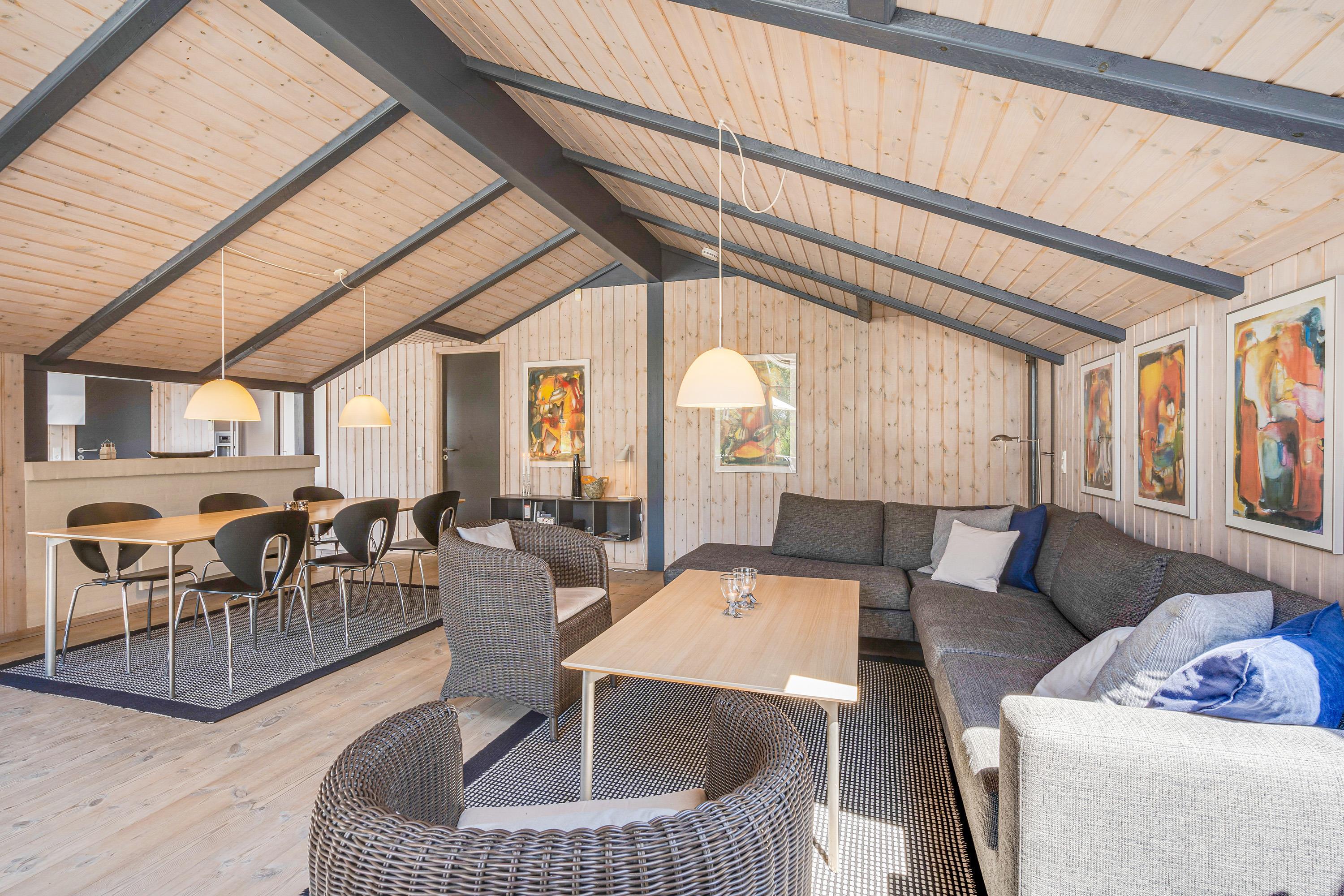 You'll enjoy wonderful holiday moments in the family room, which combines the kitchen, living and dining areas. After cooking and eating together, comfortable seating invites you to cosy family evenings of games or films. The wood-burning stove enhances the warm, welcoming atmosphere.