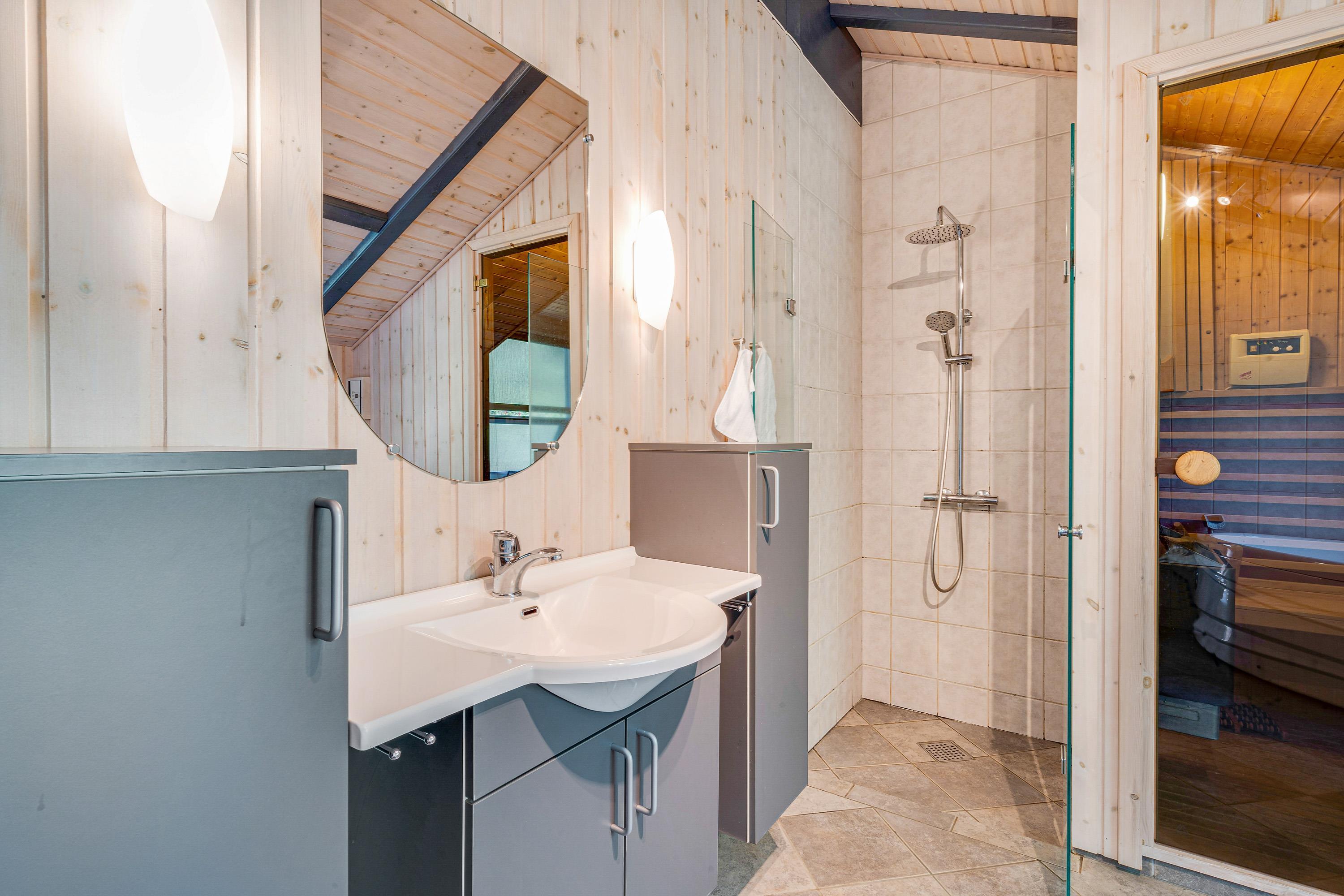For those who prefer intense relaxation, the house's own sauna is perfect. This versatile sauna offers both traditional electric and infrared options. And there's no worry about cold feet when leaving the sauna - both bathrooms feature underfloor heating.