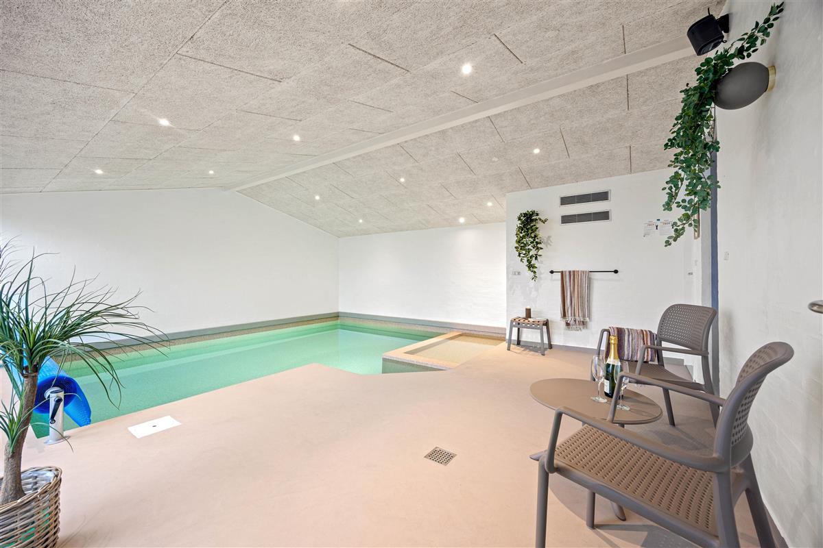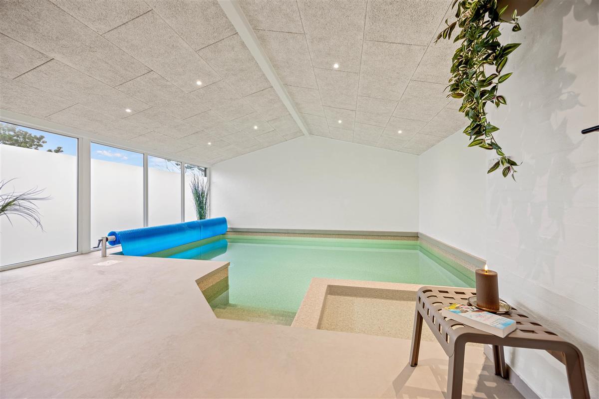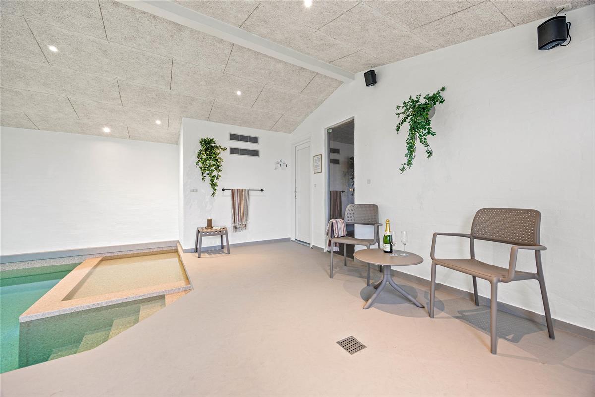 Swimming pool with shallow area, hot tub and sauna