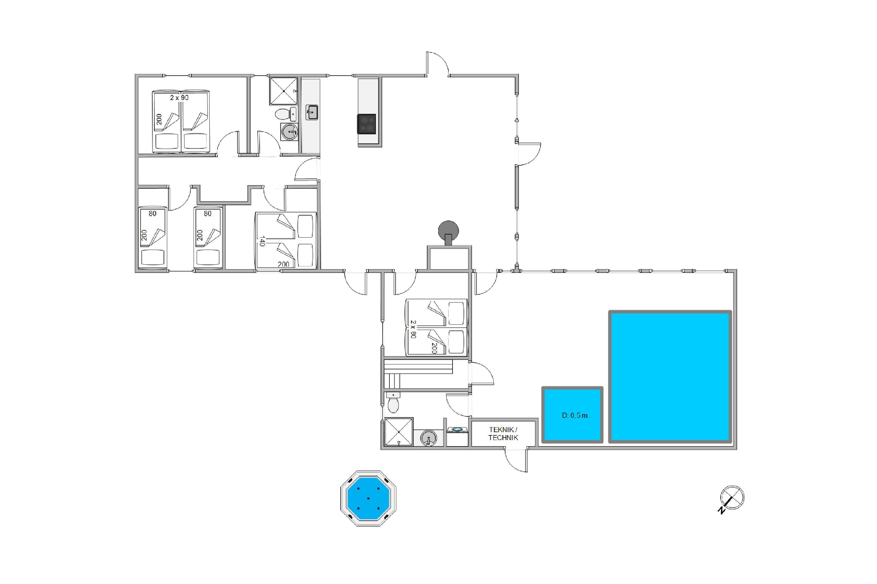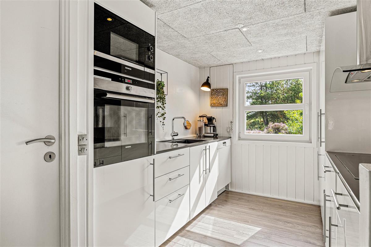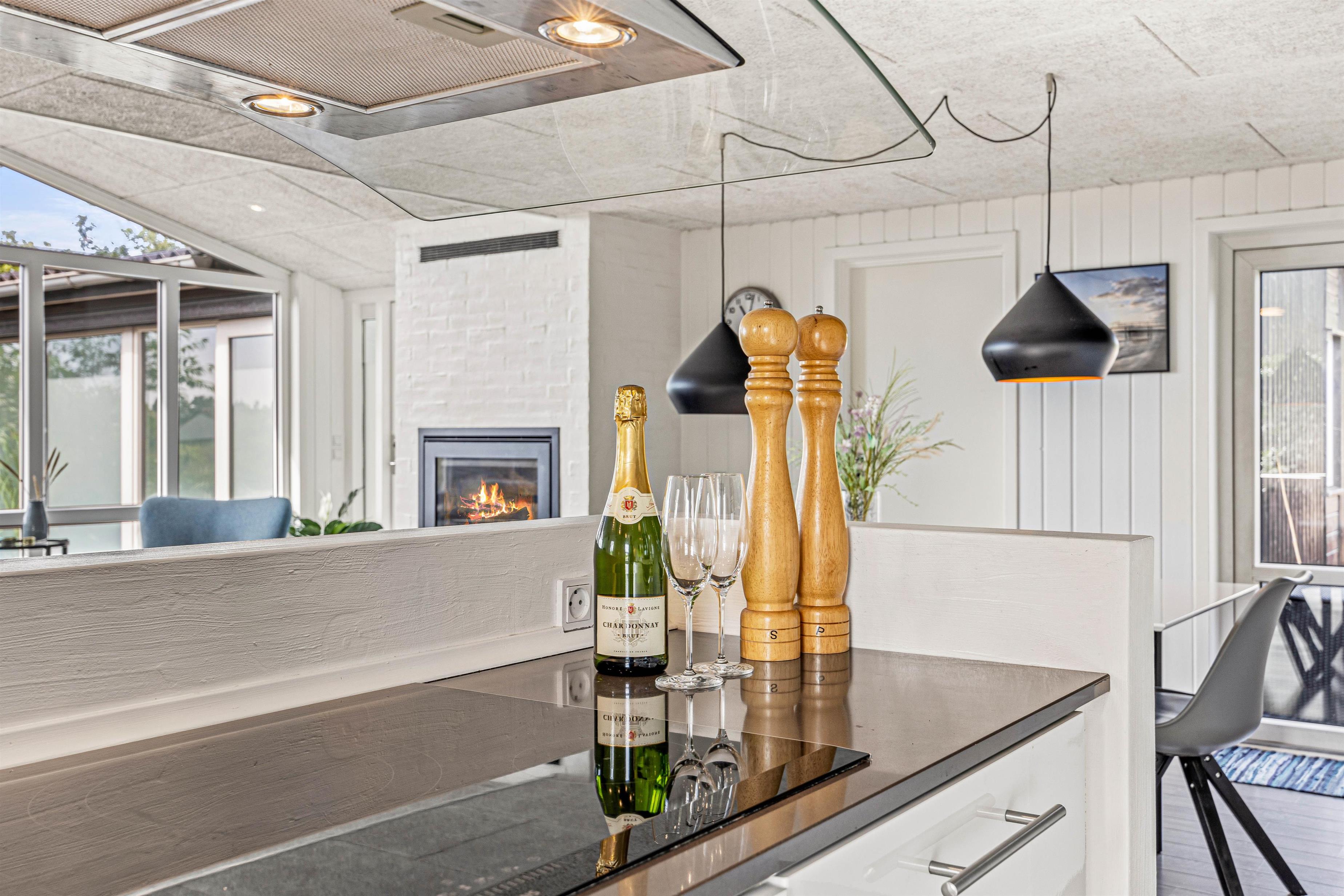 The spacious open-plan living area will undoubtedly become your gathering point for socialising, where you can eat, play games and watch television together. The holiday home features two TVs, one of which is a Smart TV. There's also a wood-burning stove, with the crackling of wood adding extra cosiness to your holiday mood. Both the living area and pool room are equipped with Bluetooth speakers for playing your own playlists.