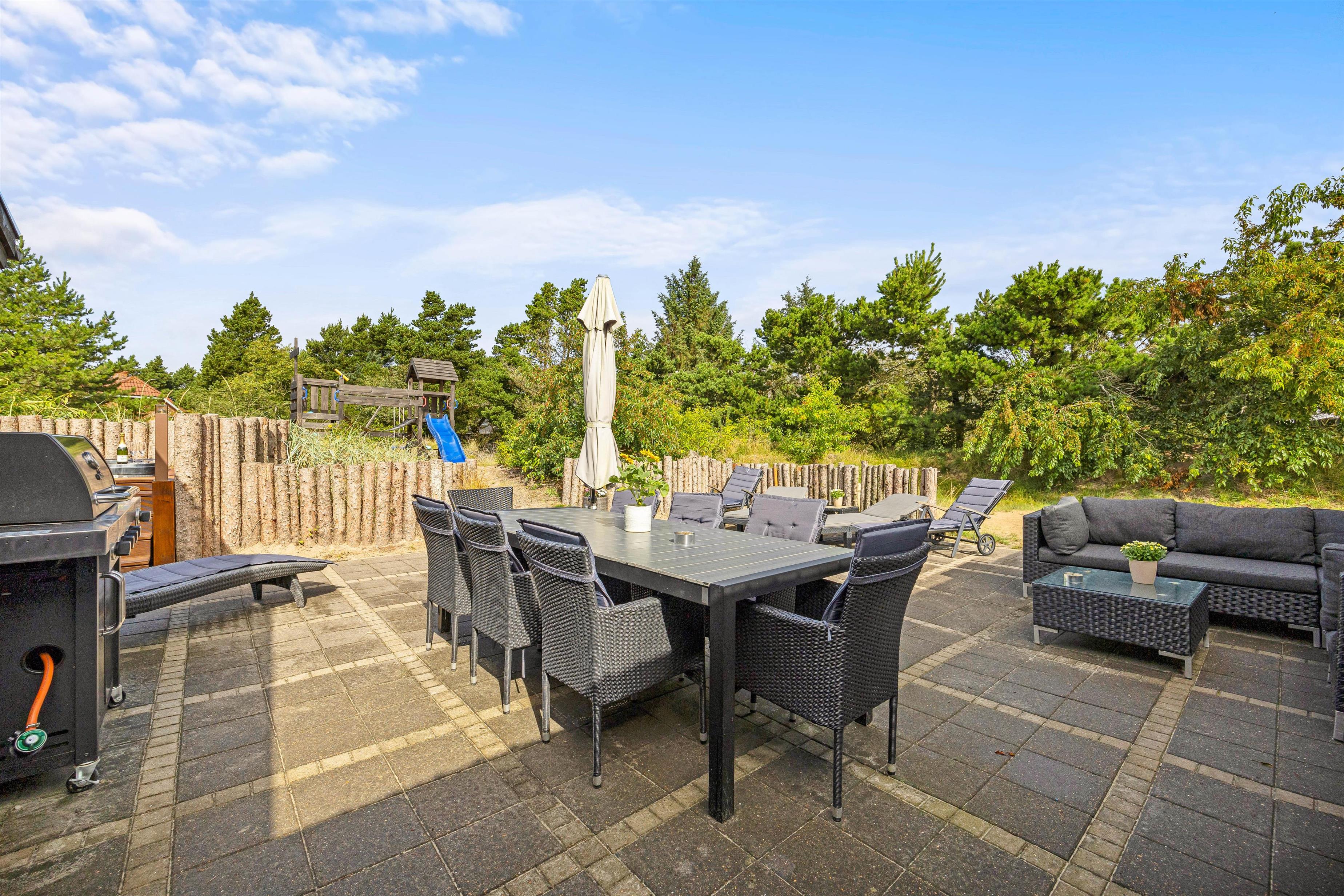 The terrace is furnished with garden furniture, sun loungers and a barbecue. Screened by trees and shrubs, you can sunbathe in privacy and enjoy evening barbecues in the fresh air.