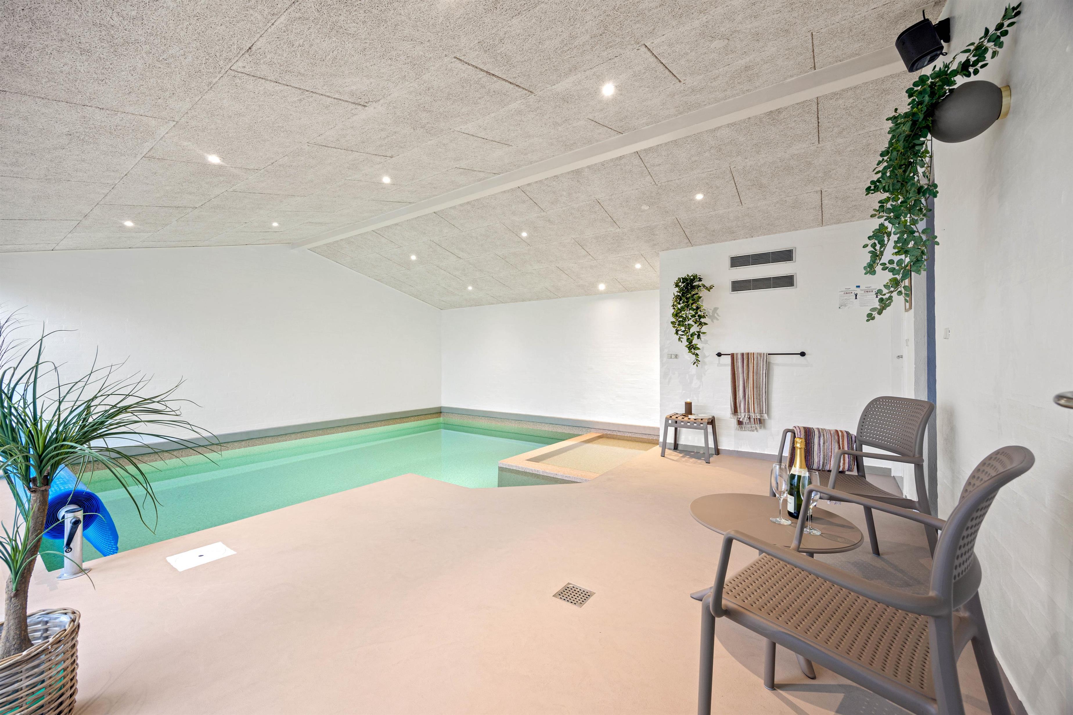 The 26-square-metre swimming pool features a shallow water area for young children. The whole family can gather here simultaneously, enhancing their holiday with swimming, bathing and relaxation. From the pool room, you can access the sauna, where you can thoroughly warm up and unwind after a walk along the North Sea beach or enjoying the wonderful natural surroundings.