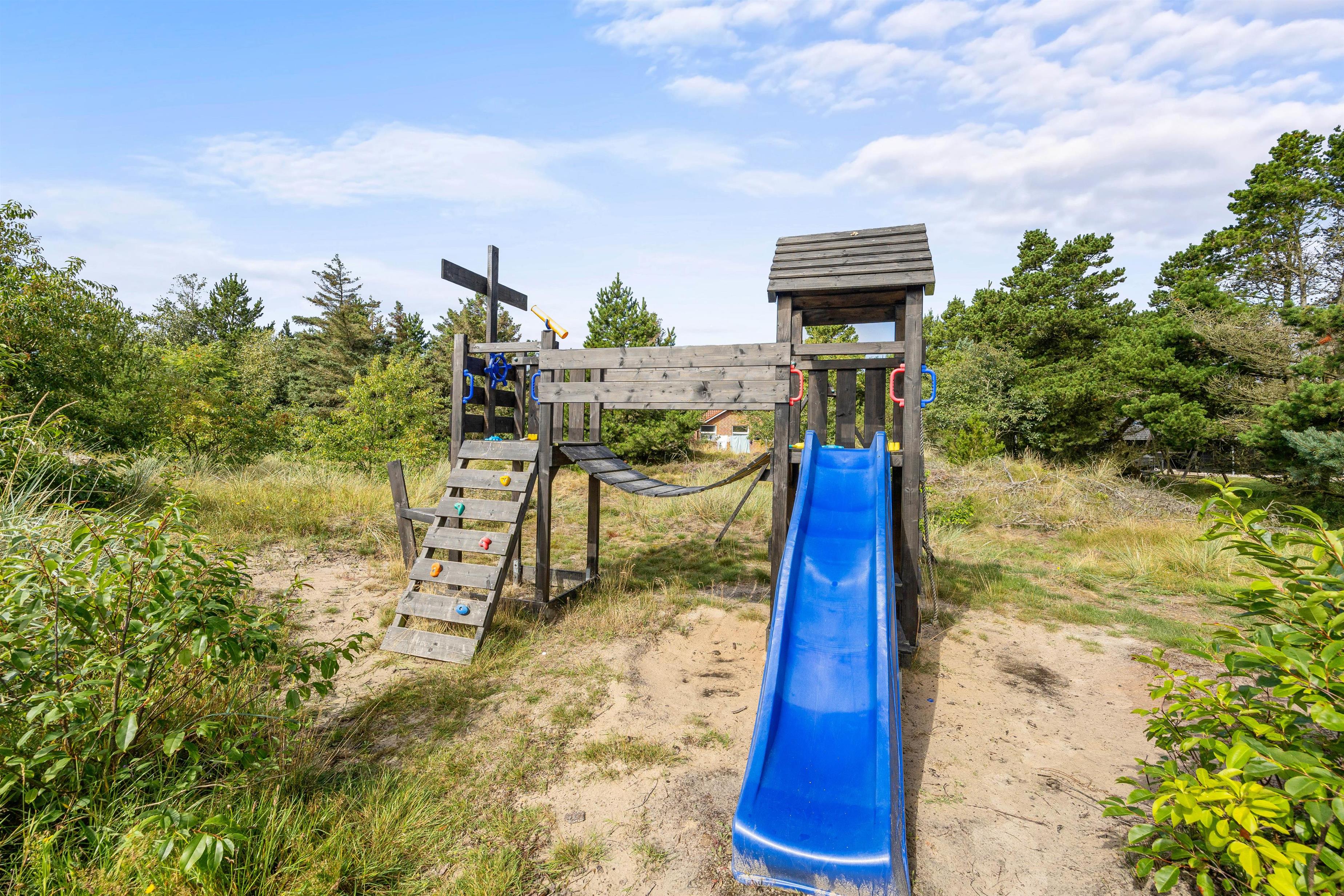 For younger guests, there's a play tower with swing, slide and sandpit where they can play all day. For the more energetic, there's also a trampoline for endless bouncing fun.