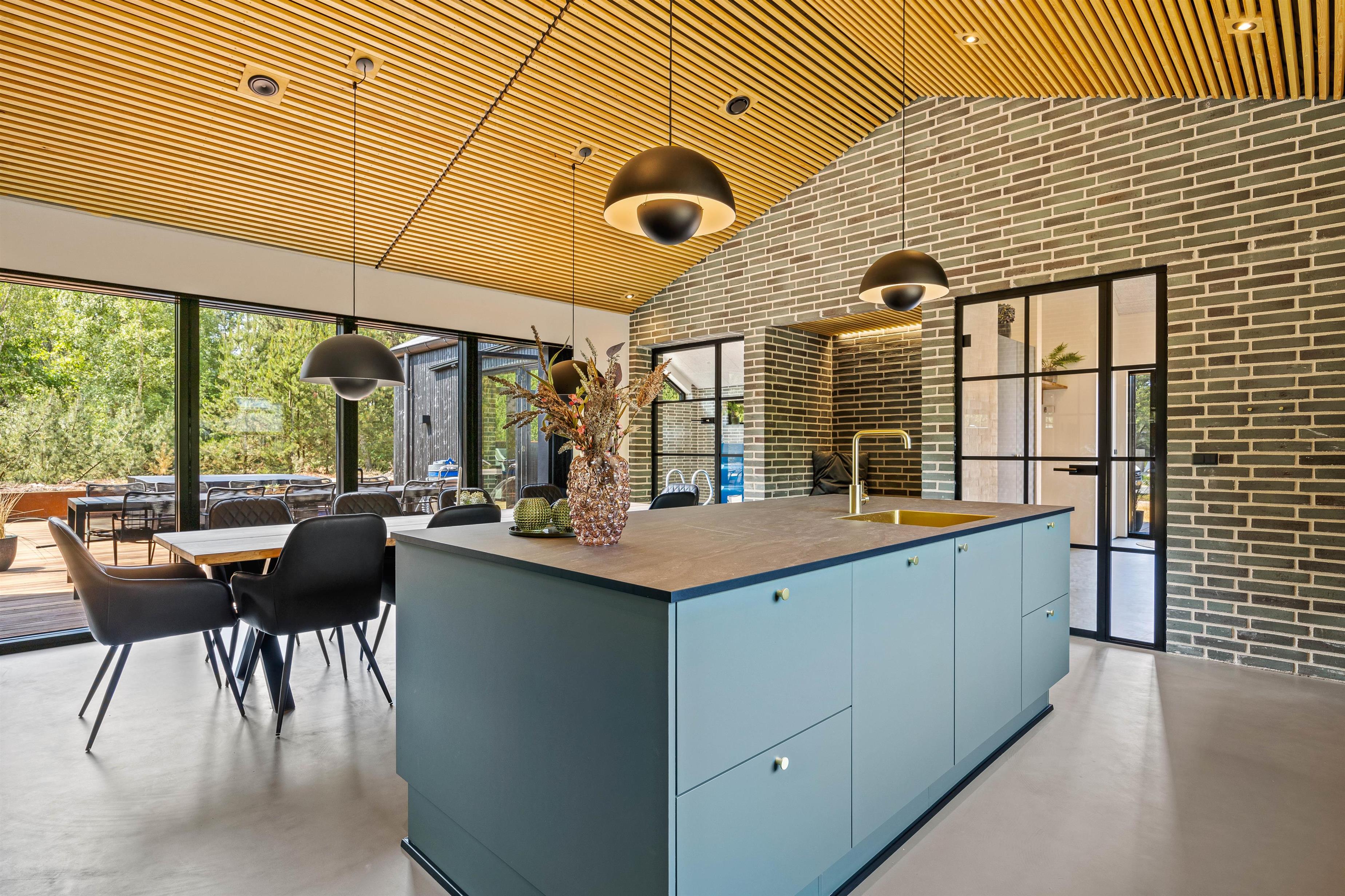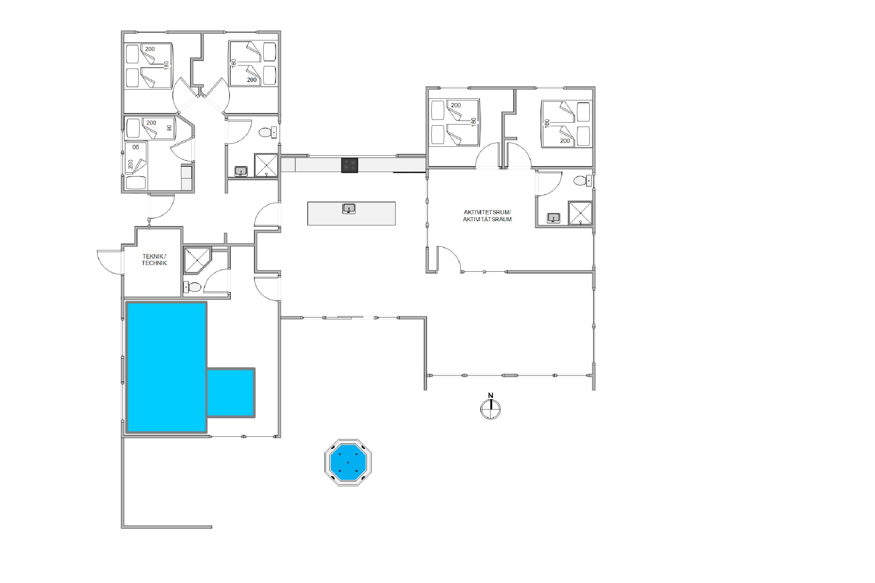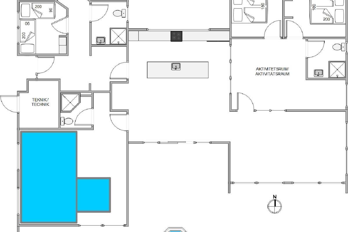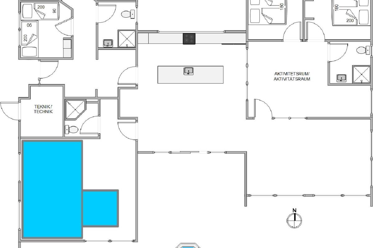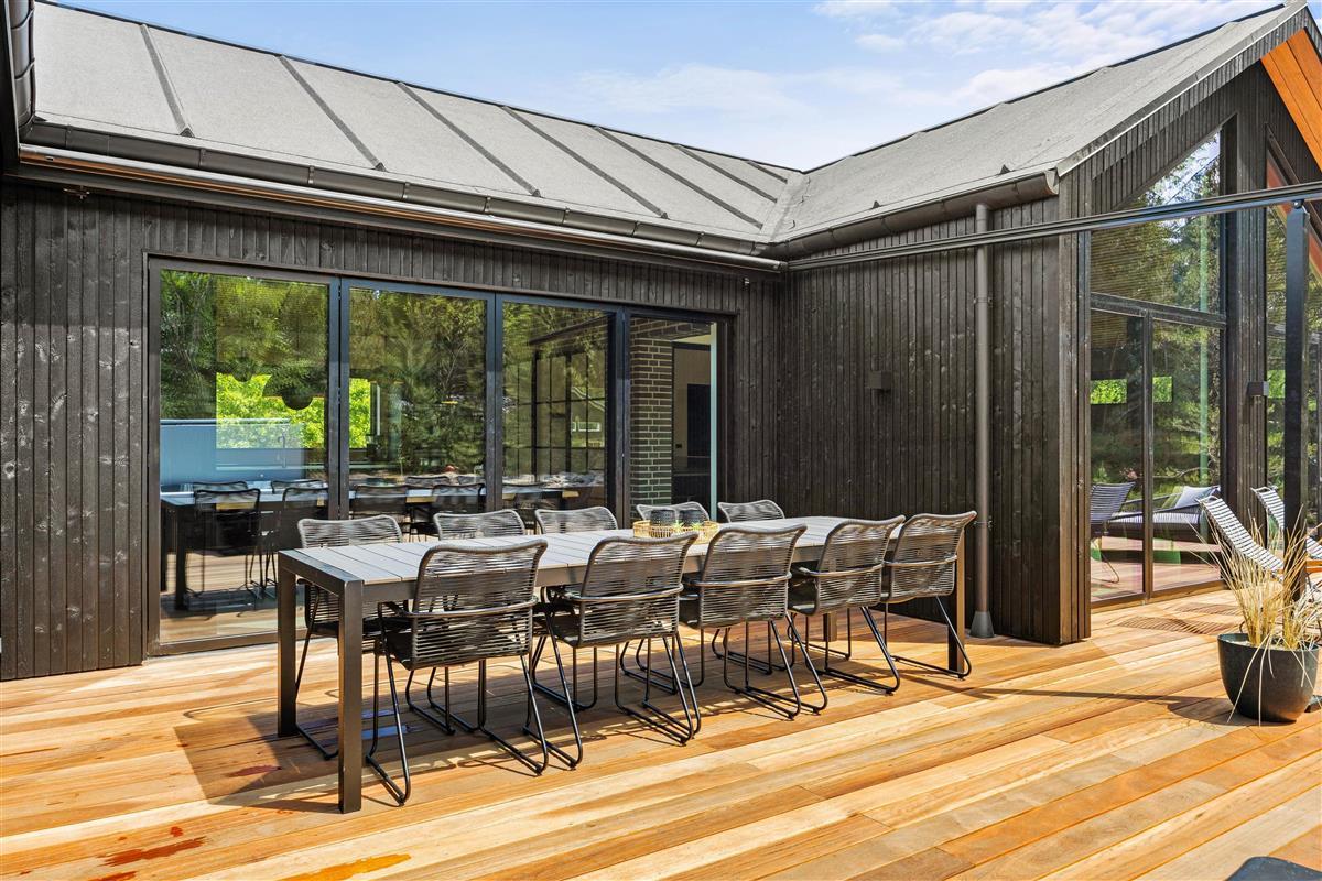 Modern Scandinavian-style accommodation awaits you in this 225-square-metre holiday home at Solsiden 20A in Blåvand. The perfect choice for a holiday with friends or multiple families. Completed in 2023, this holiday home will delight you with its beautiful interior and numerous highlights including an indoor pool, pool table and outdoor hot tub. The holiday home welcomes two dogs and features an electric car charging point.
