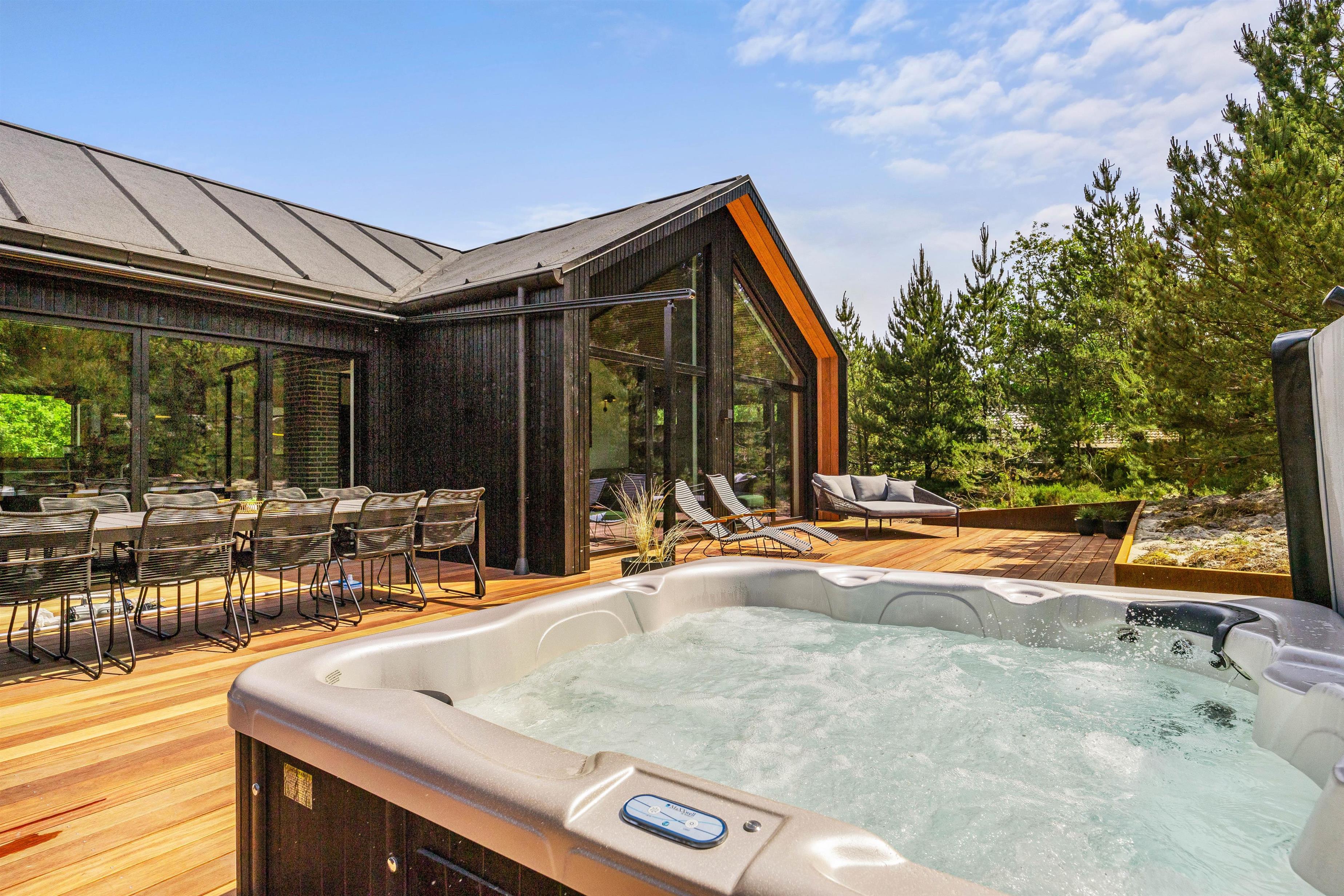 The outdoor area lacks nothing. You'll find a wonderful terrace with sun loungers for relaxing, a covered area with a large dining table perfect for barbecues, all surrounded by the typical natural landscape of the Danish West Coast where children and dogs can play. Not to forget another highlight - the hot tub on the terrace. End your holiday days appropriately by relaxing in the warm, bubbling water under Blåvand's unique starry sky.