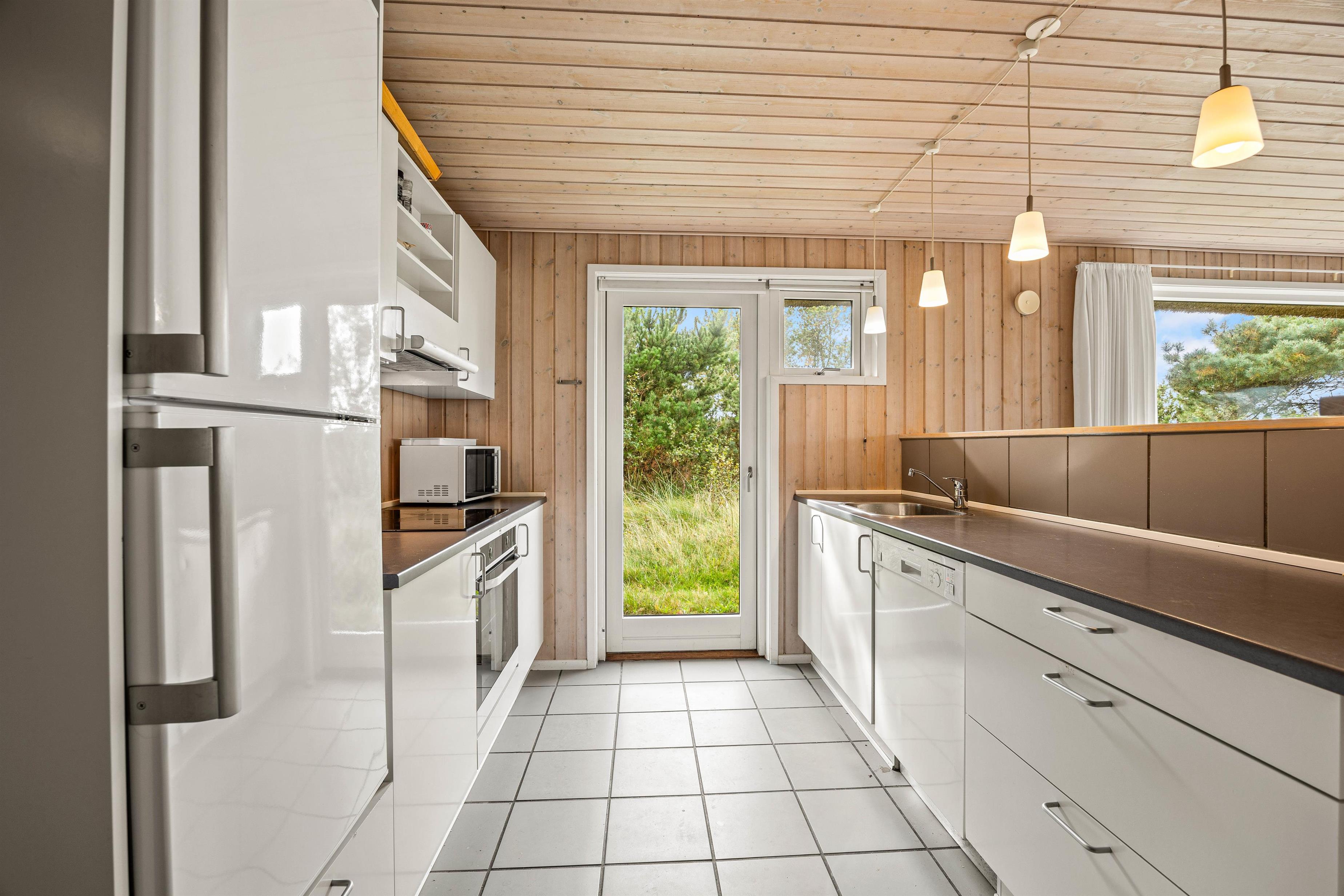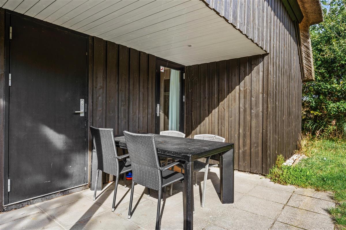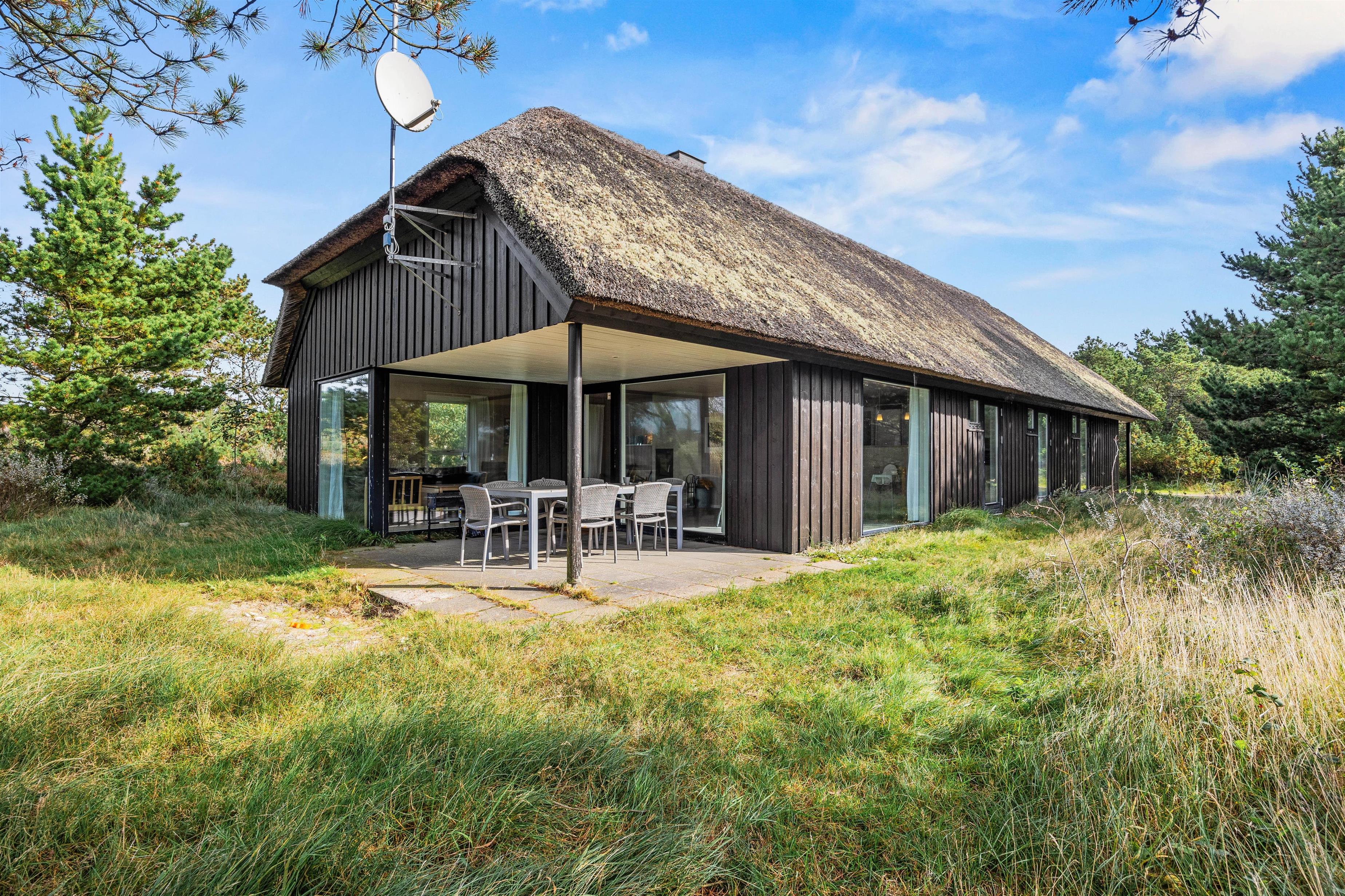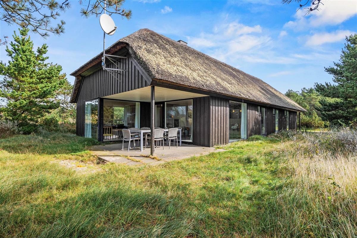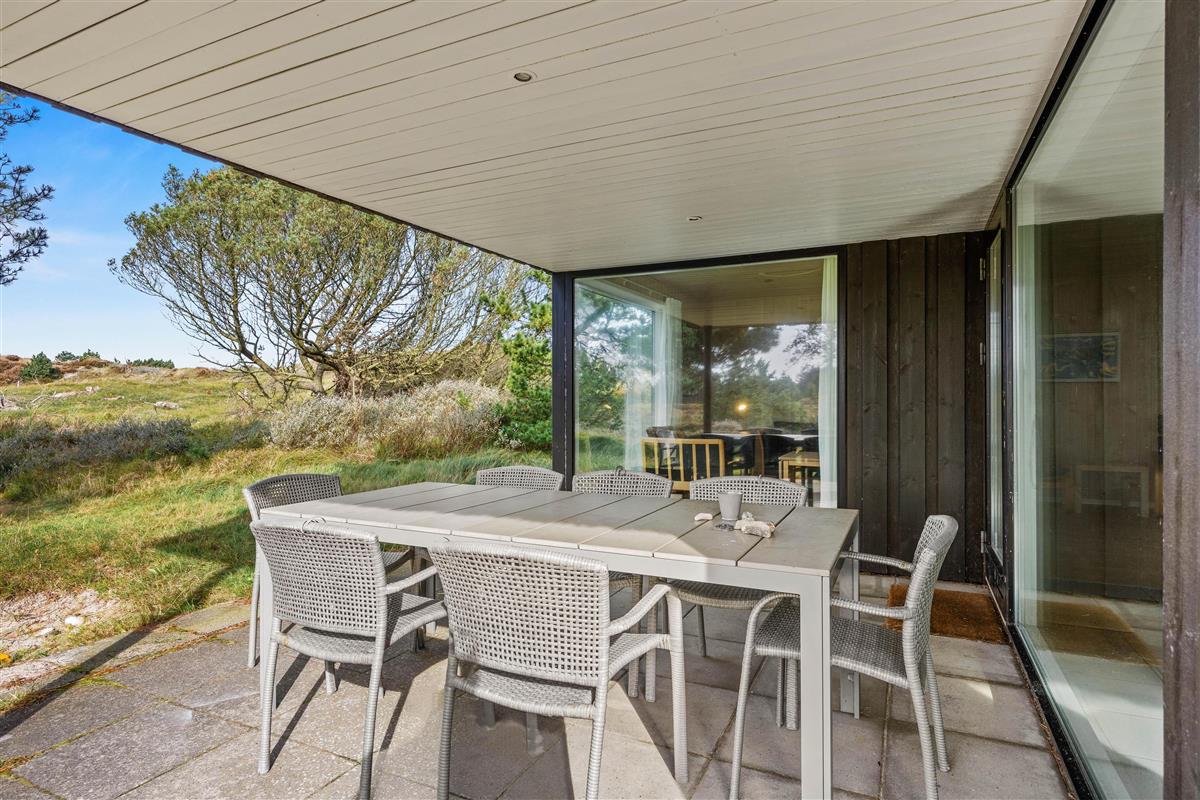 Sowohl die offenen als auch die überdachten Terrassen rund um das Haus auf dem Klitgrund bieten perfekte Orte, um die frische Seeluft tief in die Lungen einzuatmen. Hier könnt ihr Sommerabende mit leckerem Grillgut genießen, denn sowohl ein Holzkohlegrill als auch bequeme Gartenmöbel stehen für euch bereit – eine Terrasse befindet sich sogar direkt vor der Küche/dem Wohnzimmer – und das große Grundstück lädt dazu ein, Zeit im Freien inmitten der herrlichen Natur zu verbringen.
