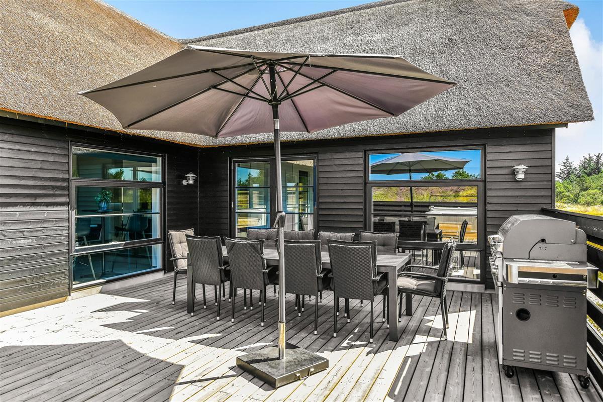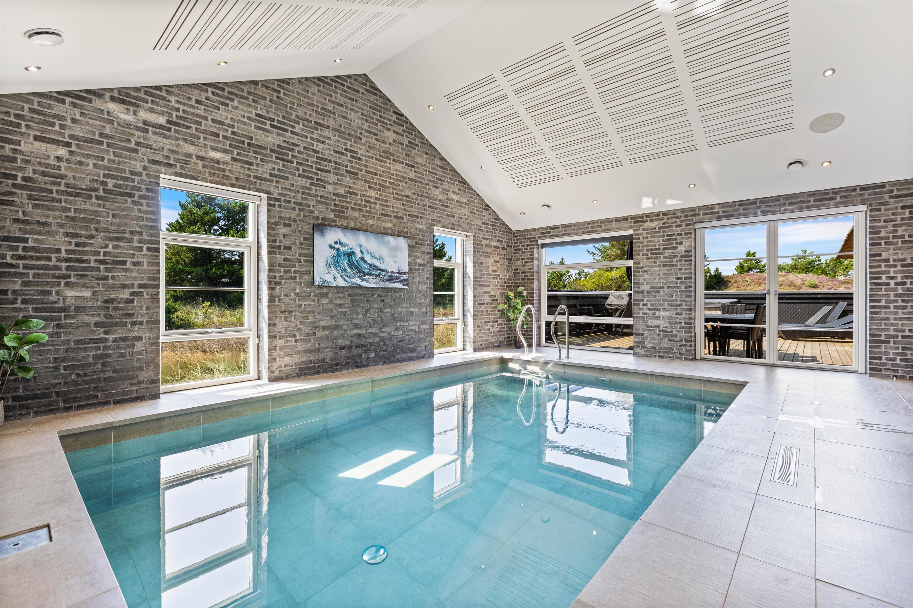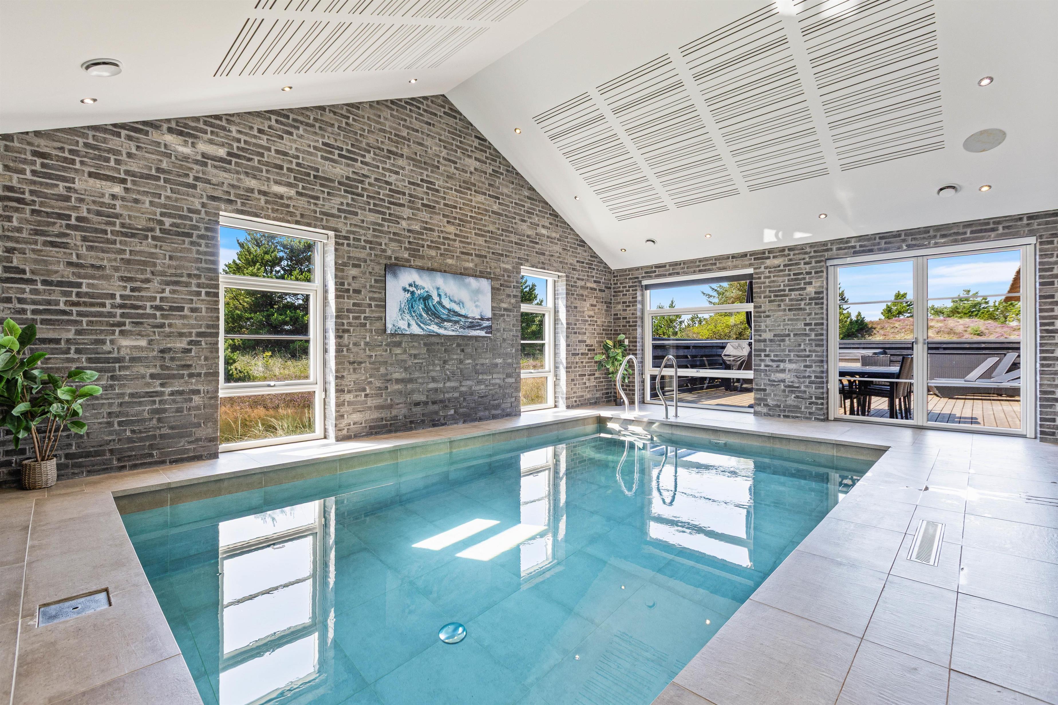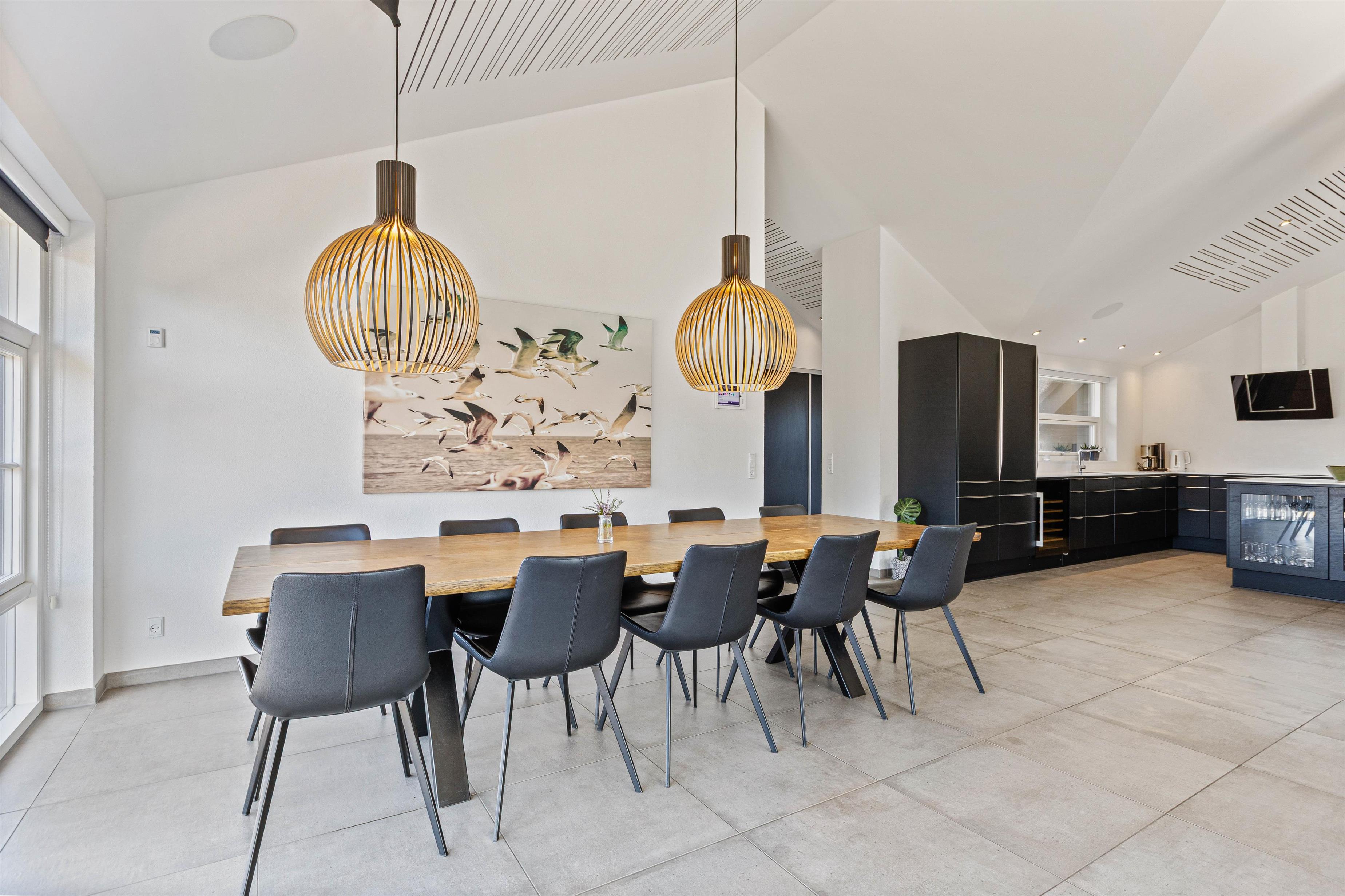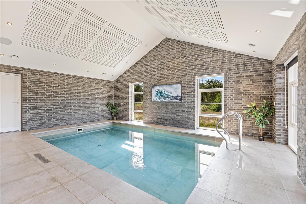 Simply stunning – this spacious holiday home at Vestslugen 8 in Blavand features a 30-square-metre swimming pool, an outdoor hot tub for four people, and a large sauna. Whether travelling with family and children or enjoying time with friends, there's something for everyone. After a refreshing swim in the pool or a relaxing soak in the hot tub, you can gather to cook together in the generous kitchen.