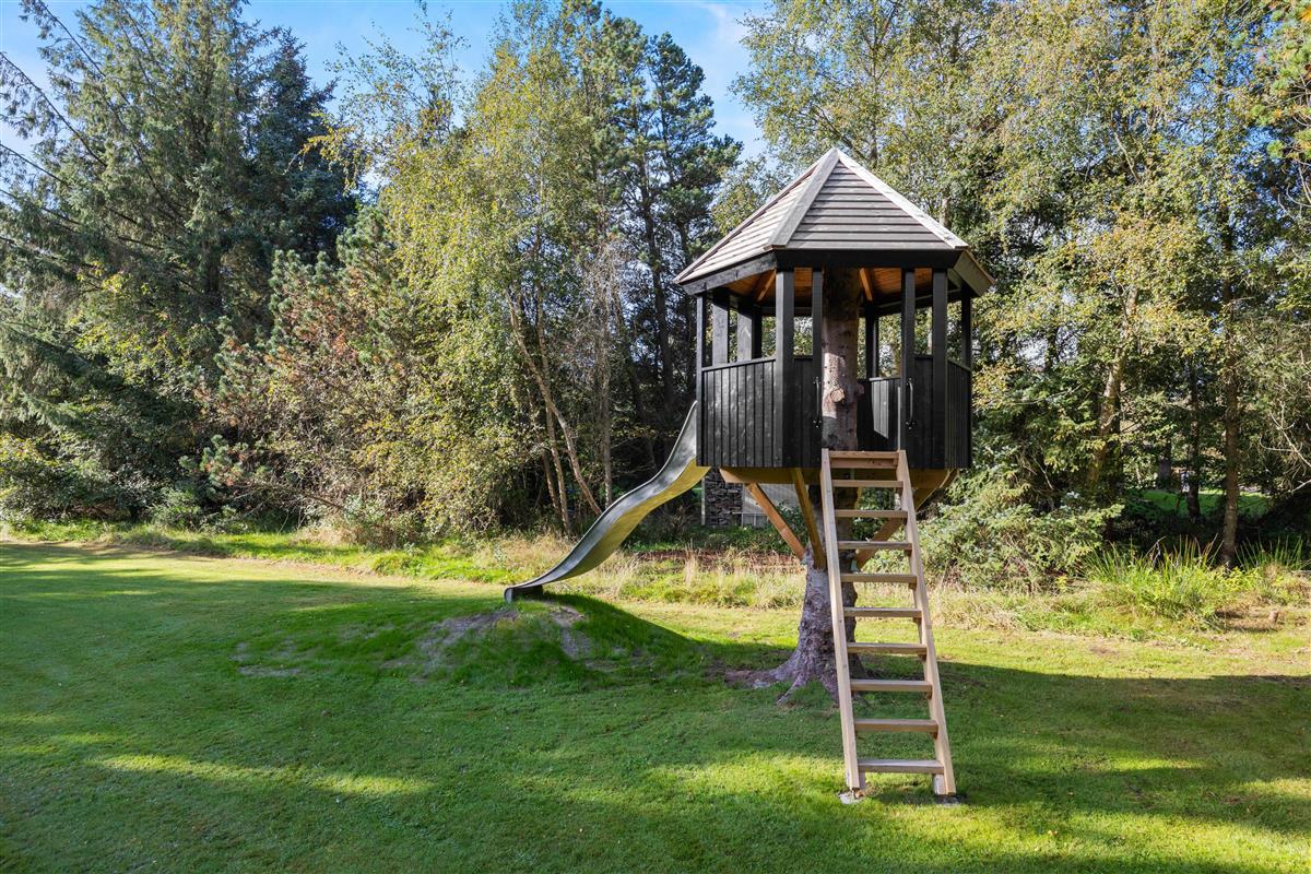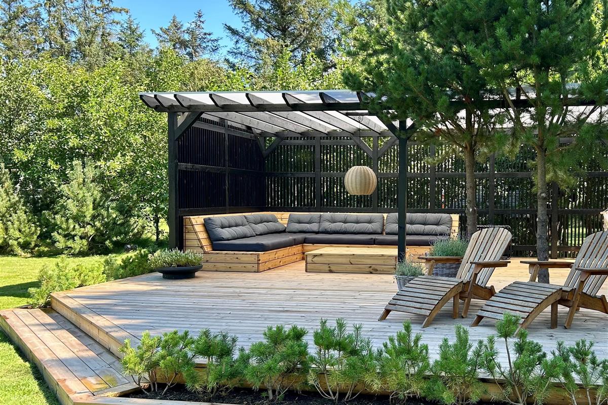 The 2,731 square metre plot features a lovely level lawn in front of the terrace, perfect for children to play ball games or for everyone to enjoy a game of Kubb (Viking chess). The partially covered terrace invites you to put your feet up in the loungers and simply enjoy the glorious sunshine. You can end summer days with a delicious steak from the gas barbecue and a chilled glass of rosé.