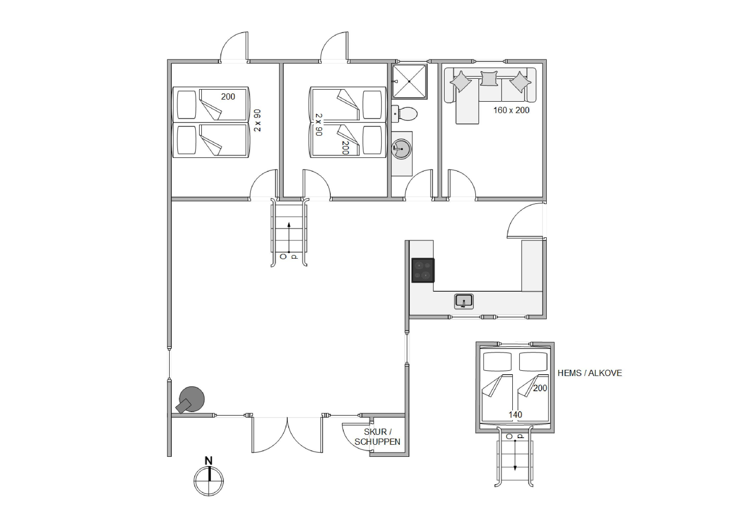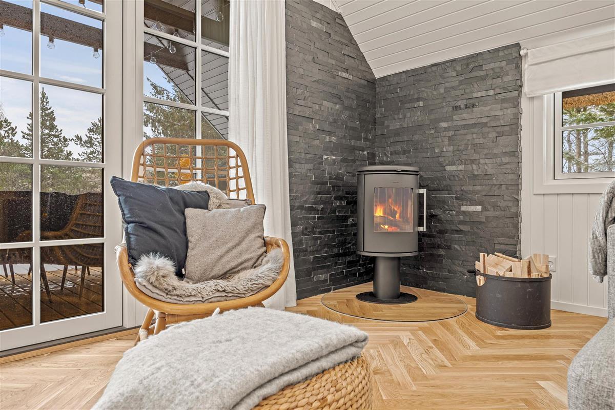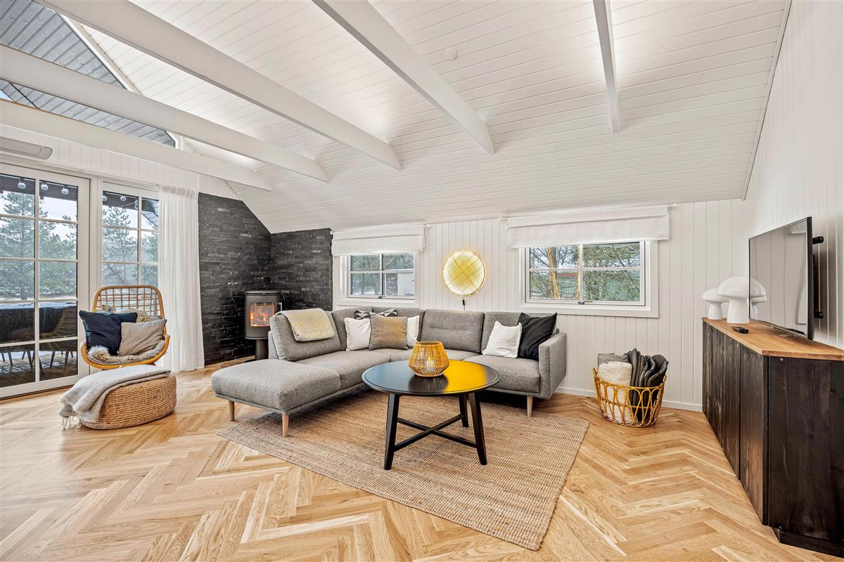 The interior style flows seamlessly throughout the holiday home. The two bedrooms feature comfortable rattan double beds for a great night's sleep, with two additional sleeping spaces on the mezzanine level. The bathroom, with underfloor heating, has also been renovated with high-quality, stylish elements. It's a space you'll enjoy spending time in. Top tip: For heating, we recommend using the cost and energy-efficient heat pump.