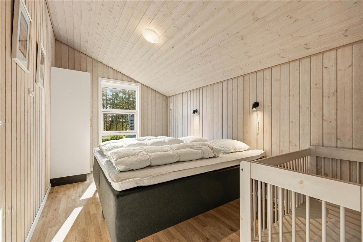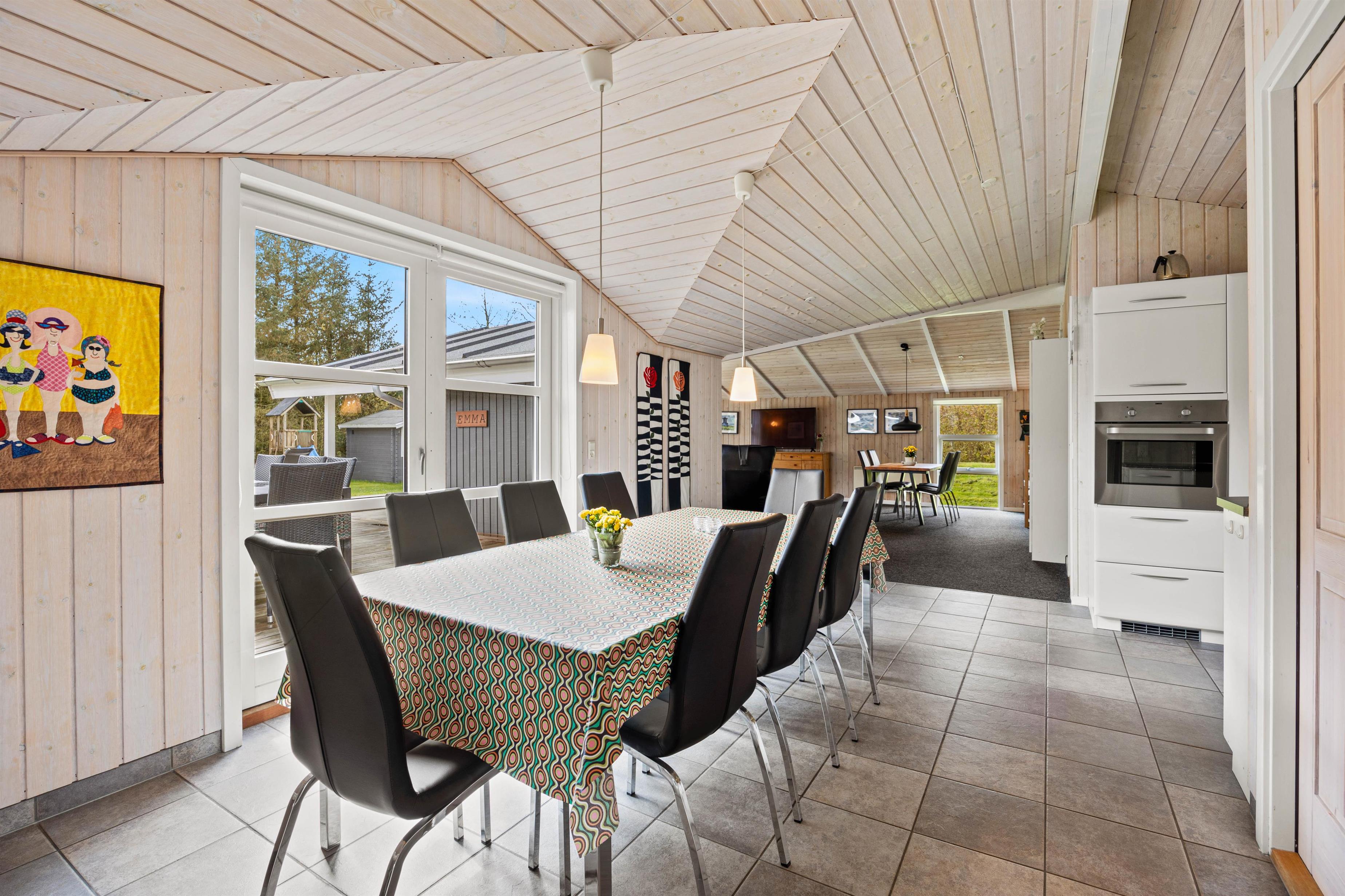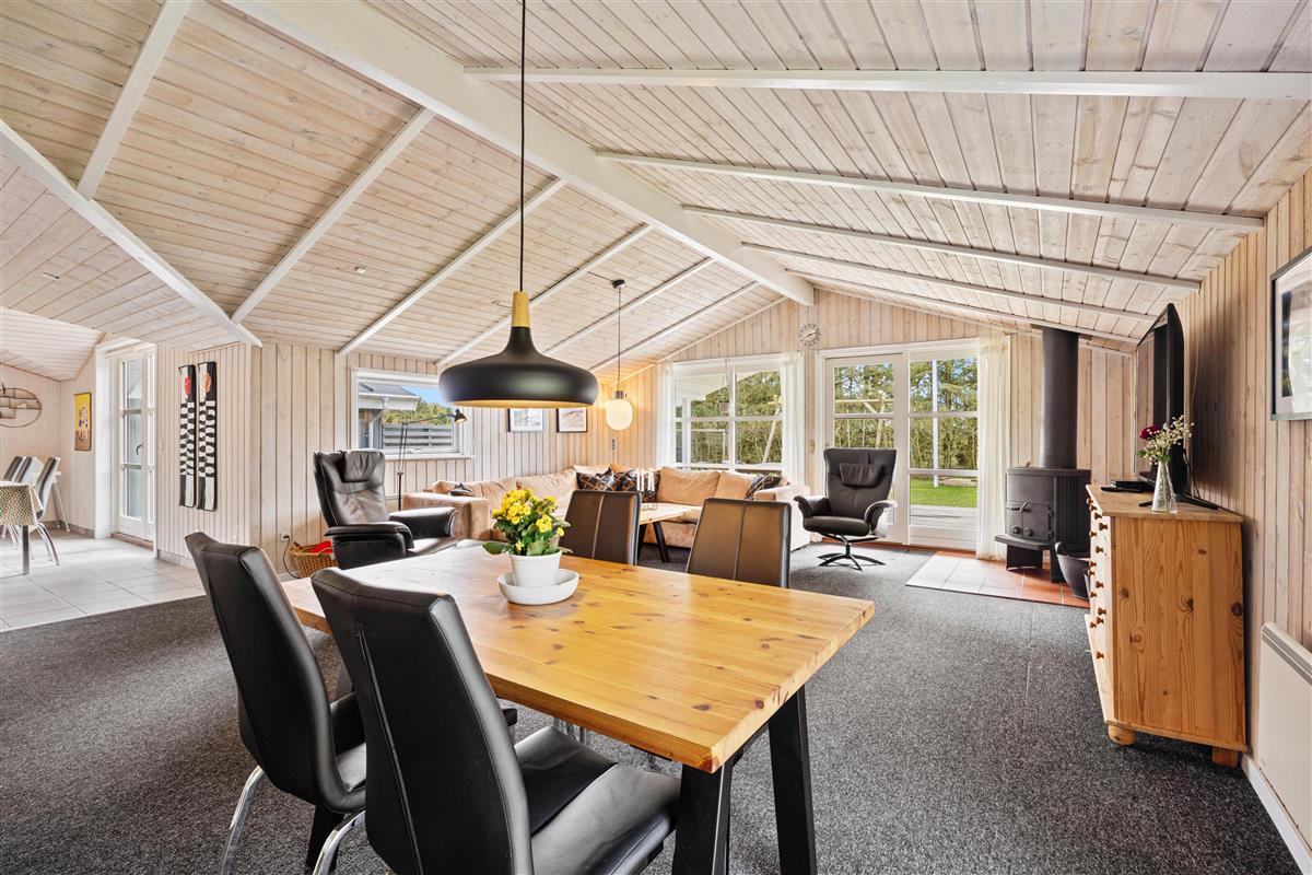 Enter the holiday home through the spacious entrance area, offering plenty of room for your coats and shoes, as well as housing the holiday home's washing machine. Moving forward, you'll find the bright and inviting living area, featuring numerous windows and cosy furnishings in typical Danish style.