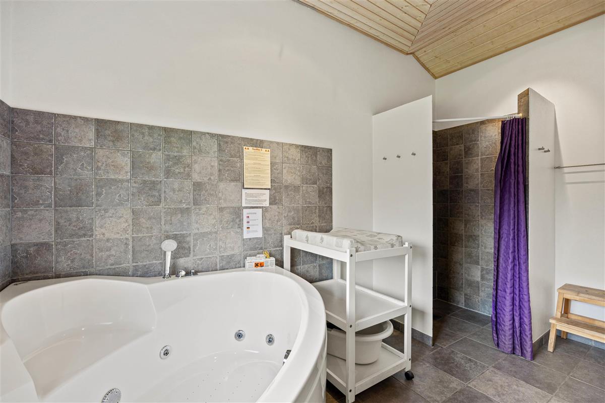 The daylight bathroom features underfloor heating, a shower, a practical changing table, and a whirlpool for relaxation. Enjoy long soaks in the hot water after an active day at the North Sea. An additional guest WC with underfloor heating ensures extra comfort during your stay.