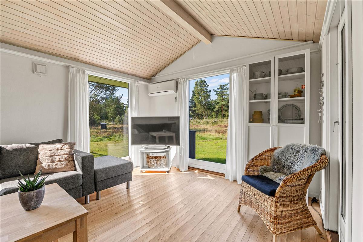 The holiday home enjoys an exceptionally peaceful location, close to Kallesmærsk Hede - a 11,636-hectare nature reserve that, while partially used as a military training area, is primarily known for its beautiful heathland, dunes and small woodlands, perfect for long walks.