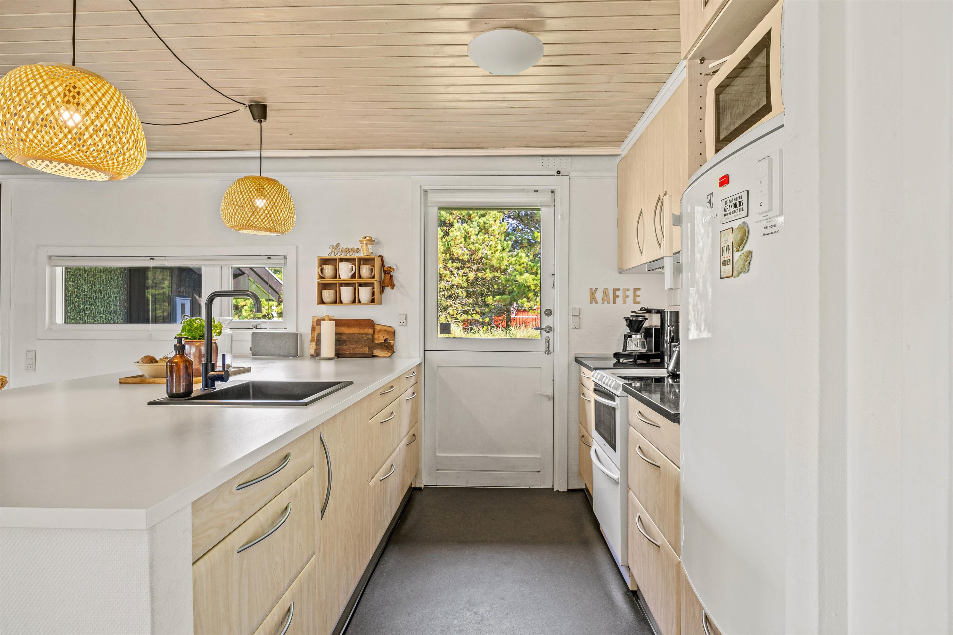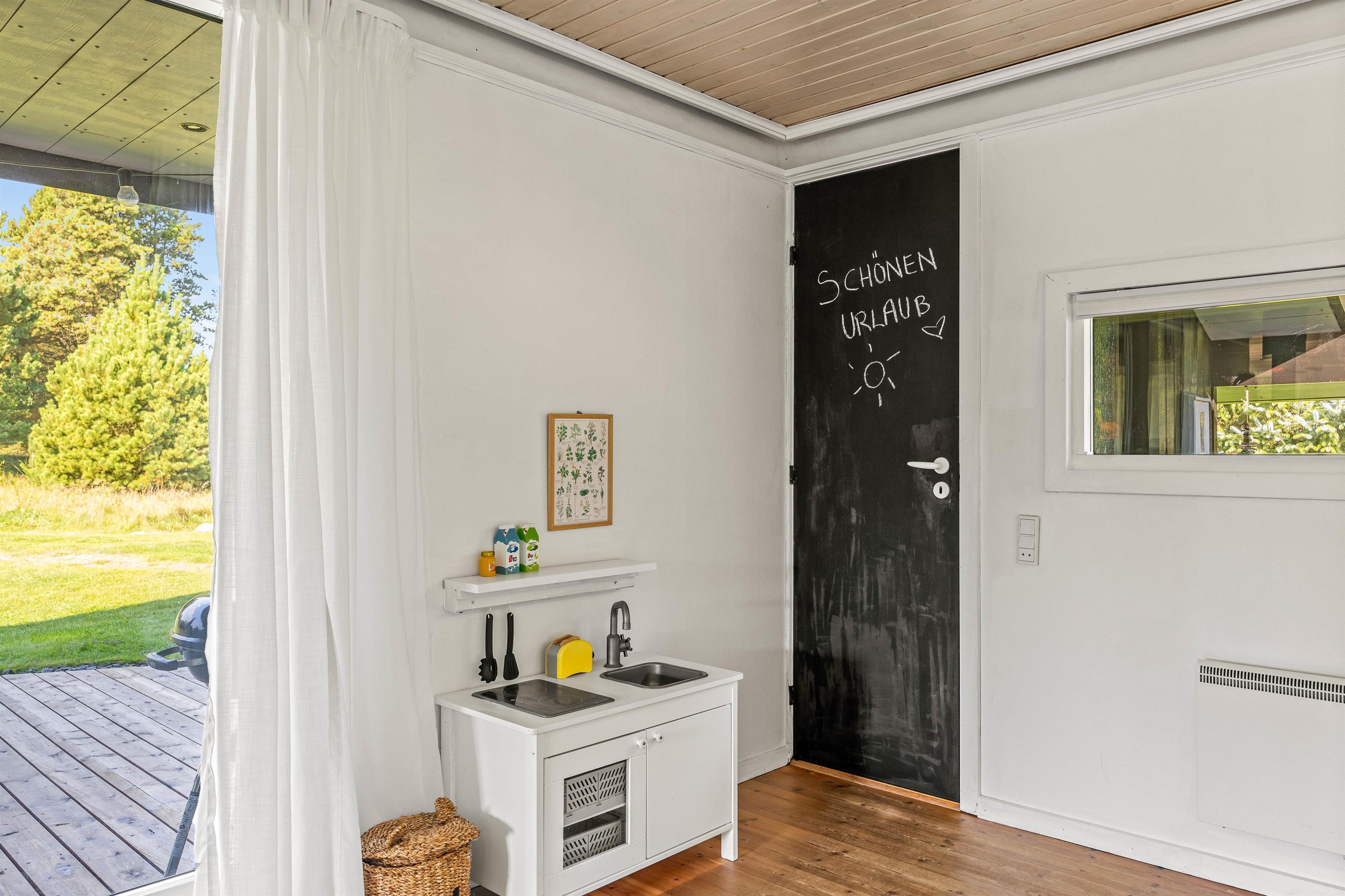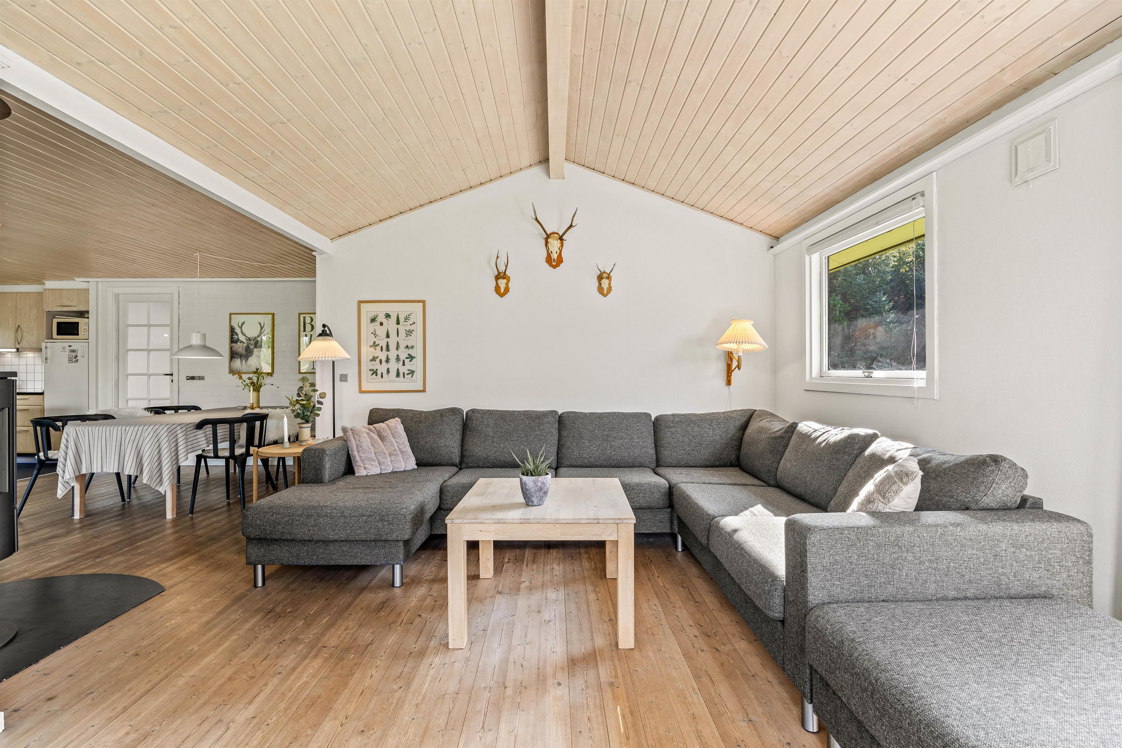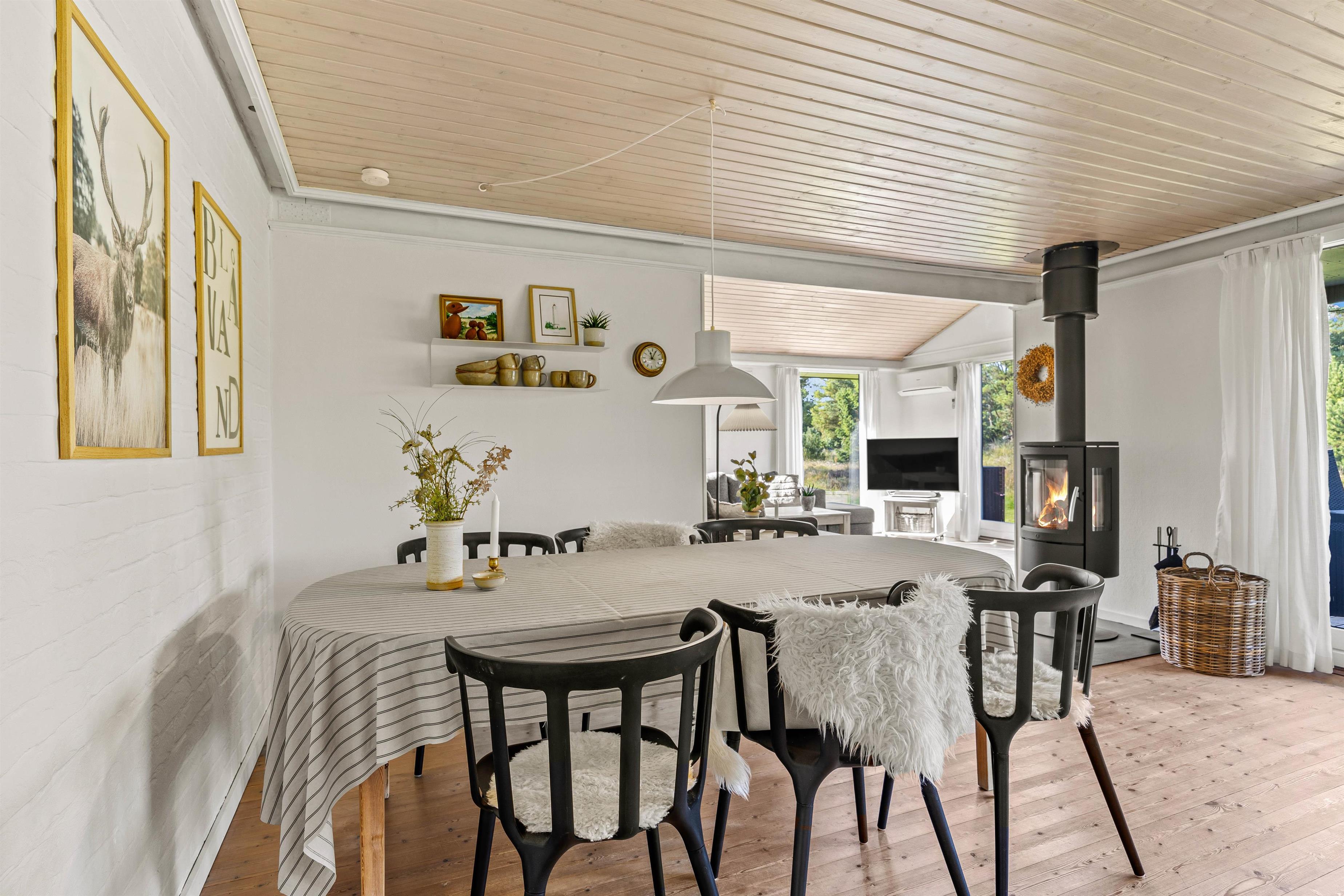 The sheltered natural grounds allow you to fully enjoy the seclusion and tranquillity. The holiday home welcomes you with typical Danish charm, immediately making you feel at home and ready to unwind. You can enjoy family time in the open-plan living area with kitchen and dining space. Whether dreaming away the day on the sofa while the fire crackles in the wood-burner, preparing and enjoying a delicious dinner together, or having a sociable family games evening - these are just some ways to spend your holiday time here.