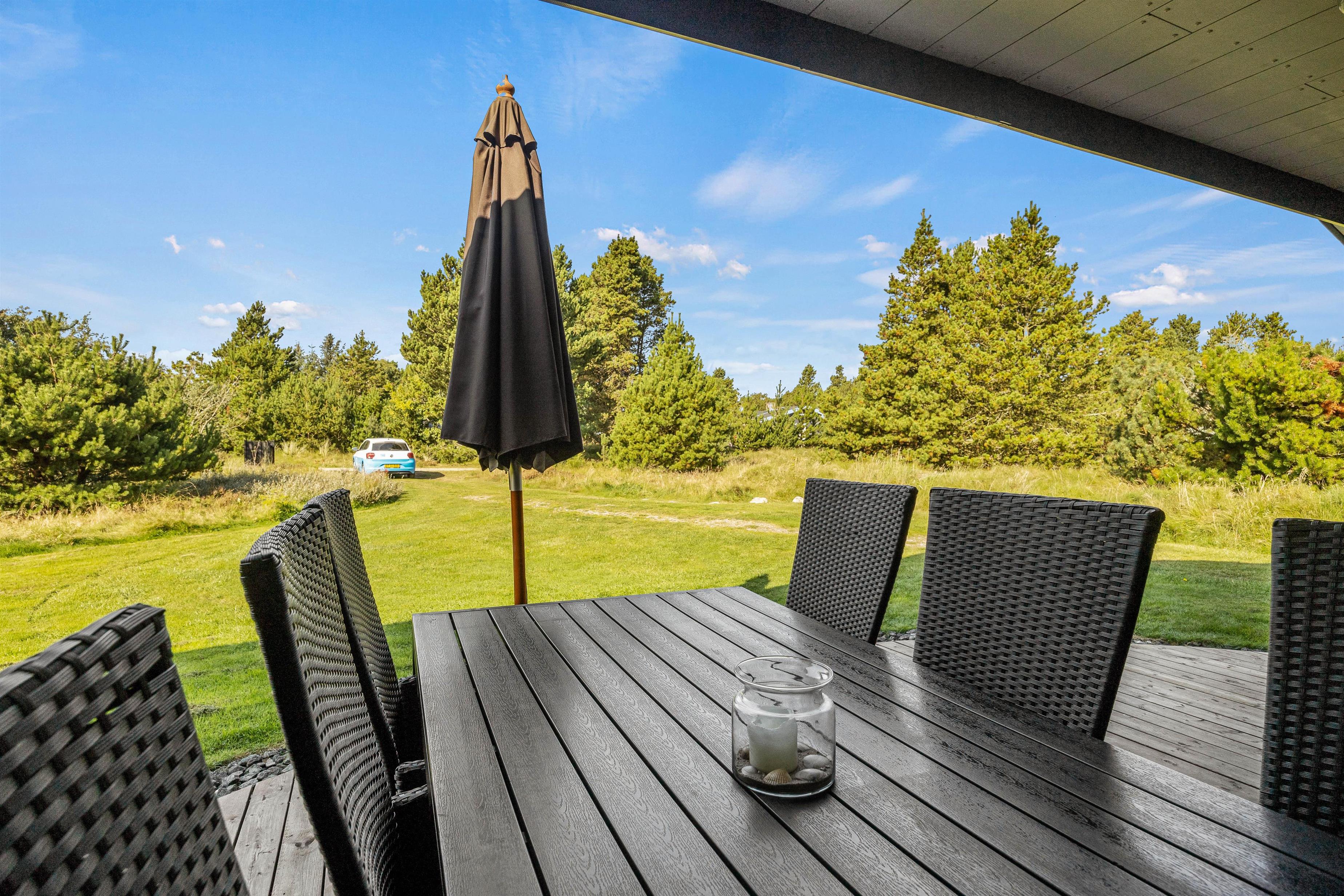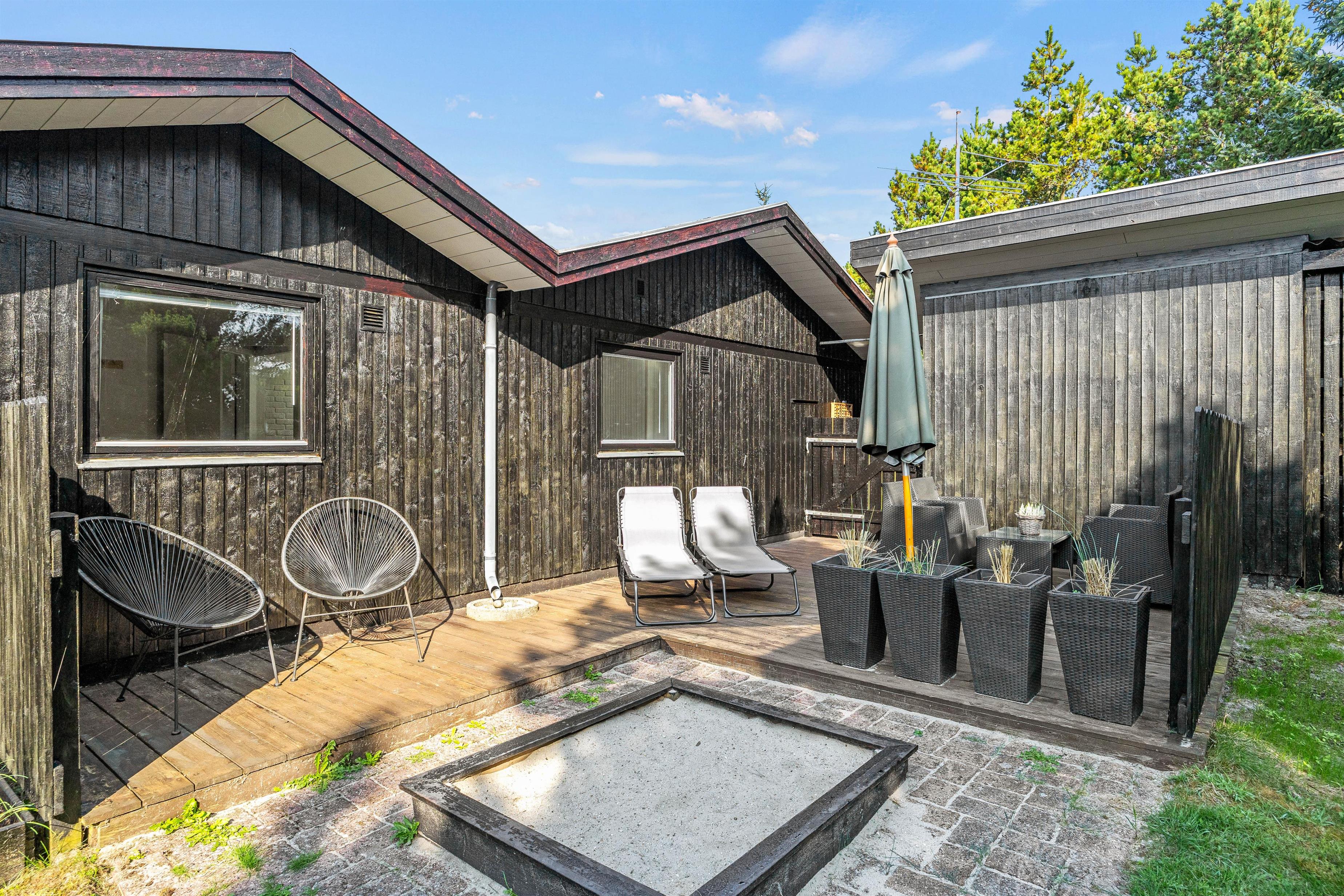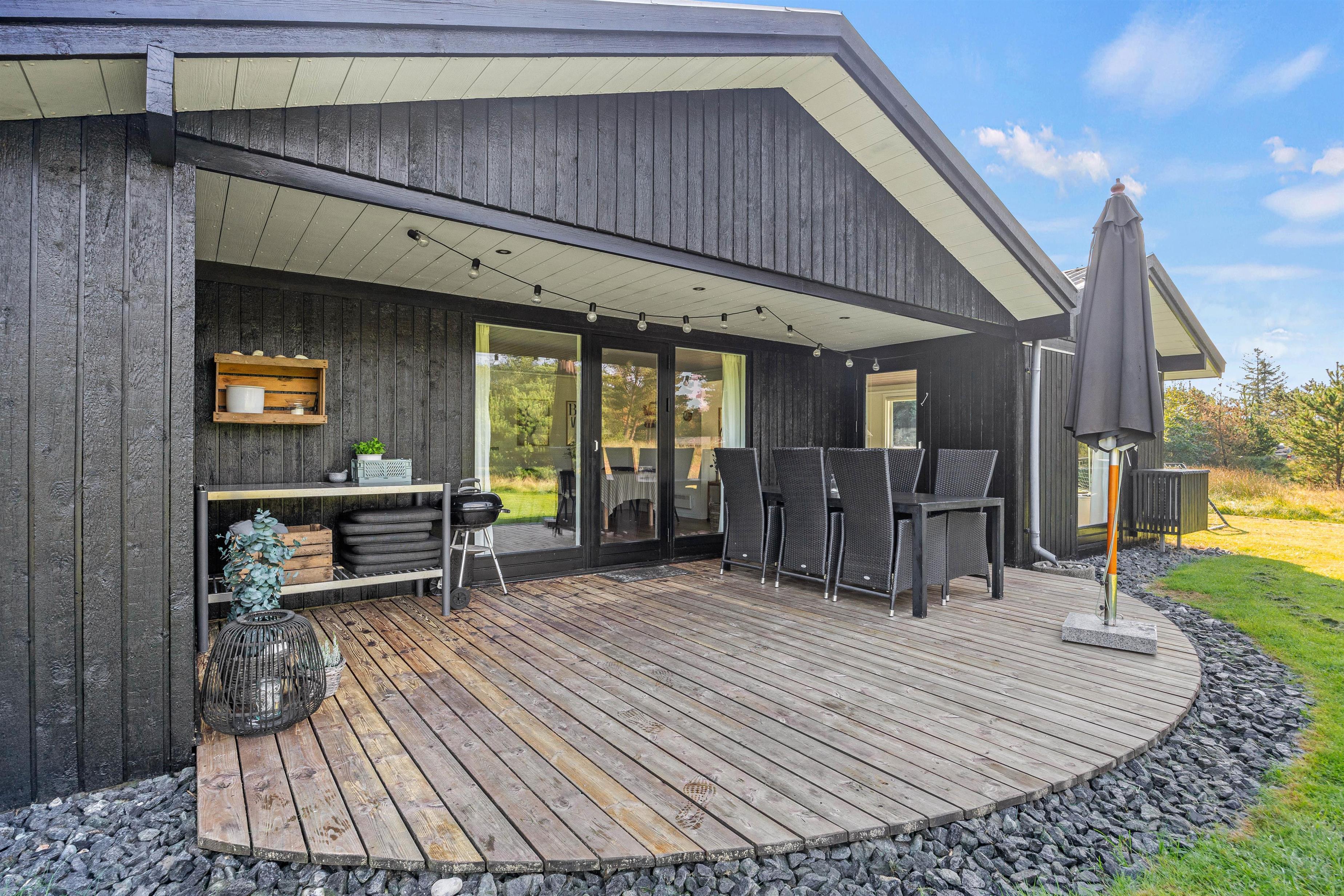 Outside, you can fully enjoy the characteristic nature of the Danish West Coast. Children will love the sandpit and swings, while you can put your feet up in the loungers on the terrace. Part of the terrace is covered, providing shelter whether from intense sunshine or passing showers. A barbecue is also provided.