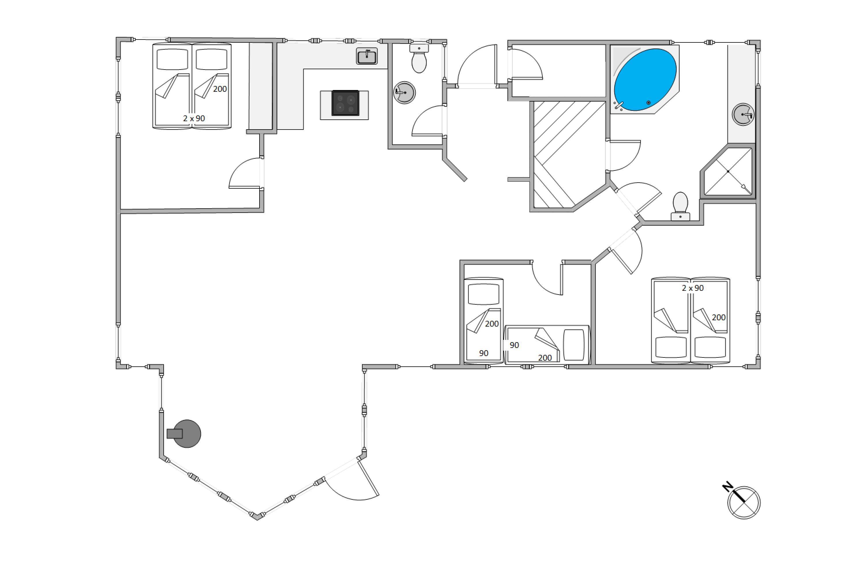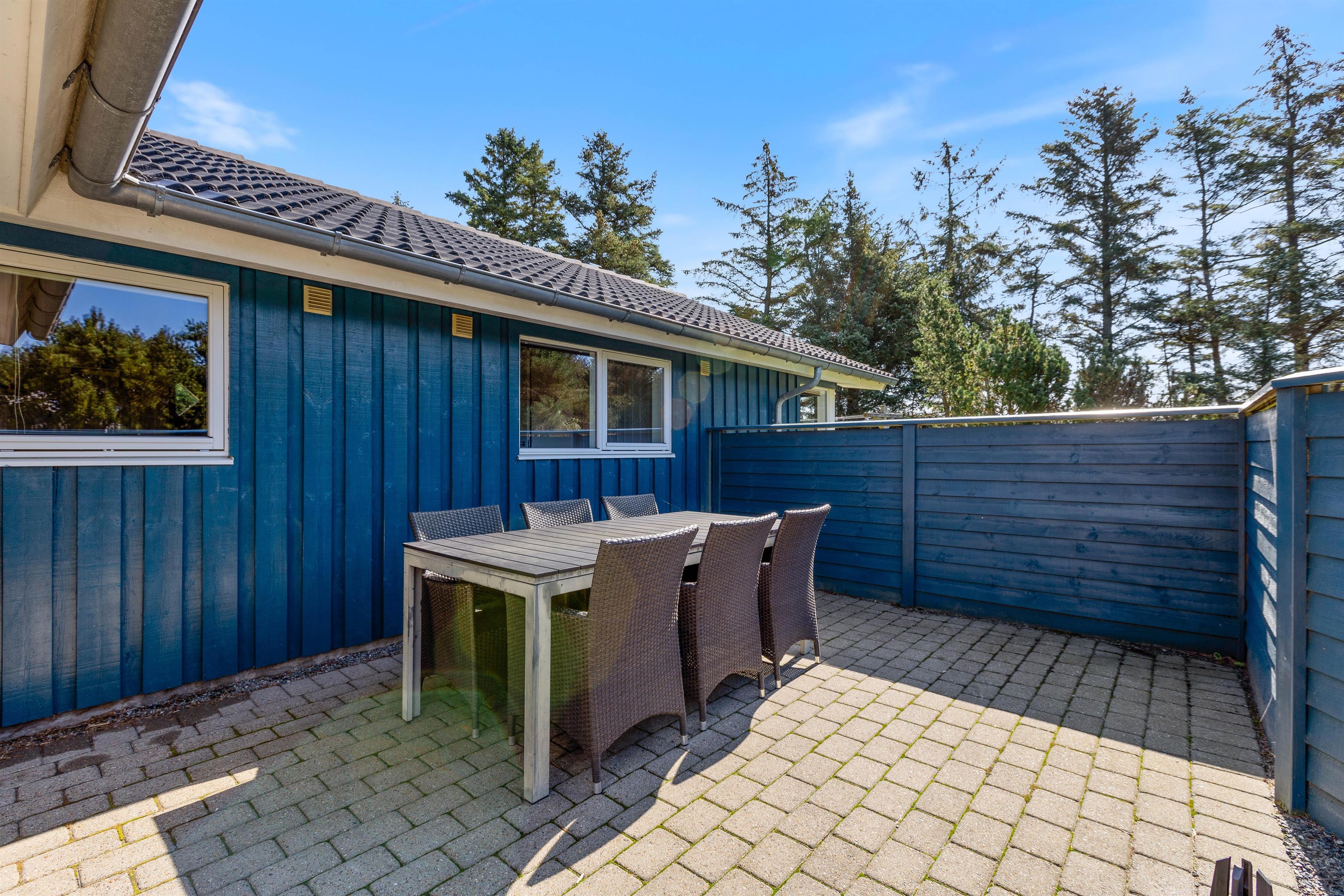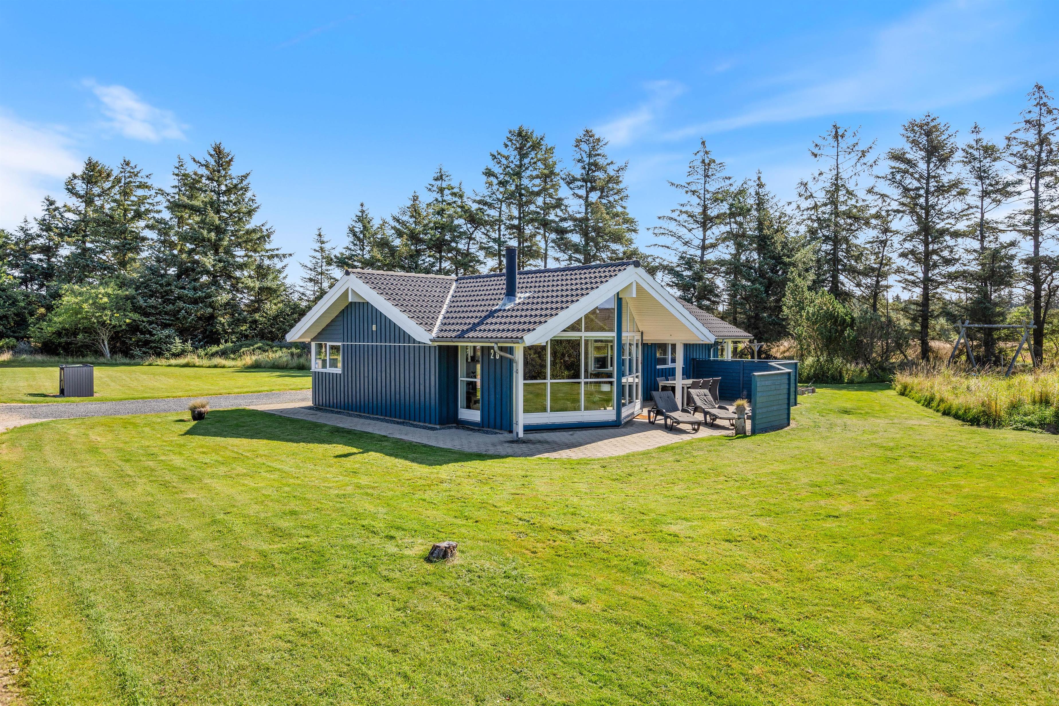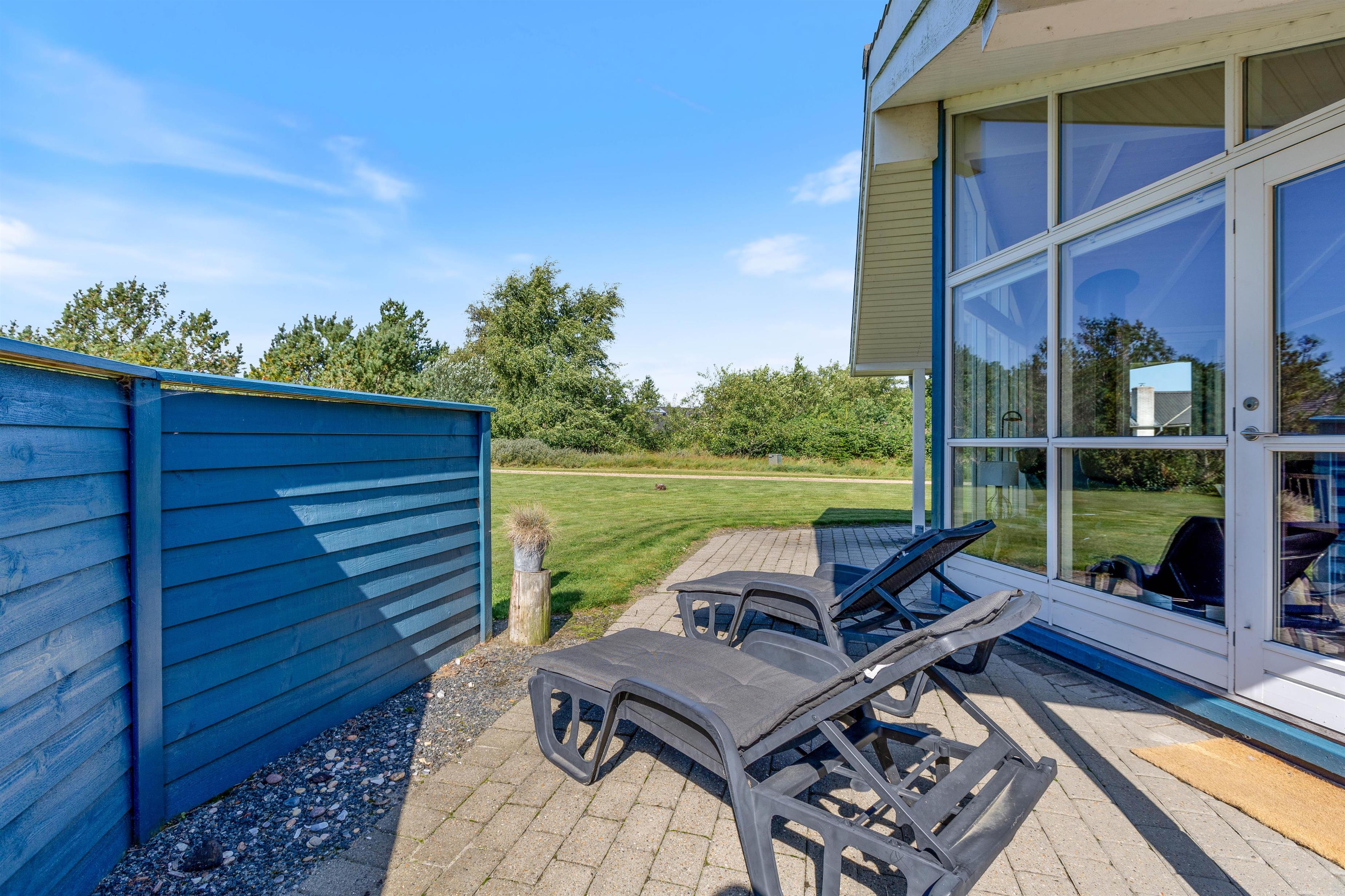 The holiday home sits on a beautiful natural plot, nearly at the end of a quiet cul-de-sac. On the large, sheltered terrace, you can relax on a sun lounger with a good book, fully embracing your holiday.