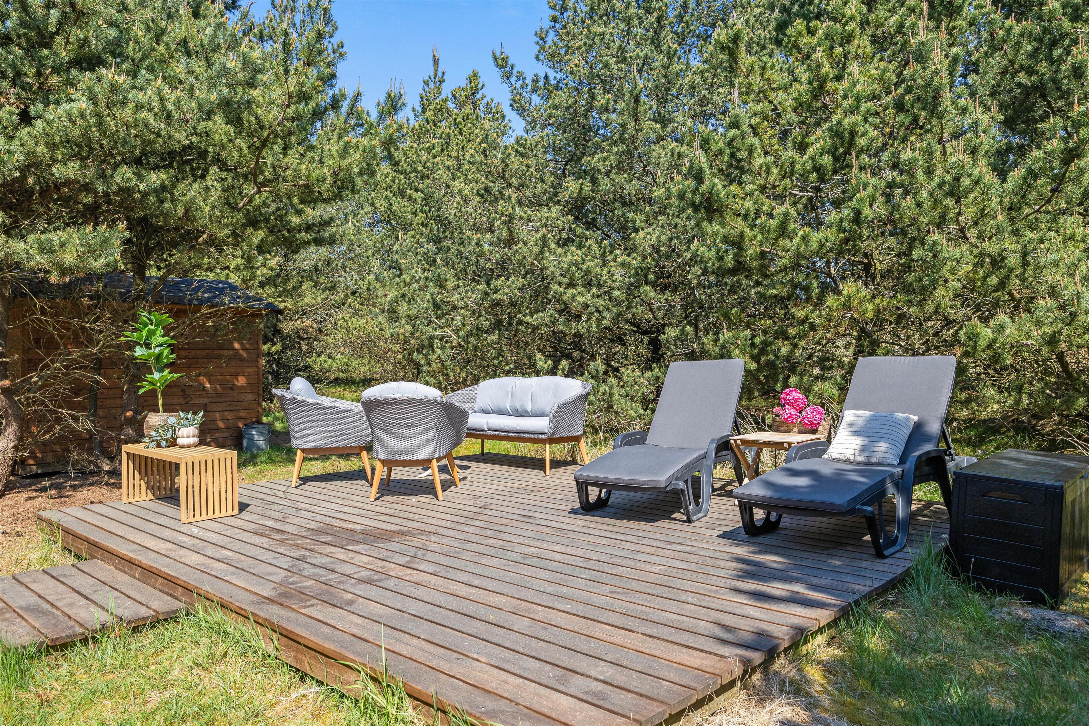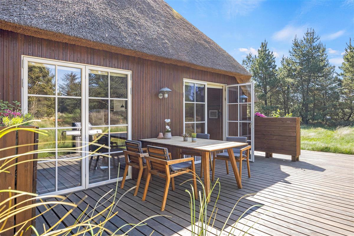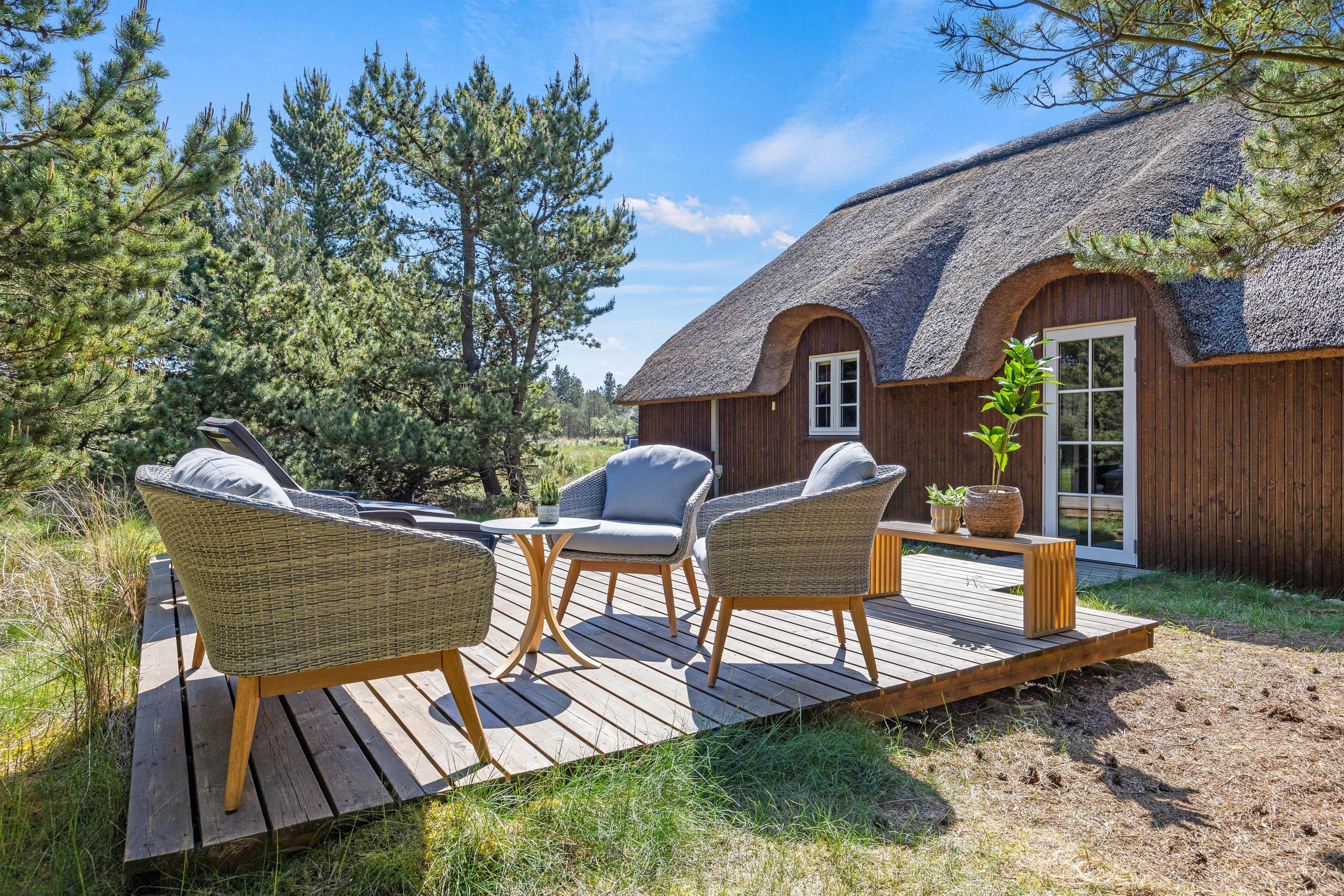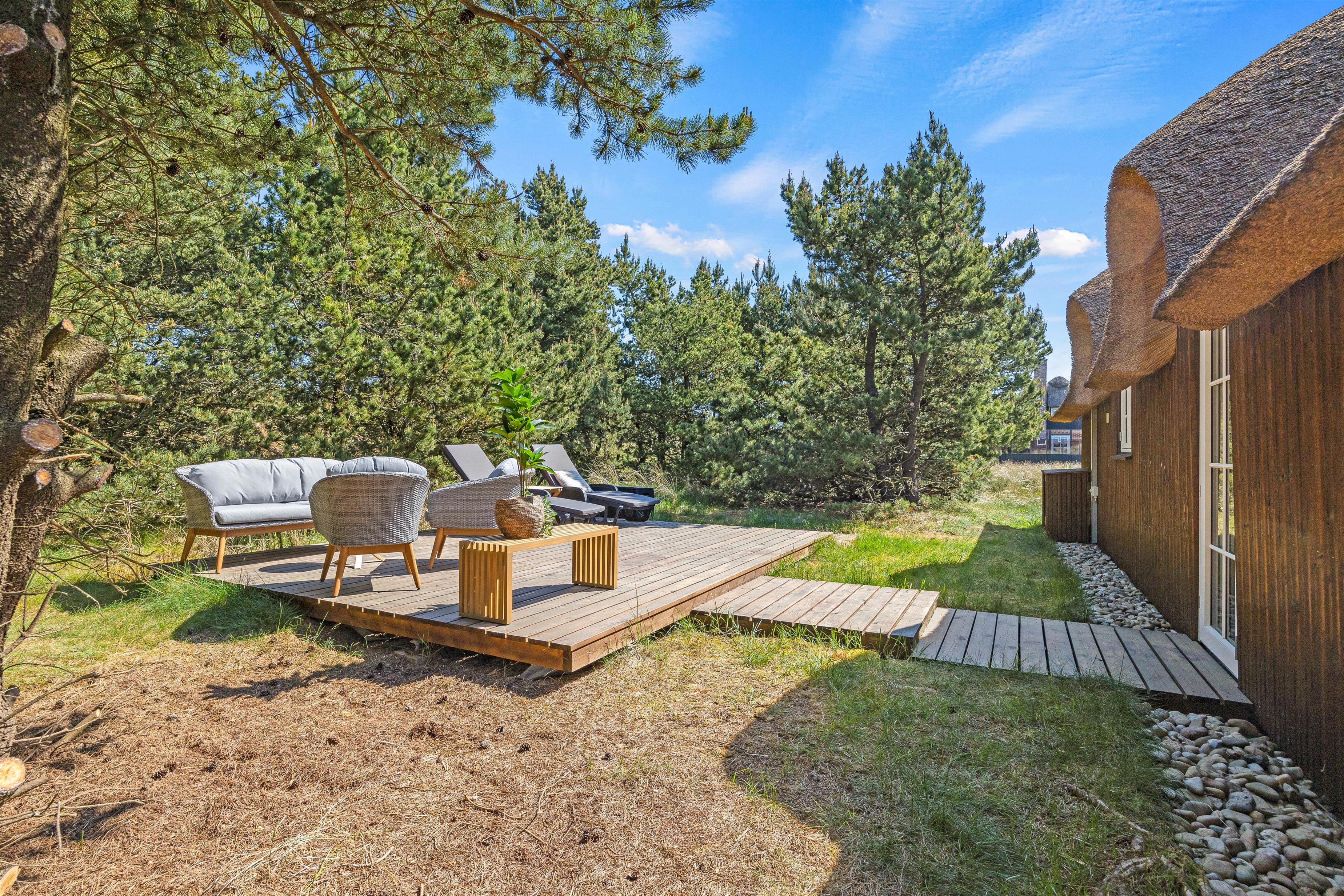 The beautiful natural plot borders extensive dunes and woodland, perfect for walking and offering magnificent views over Blåvand's holiday region from the high dunes.