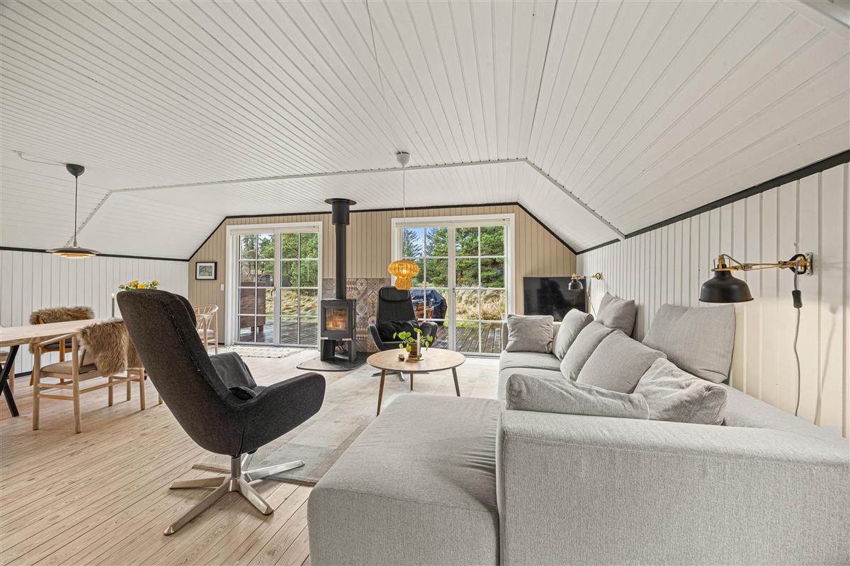 Danish comfort with wooden features, clean lines and a wood-burning stove