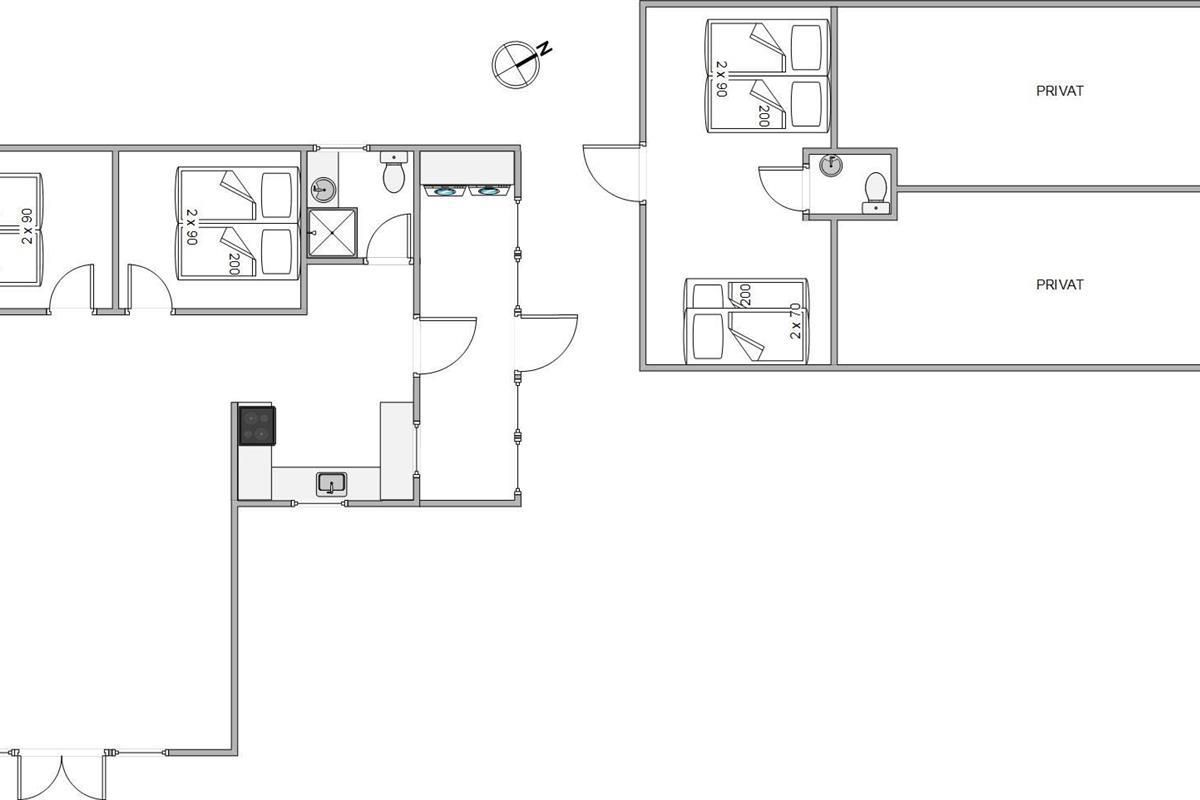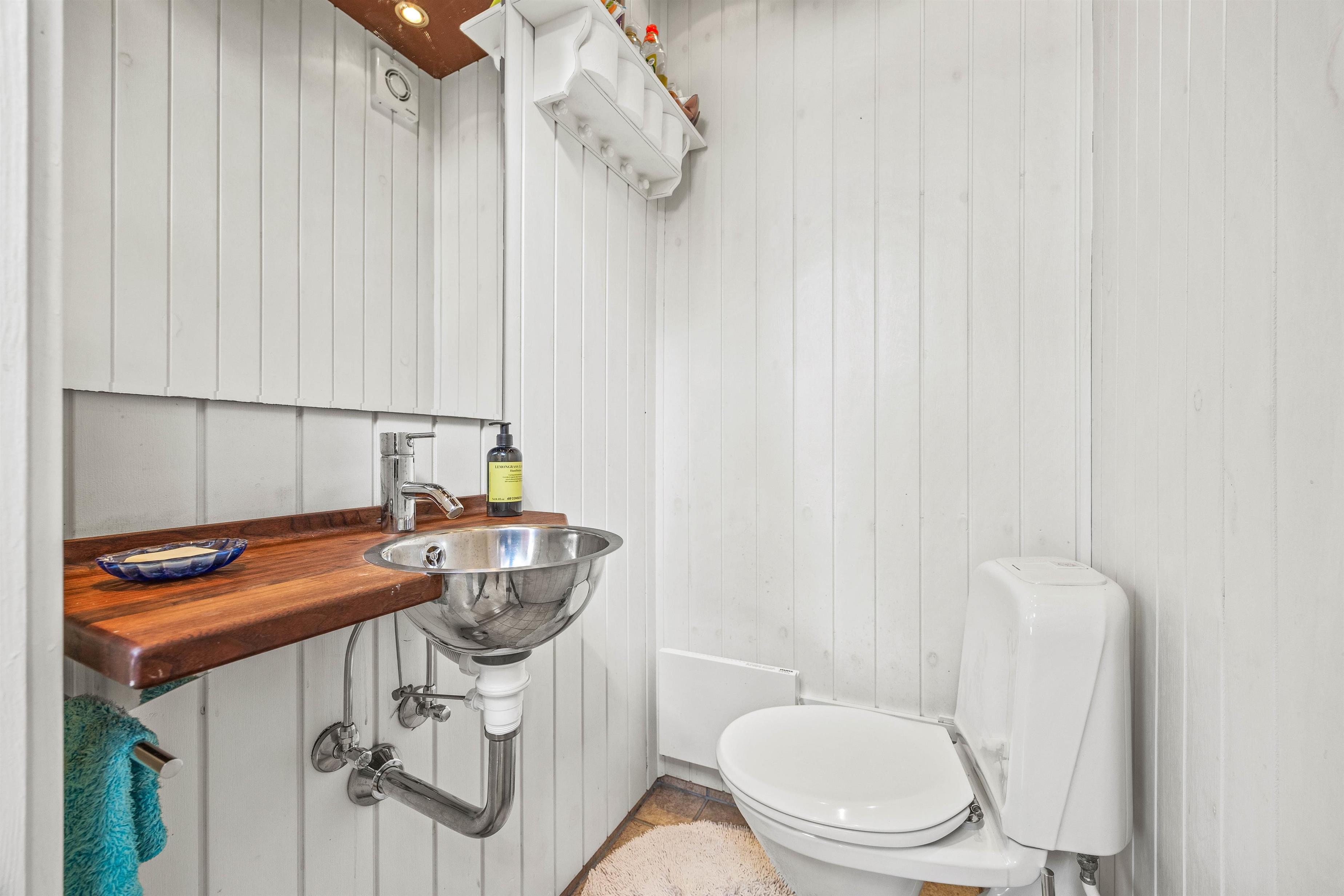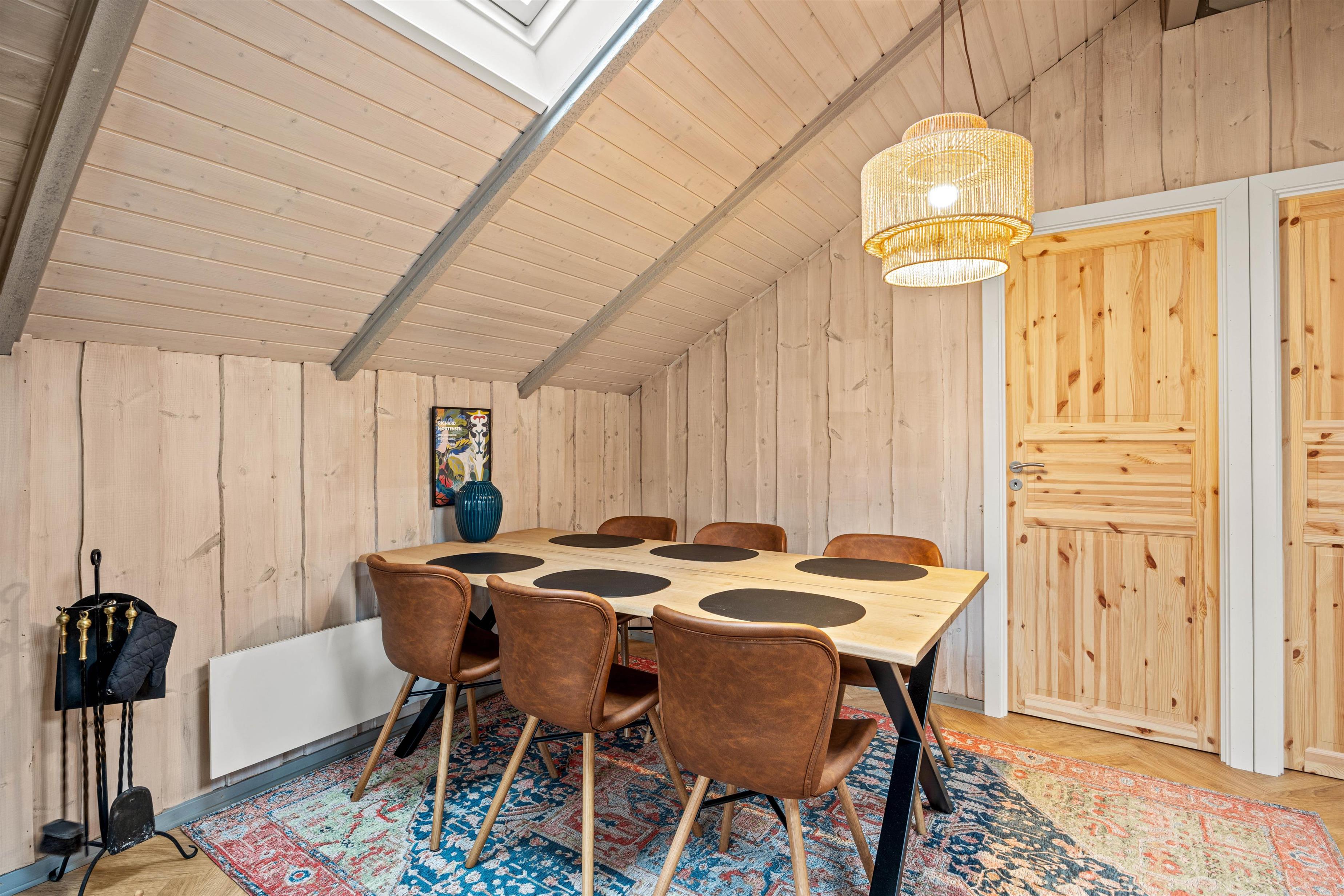 The outdoor area features multiple sun terraces, allowing you to follow the sun and enjoy meals under the stars - morning, noon and evening. The terraces are equipped with parasols, tables and benches, and there's also a pleasant outdoor kitchen and charcoal barbecue available for guests' use.