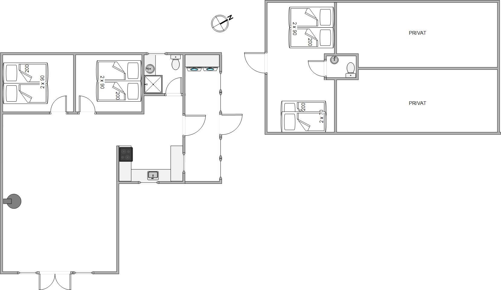 The holiday home also includes a recent extension with an 18-square-metre room that accommodates two adults and two children - perfect for a group of children or teenagers on holiday. The extension has its own toilet and a desk space suitable for creative or professional activities while the rest of the family enjoys the main house.