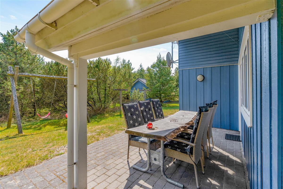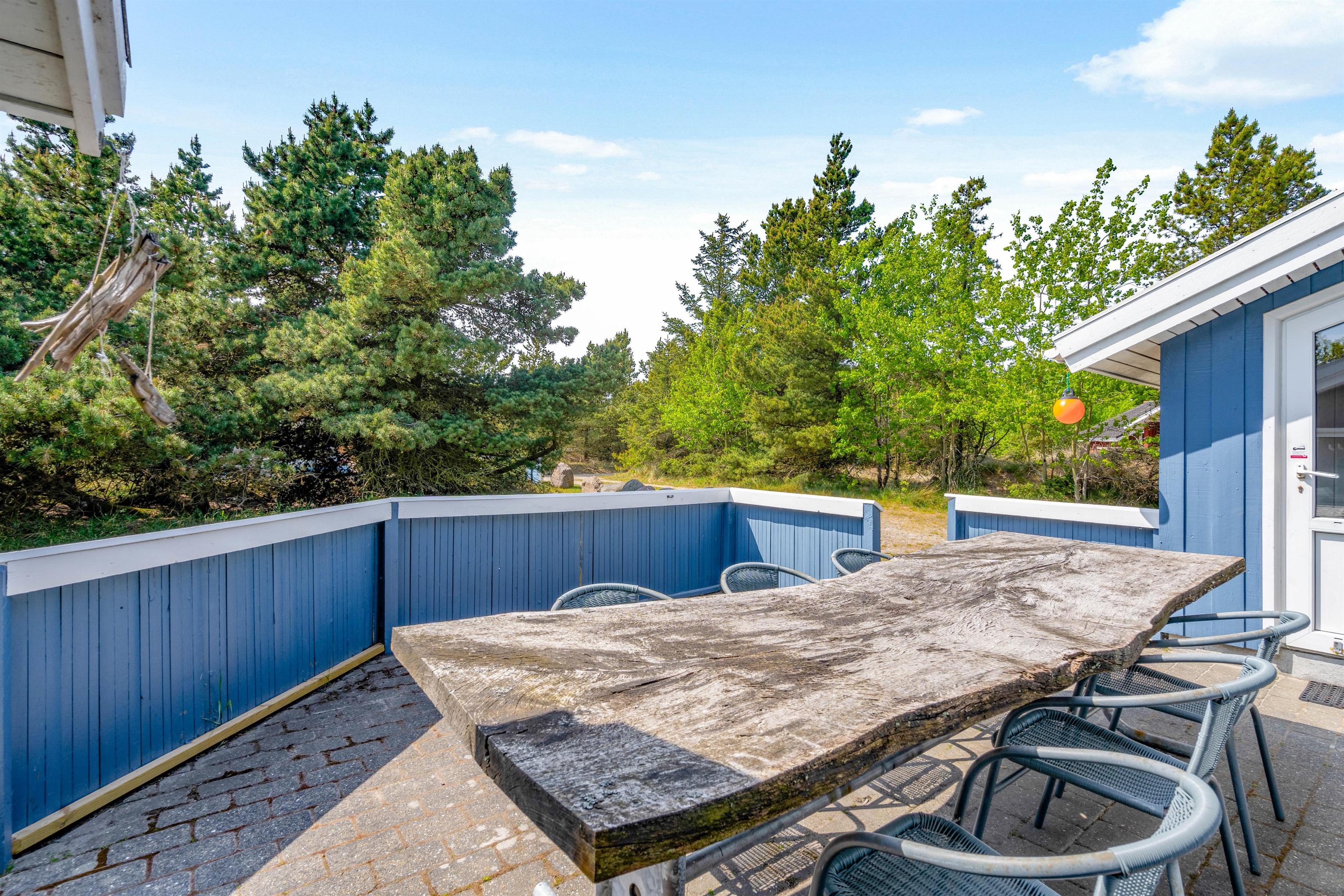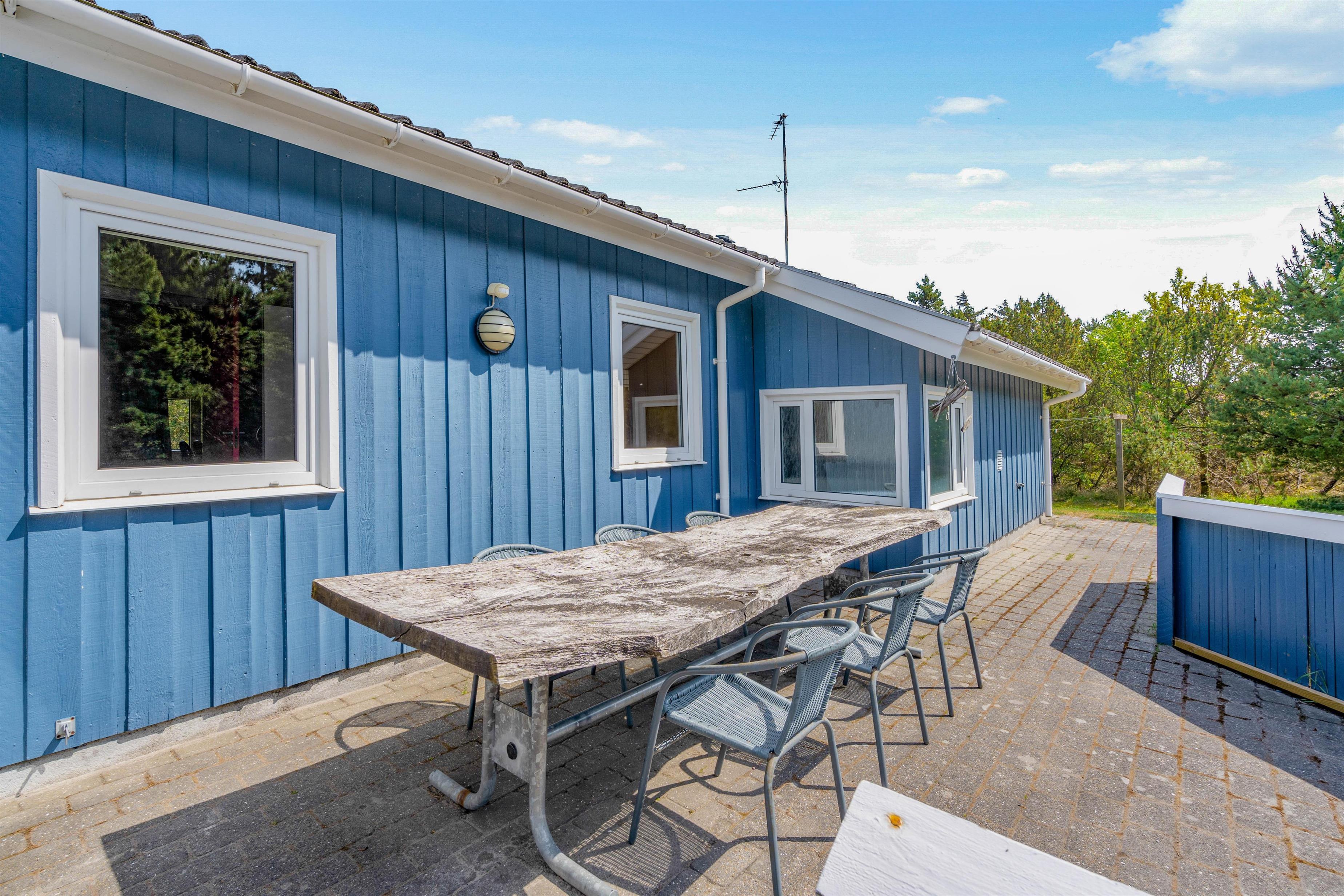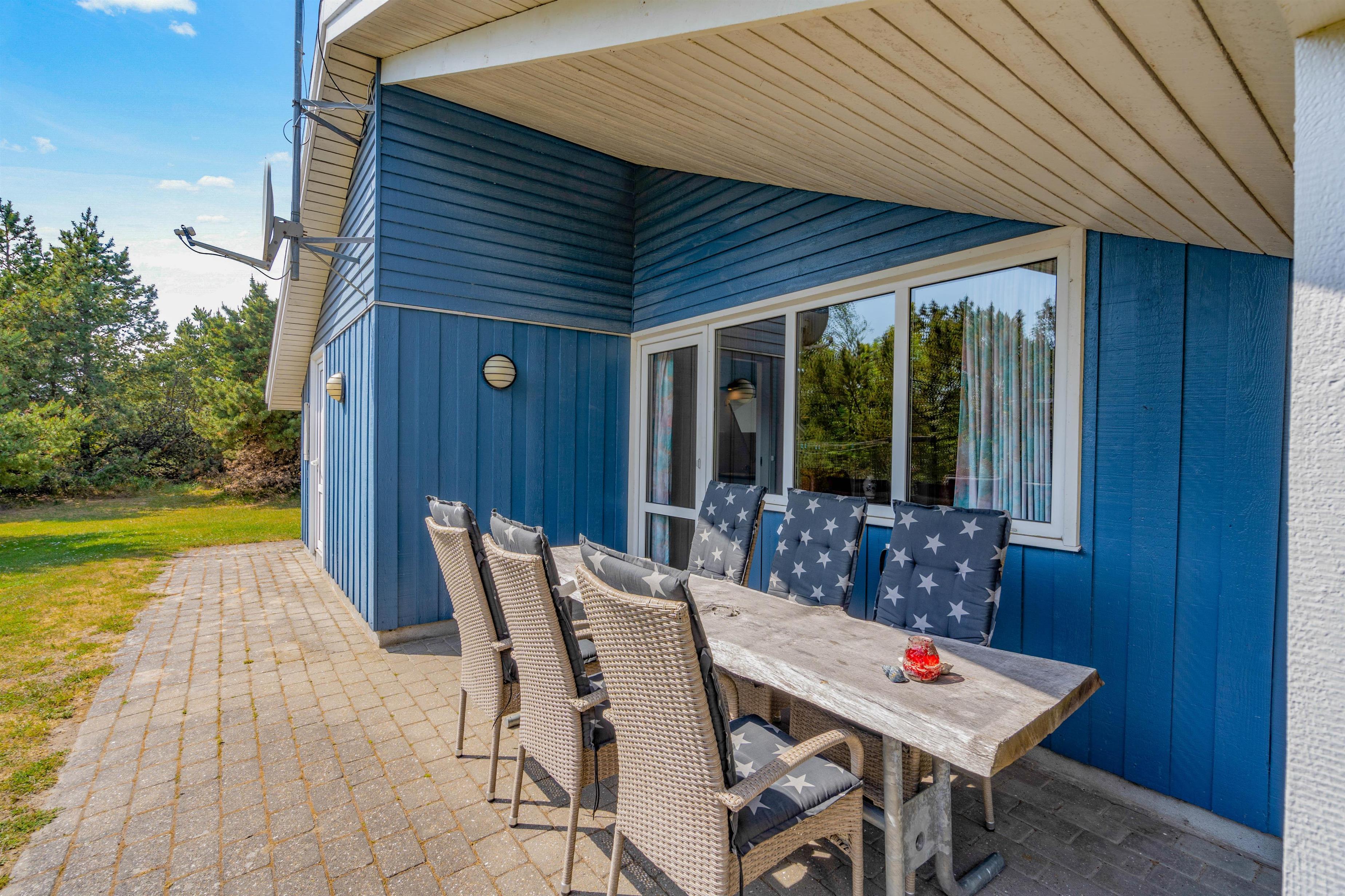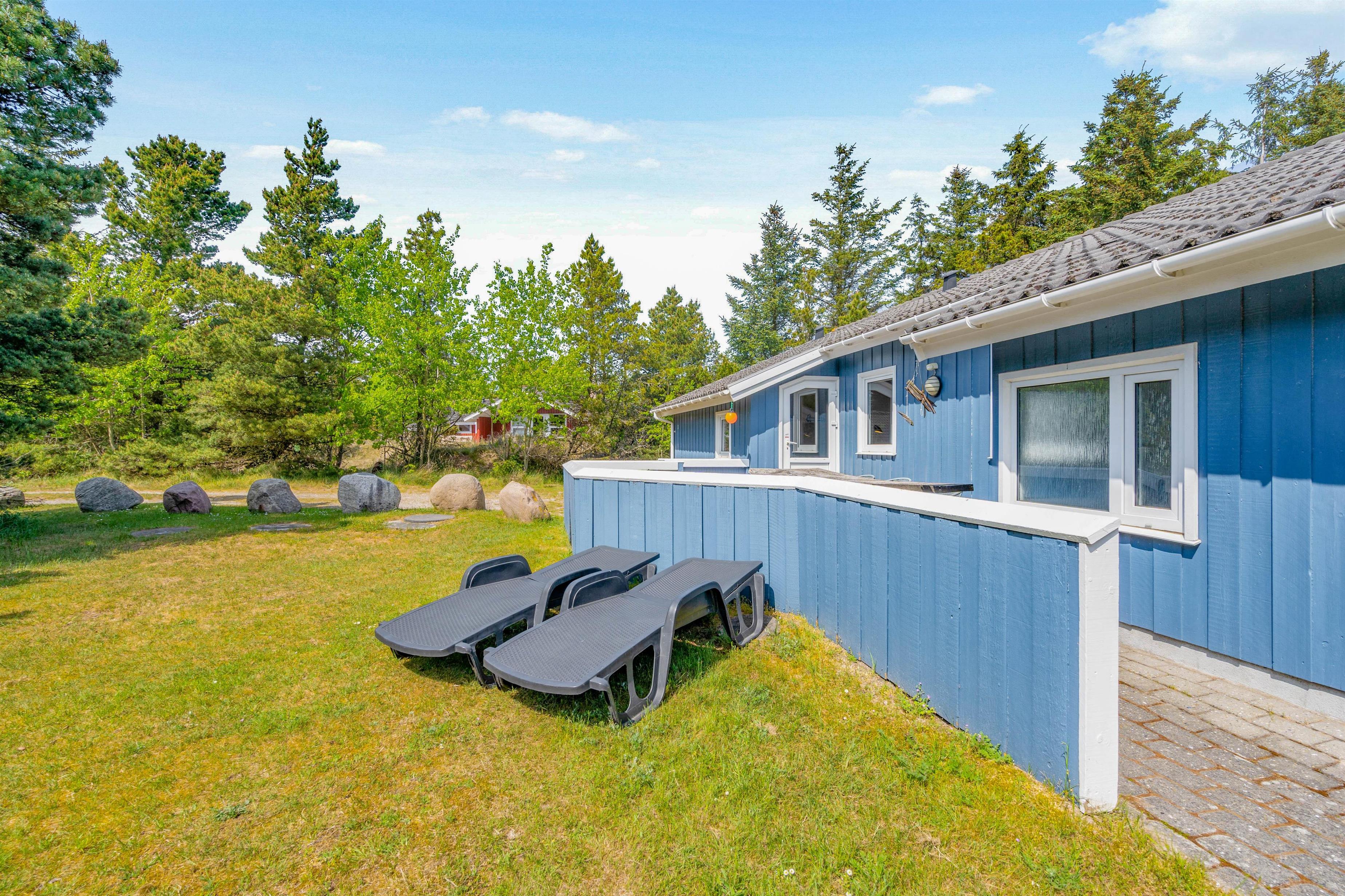 Make the most of warm, sunny days on the terrace at Krogsande 3. Sun loungers and garden furniture are provided for outdoor relaxation.