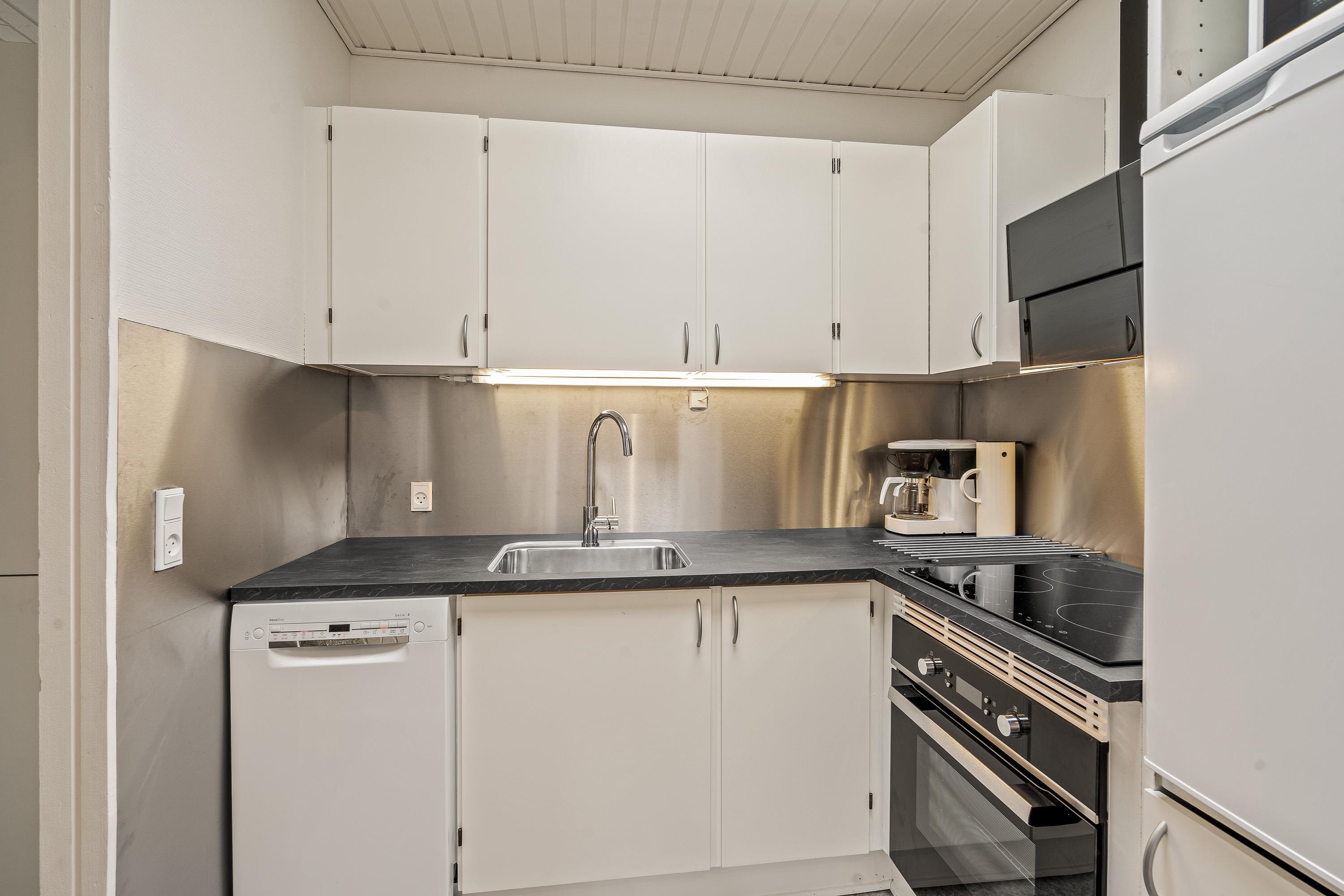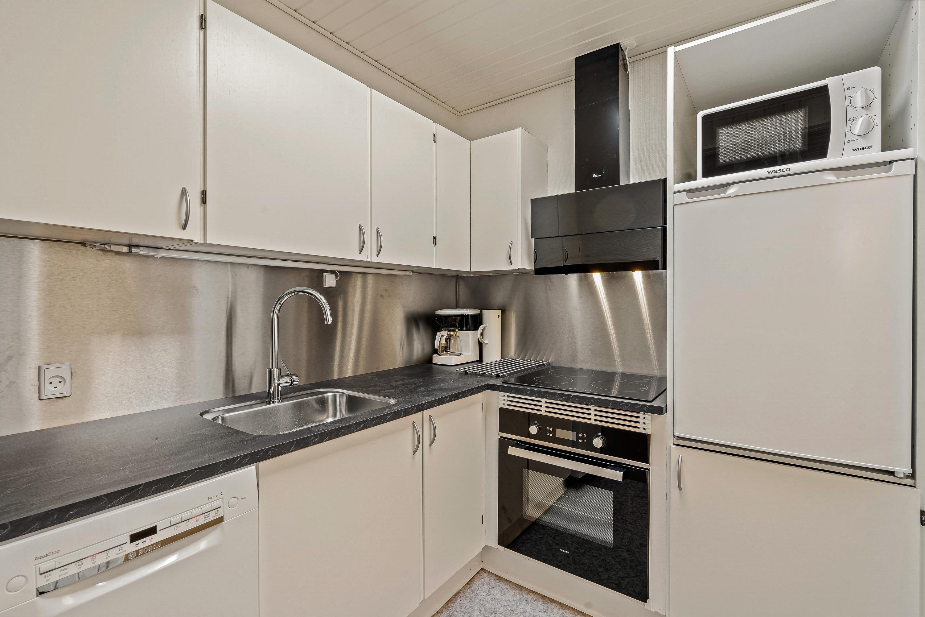 The kitchen with its open-plan living and dining area forms the heart of the house, where you can spend relaxing holiday time together. Preparing evening meals becomes more enjoyable when done as a group.