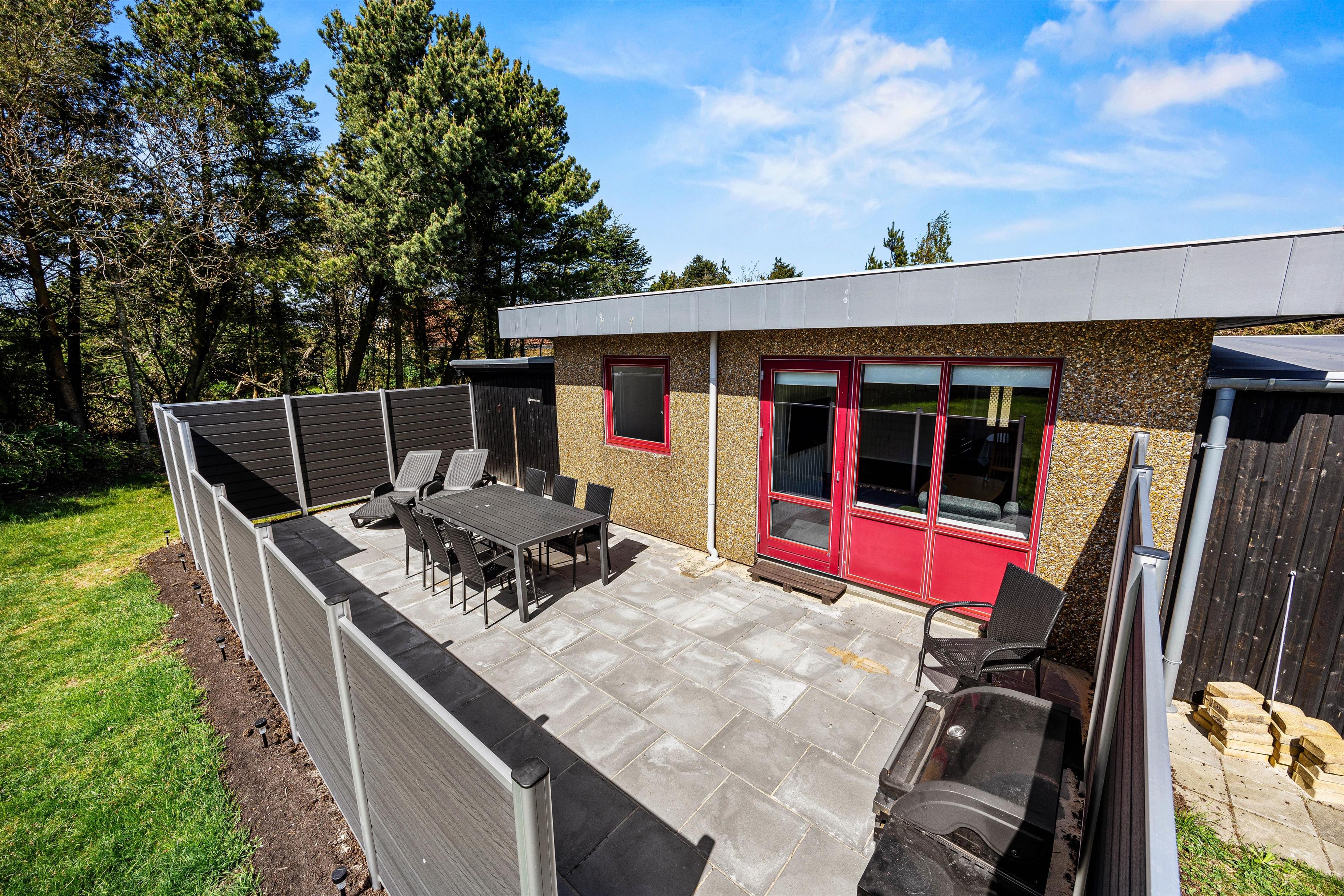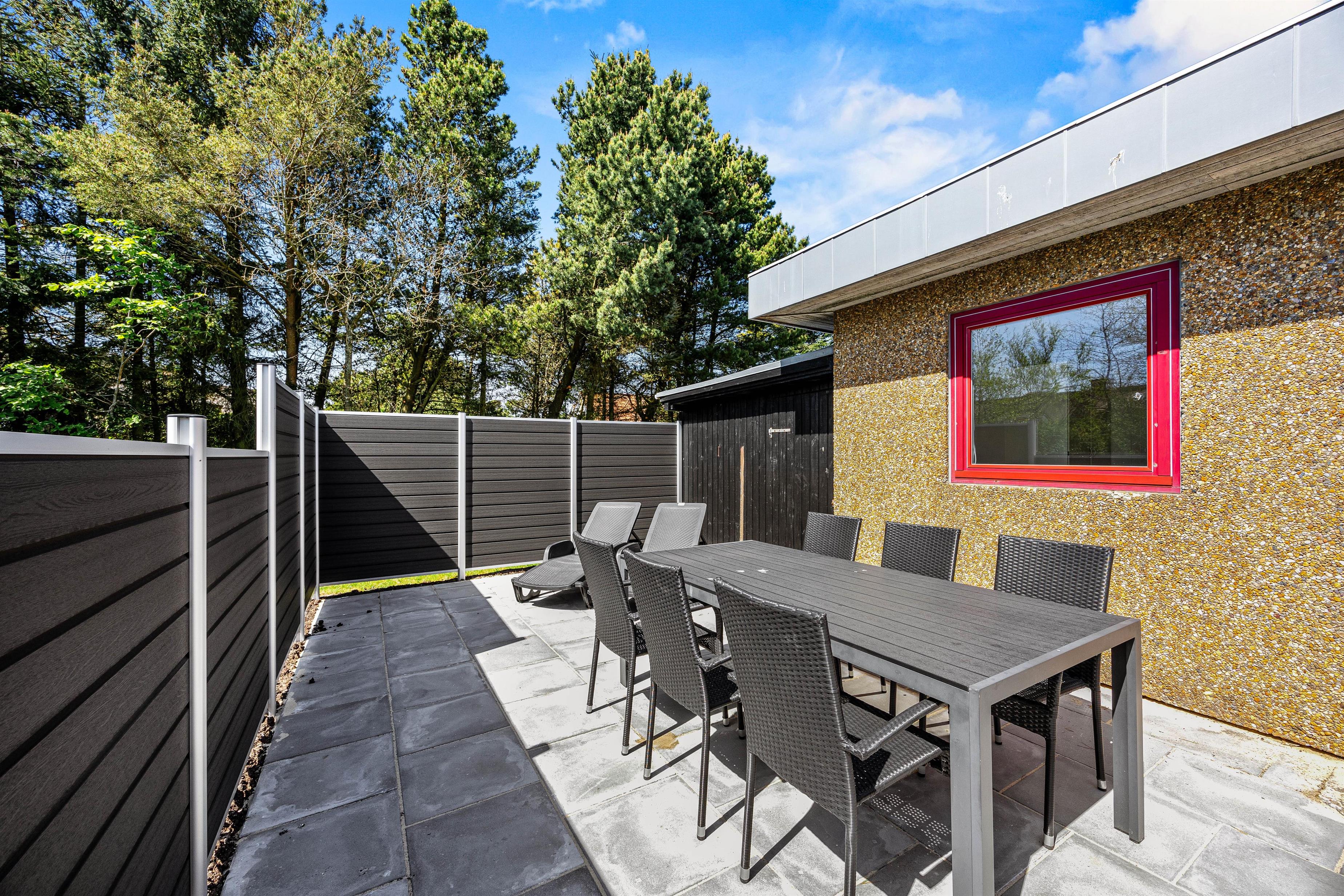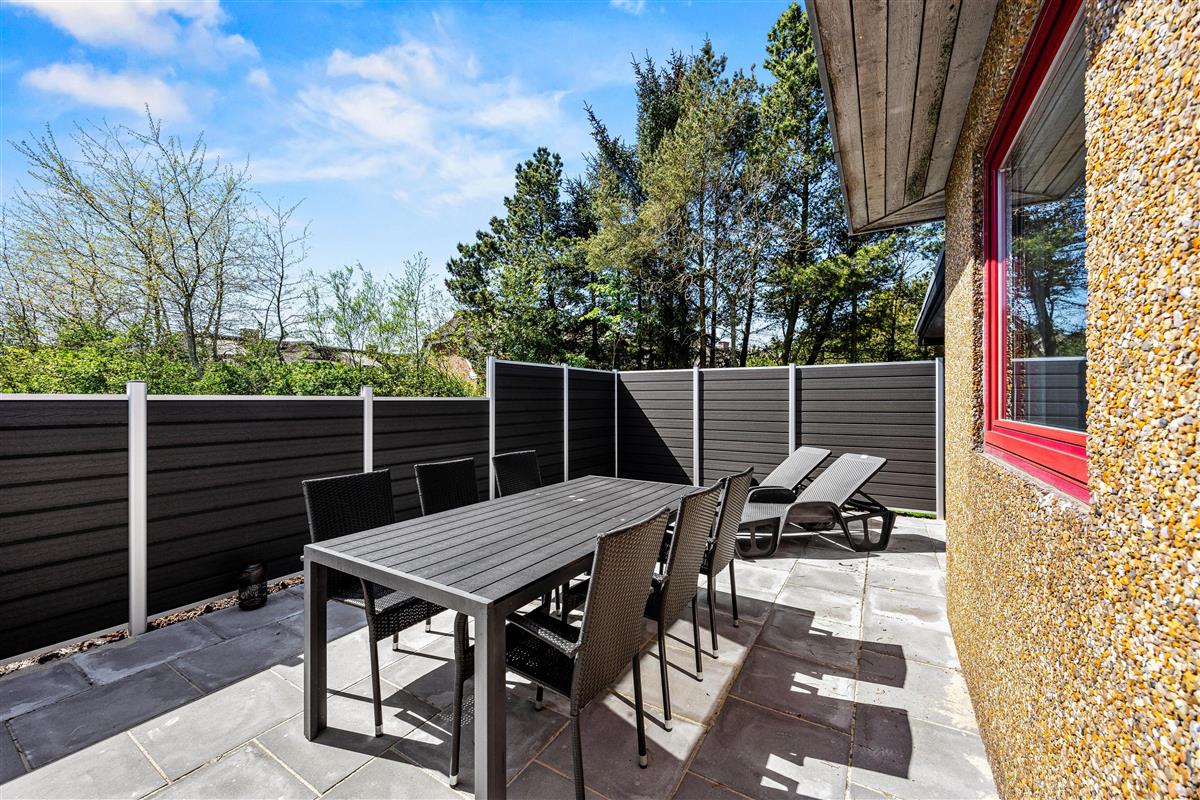 Make the most of sunny, warm holiday days on the fenced terrace at Fyrgården 4. Sun loungers and garden furniture are provided for outdoor relaxation.
