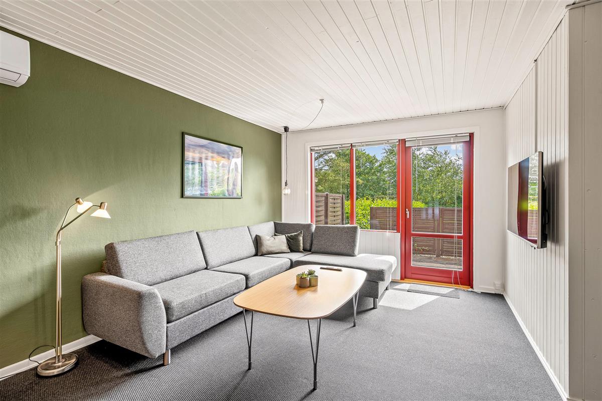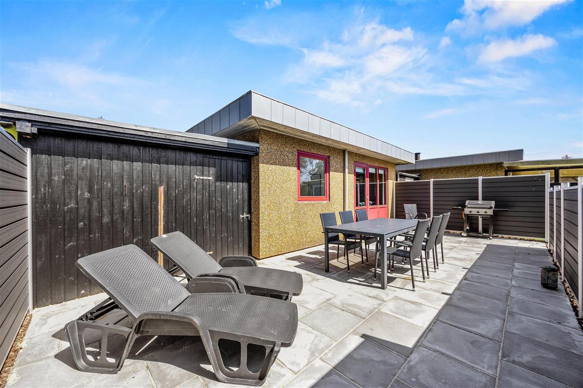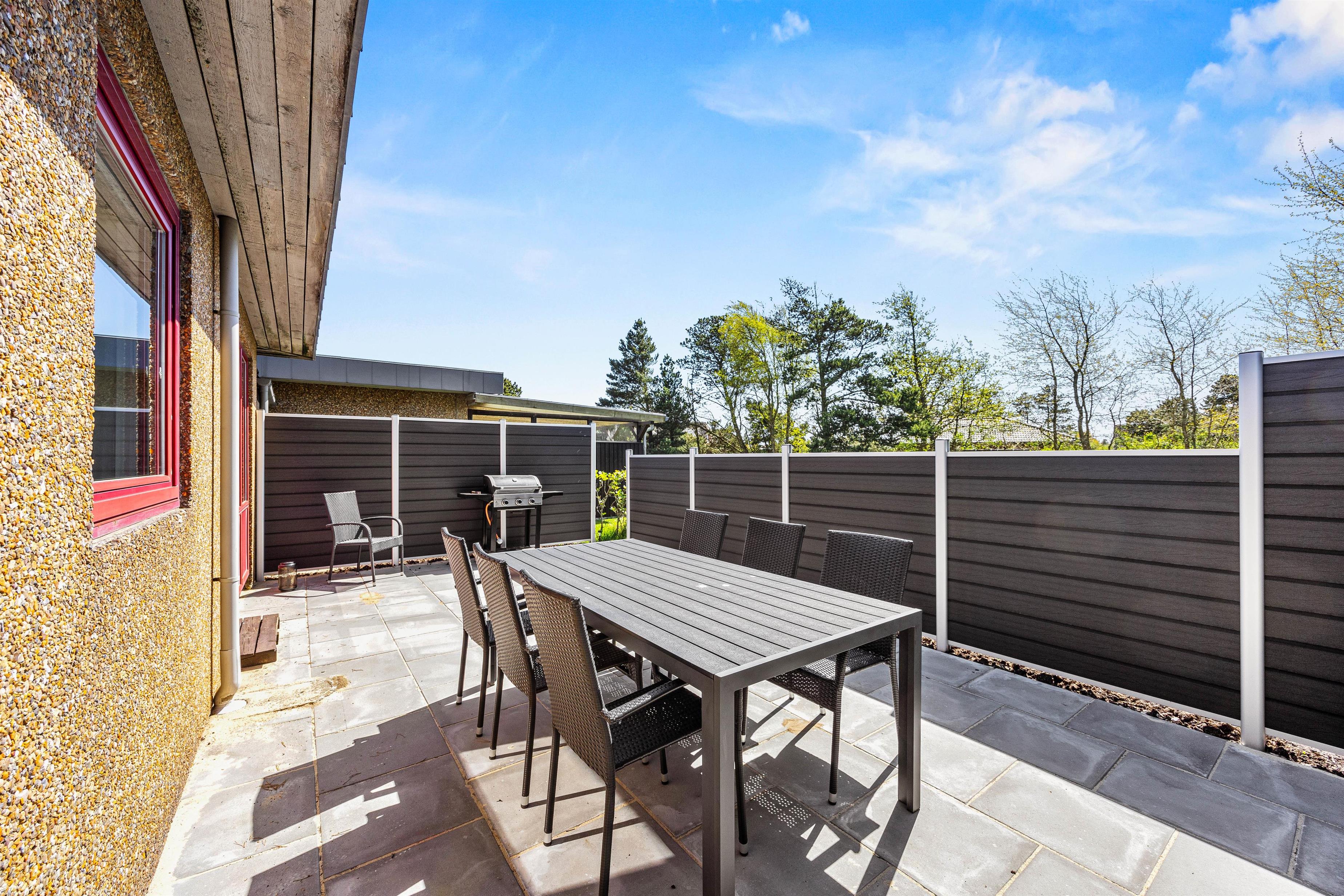 Make the most of sunny, warm holiday days on the fenced terrace at Fyrgården 4. Sun loungers and garden furniture are provided for outdoor relaxation.